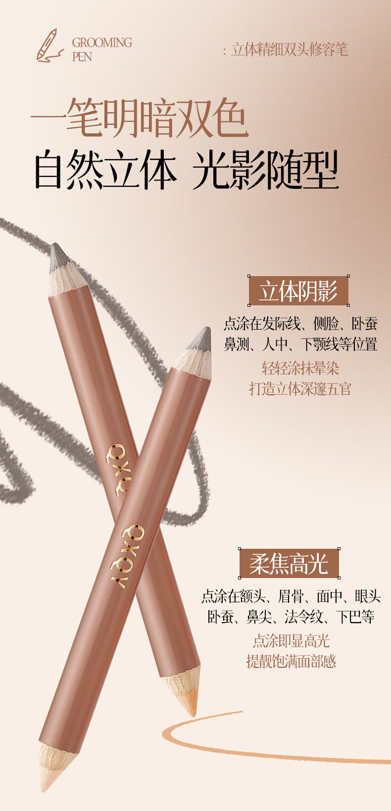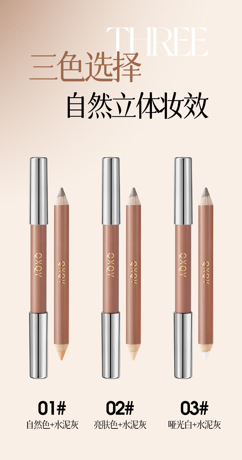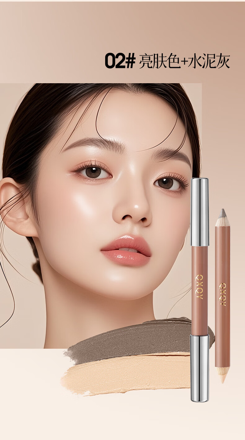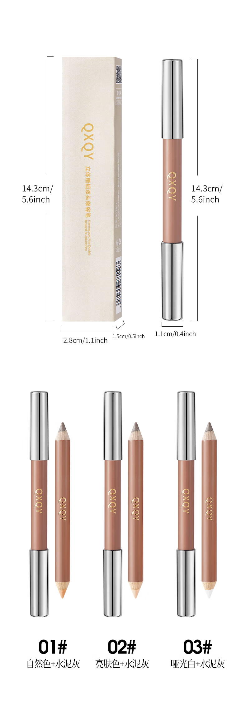 QXQY立体精细双头修容笔高光提亮修饰鼻影阴影一体修容持妆高光修容笔 QX8876-01#自然色+水泥灰