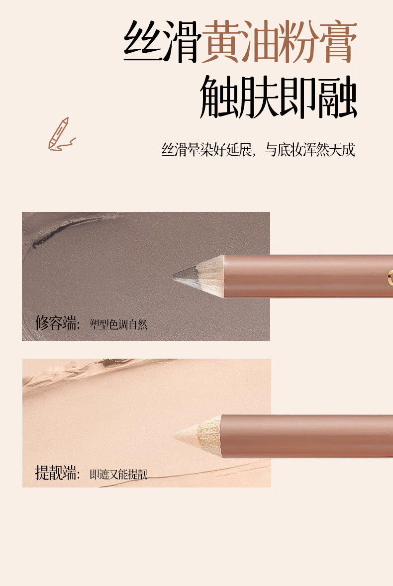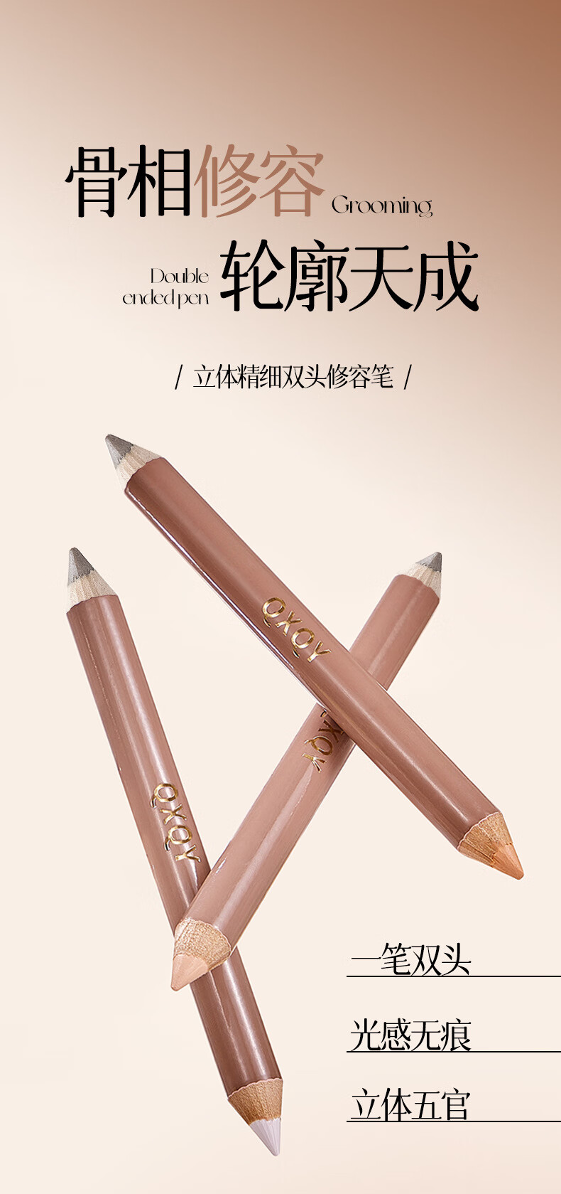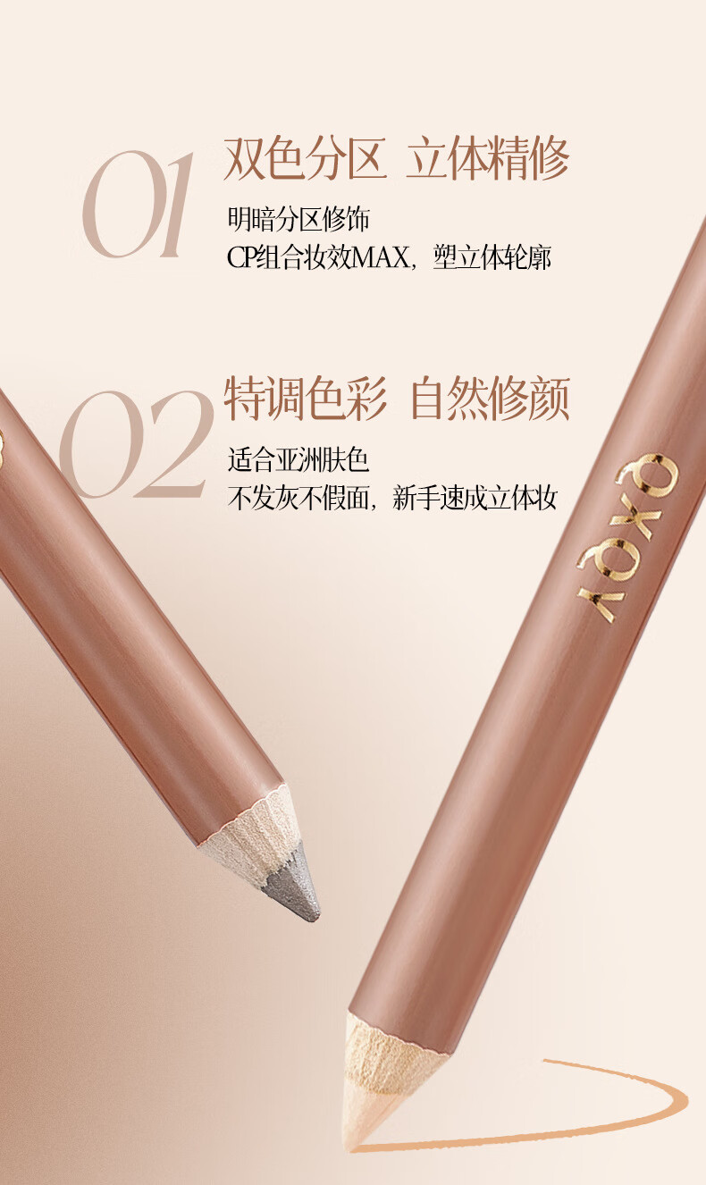 QXQY立体精细双头修容笔高光提亮修饰鼻影阴影一体修容持妆高光修容笔 QX8876-01#自然色+水泥灰