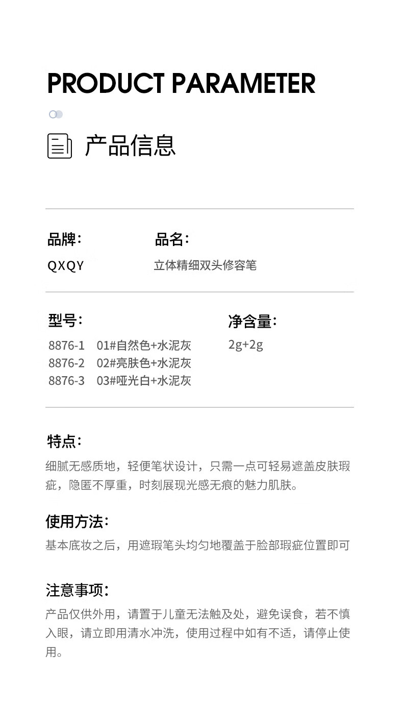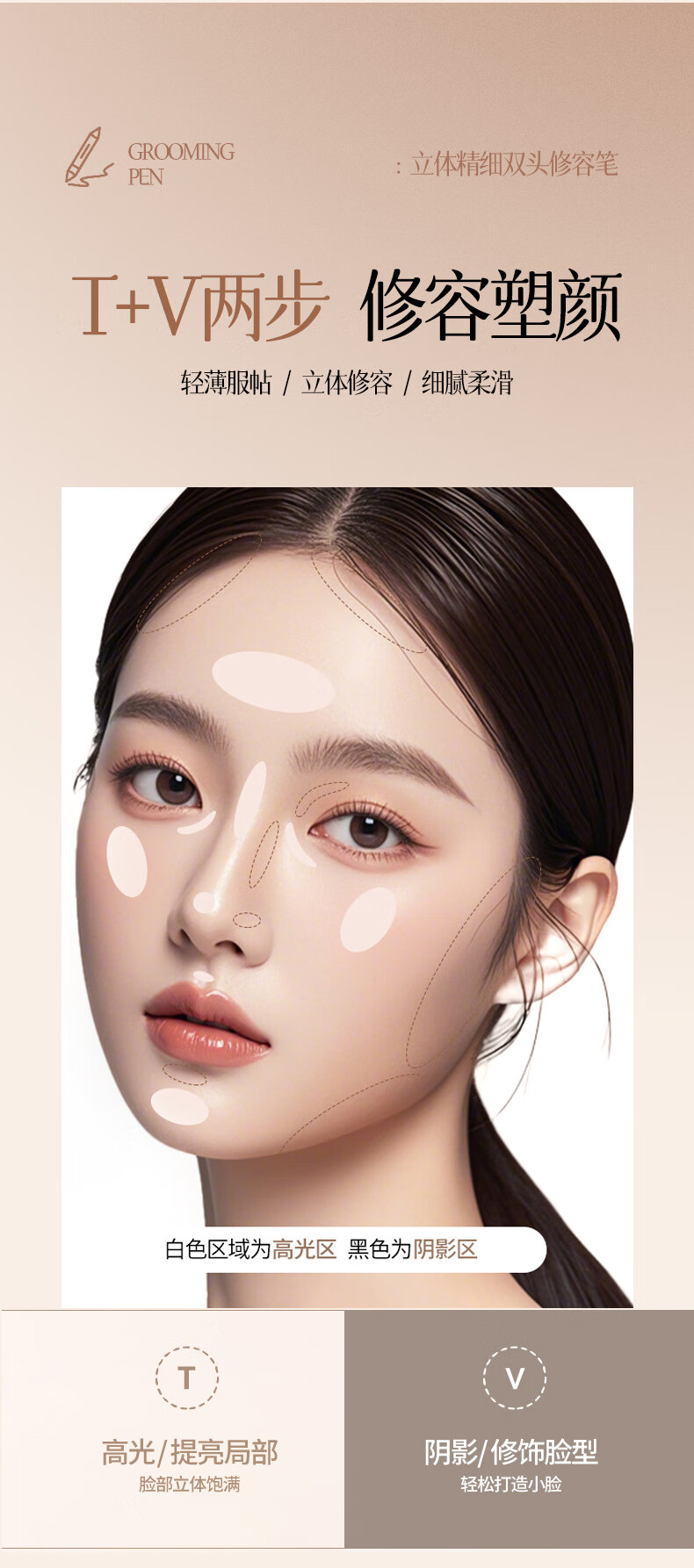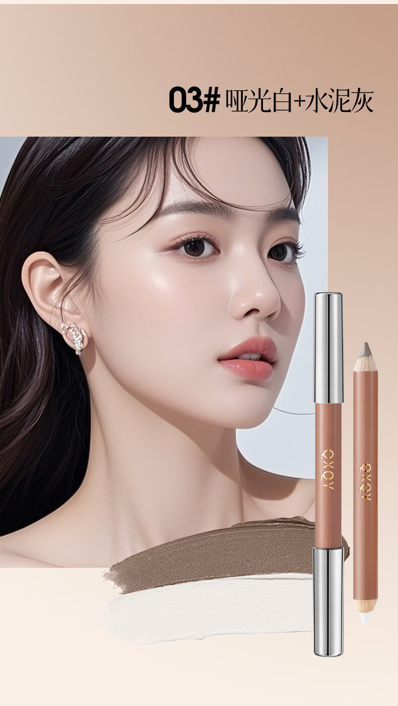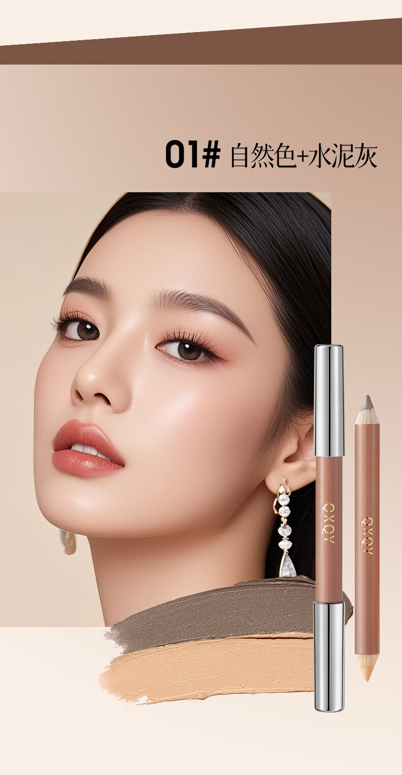 QXQY立体精细双头修容笔高光提亮修饰鼻影阴影一体修容持妆高光修容笔 QX8876-01#自然色+水泥灰