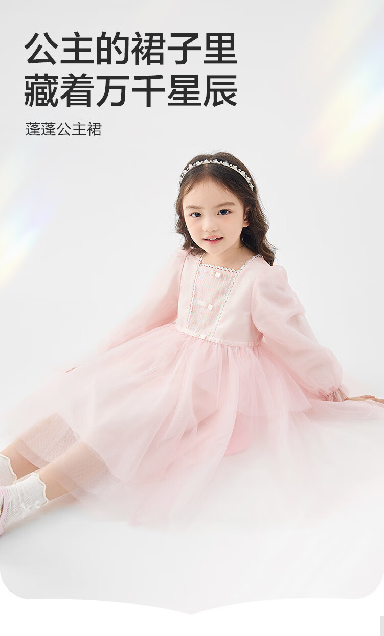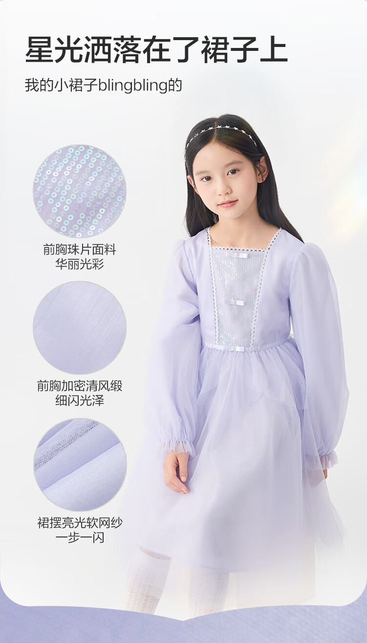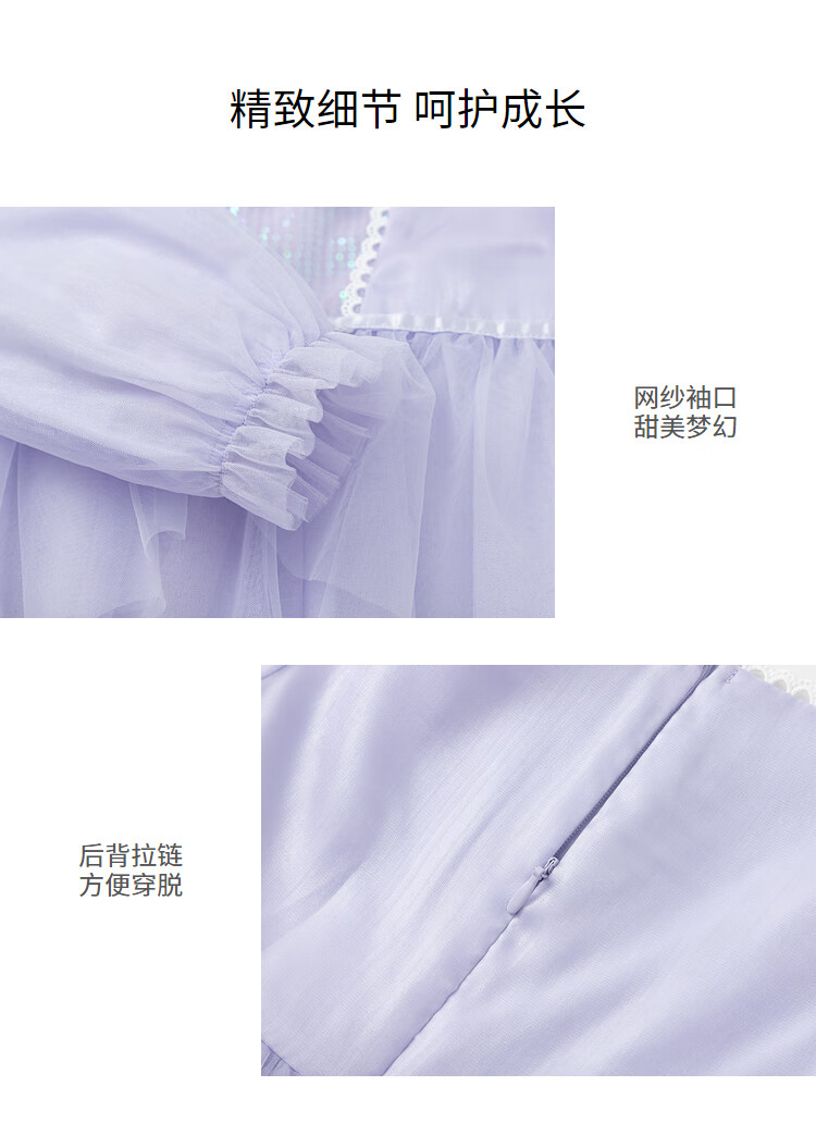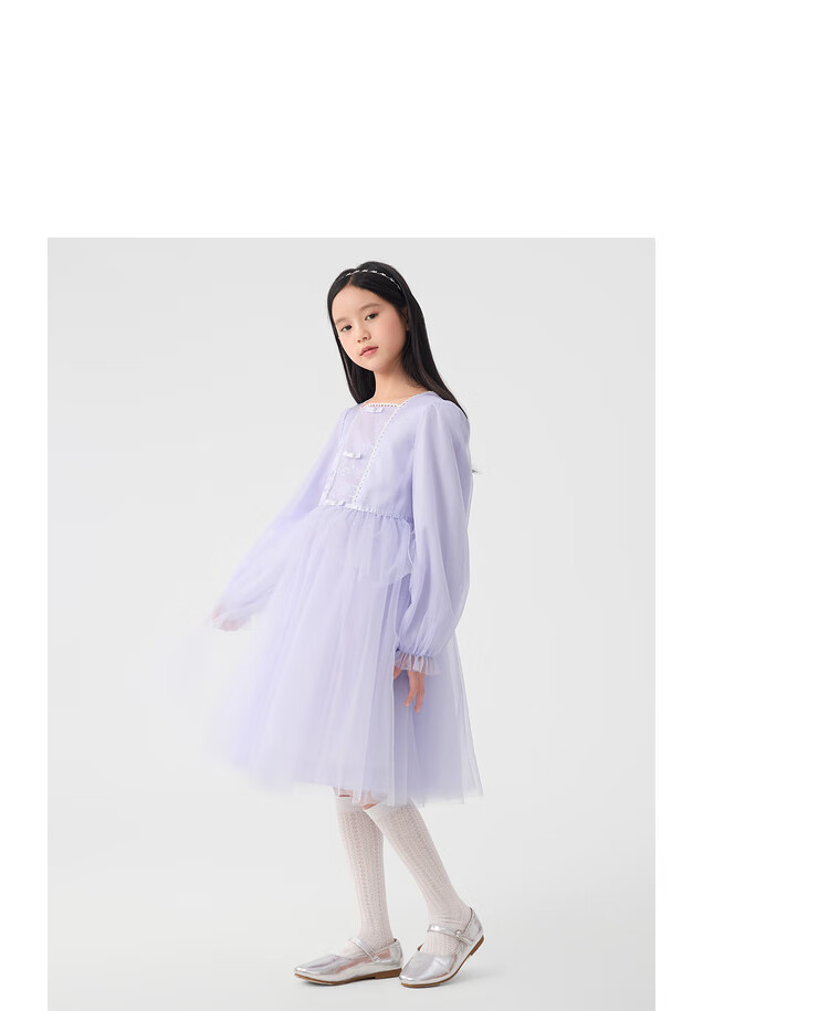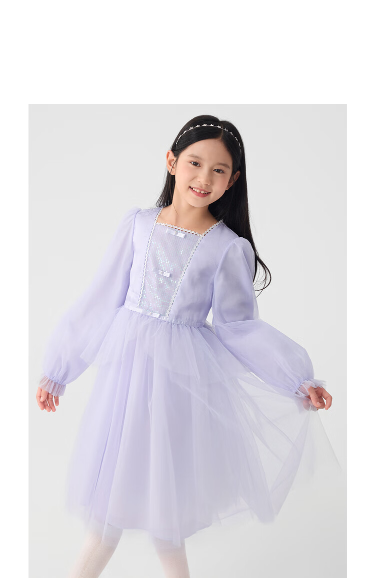 巴拉巴拉童装儿童连衣裙女童裙子2025春装新款小童洋气网纱公主裙 紫色调00377 130