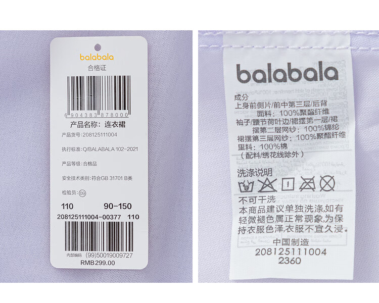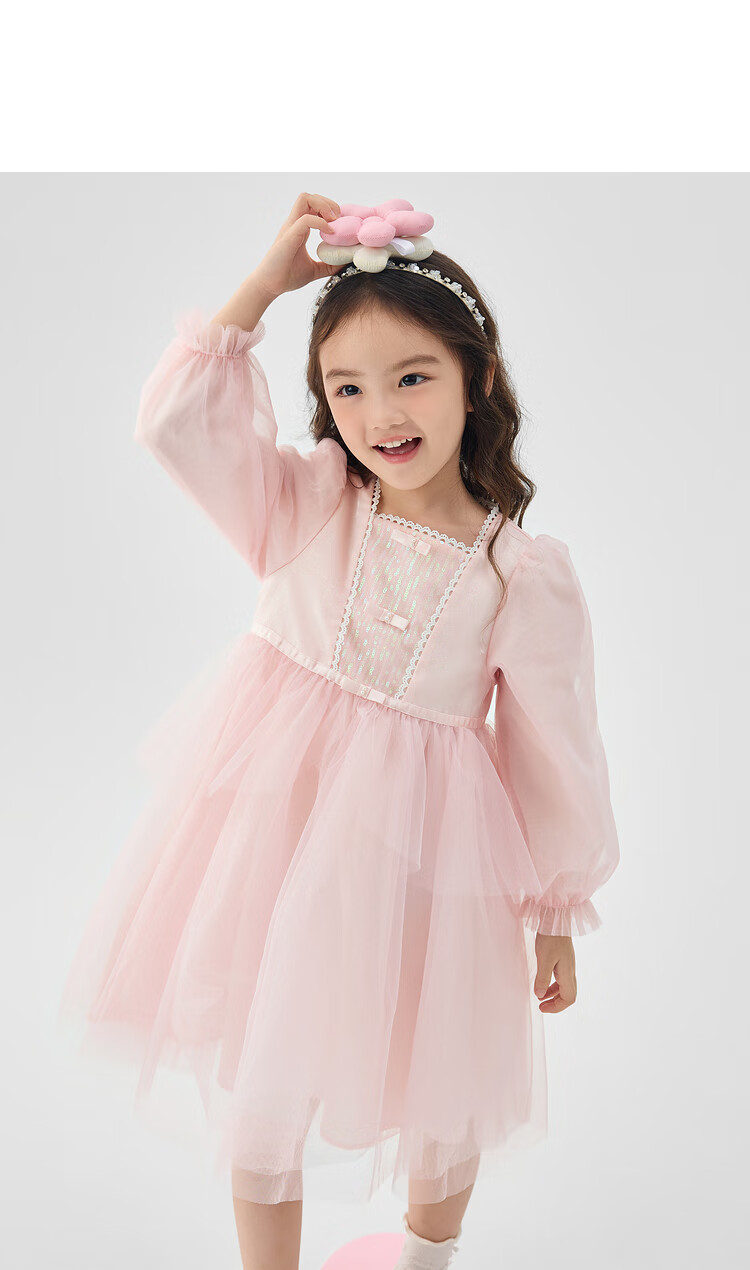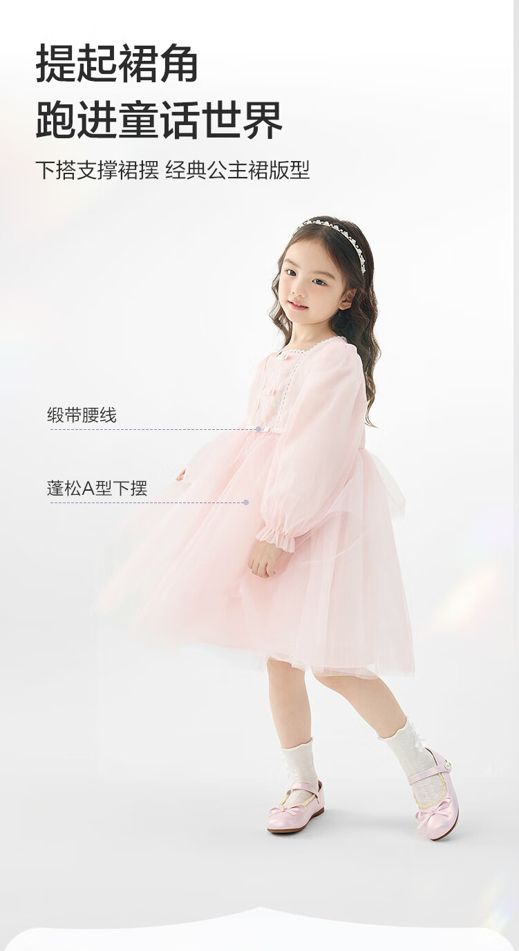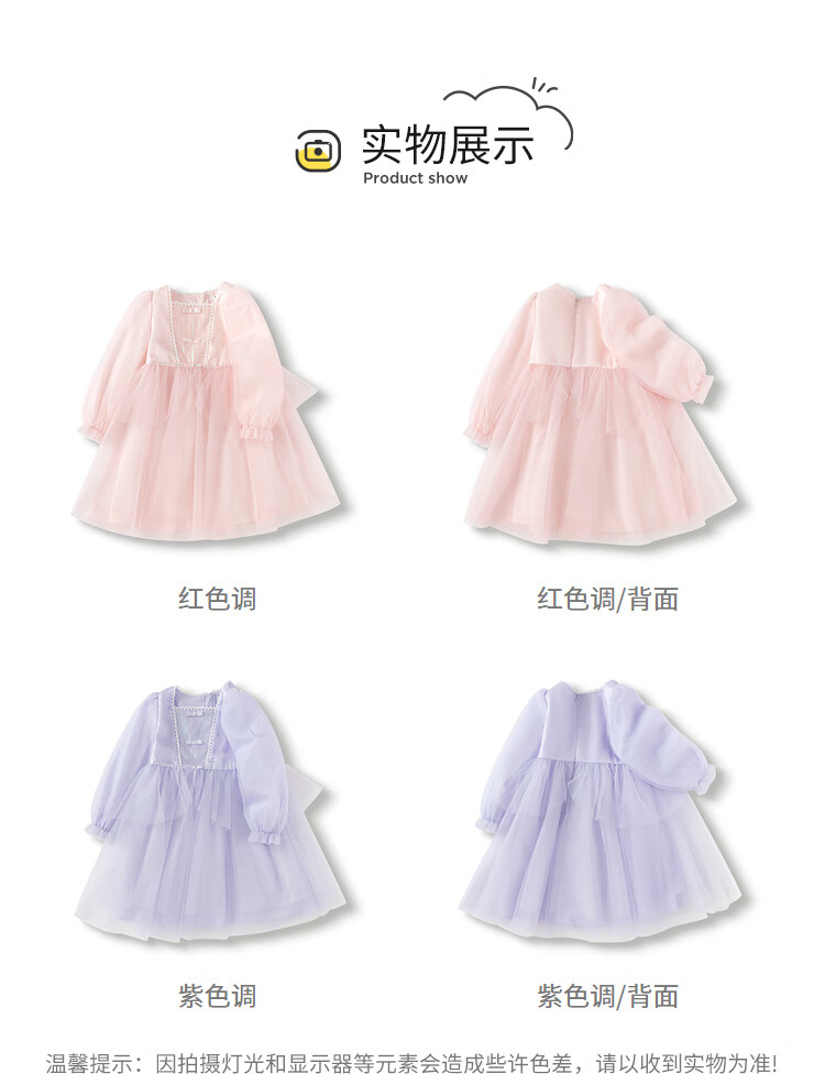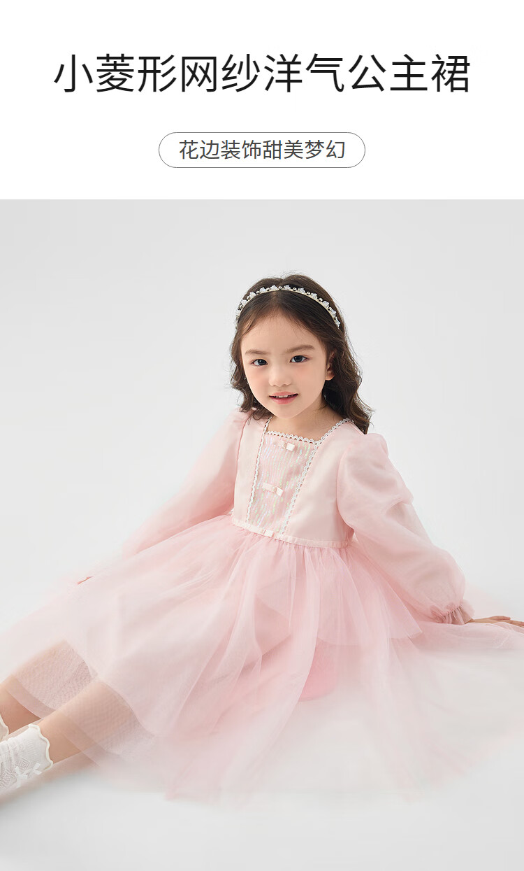 巴拉巴拉童装儿童连衣裙女童裙子2025春装新款小童洋气网纱公主裙 紫色调00377 130