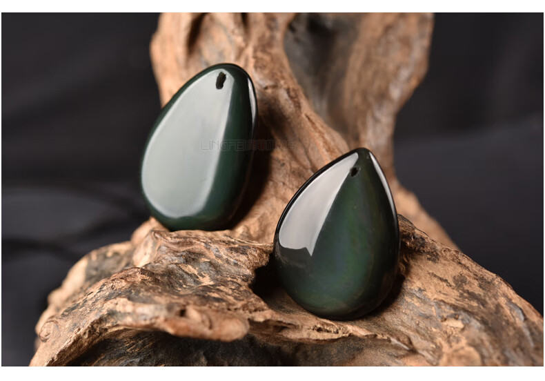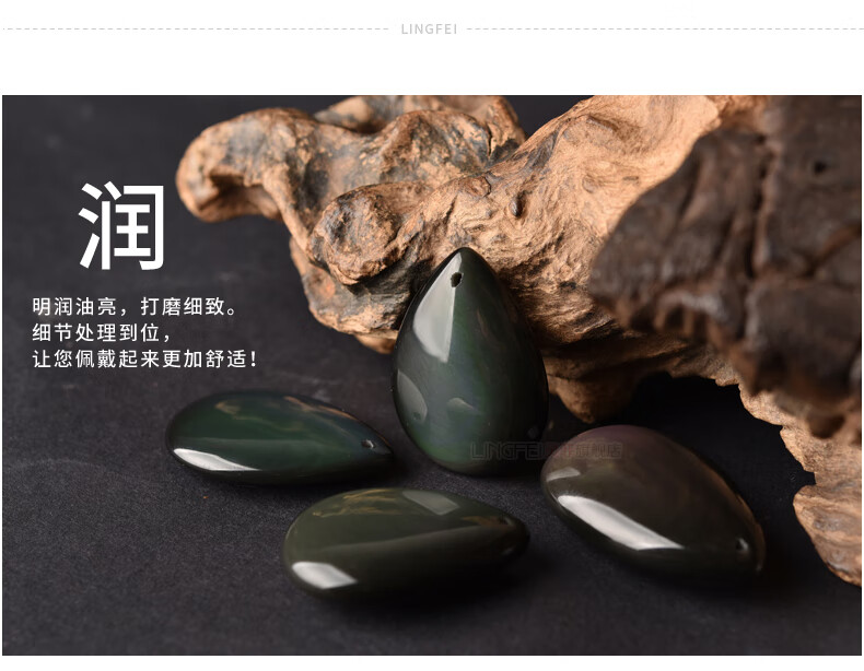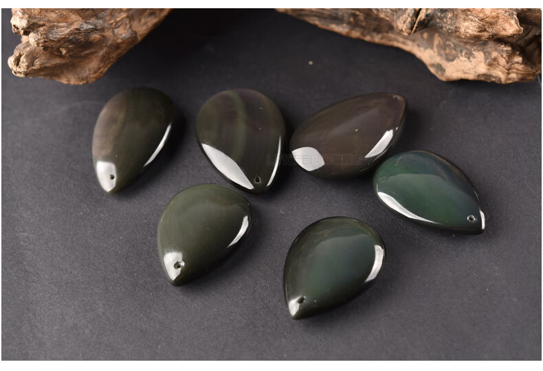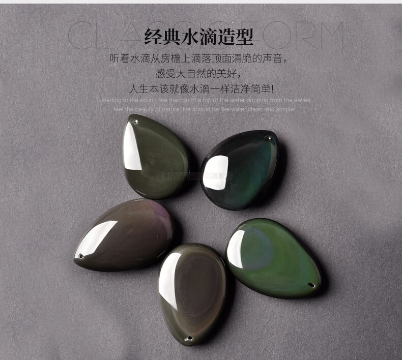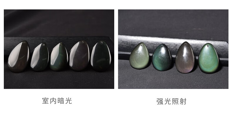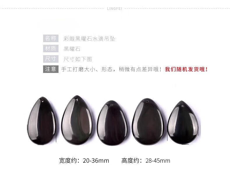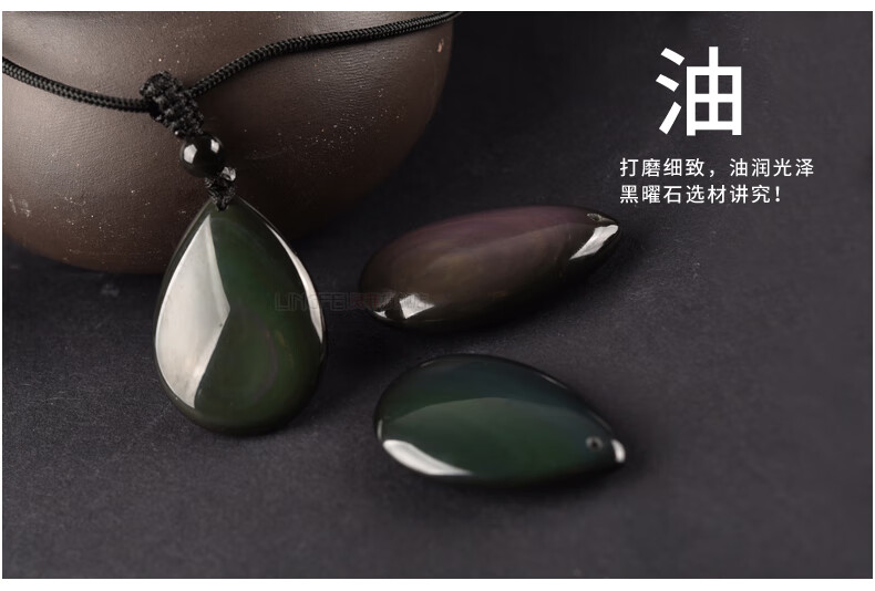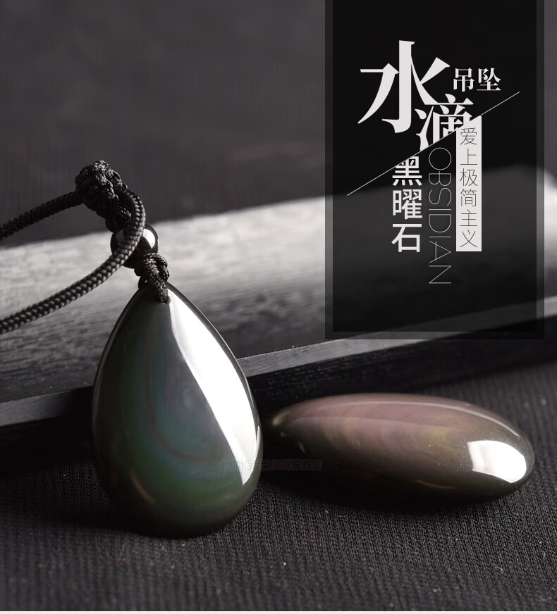 儒系天然黑曜石吊坠彩虹眼黑耀石水滴形黑色饰品挂坠挂件项链男女 黑曜石水滴吊坠
