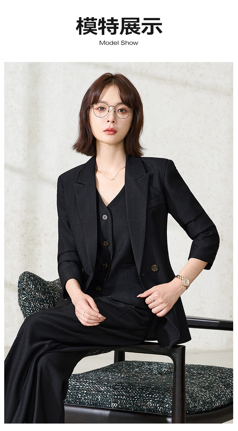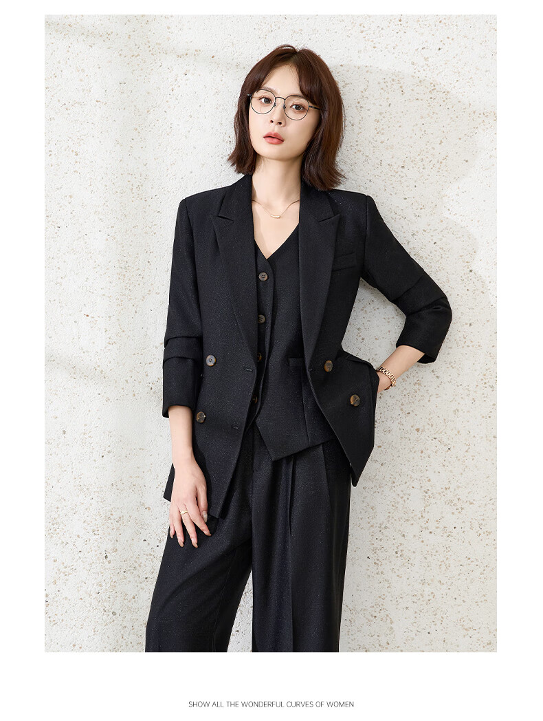韩依索丝职业装西装外套女套装高级感休闲时尚职业正装小个子高端西服上衣 单件黑色西装 S