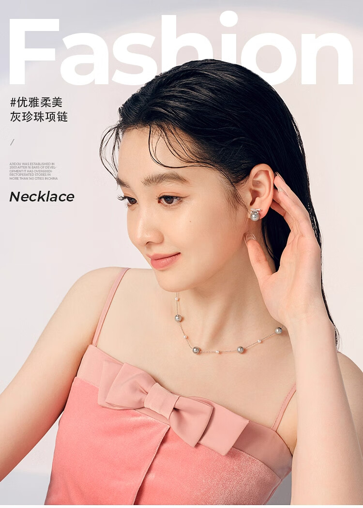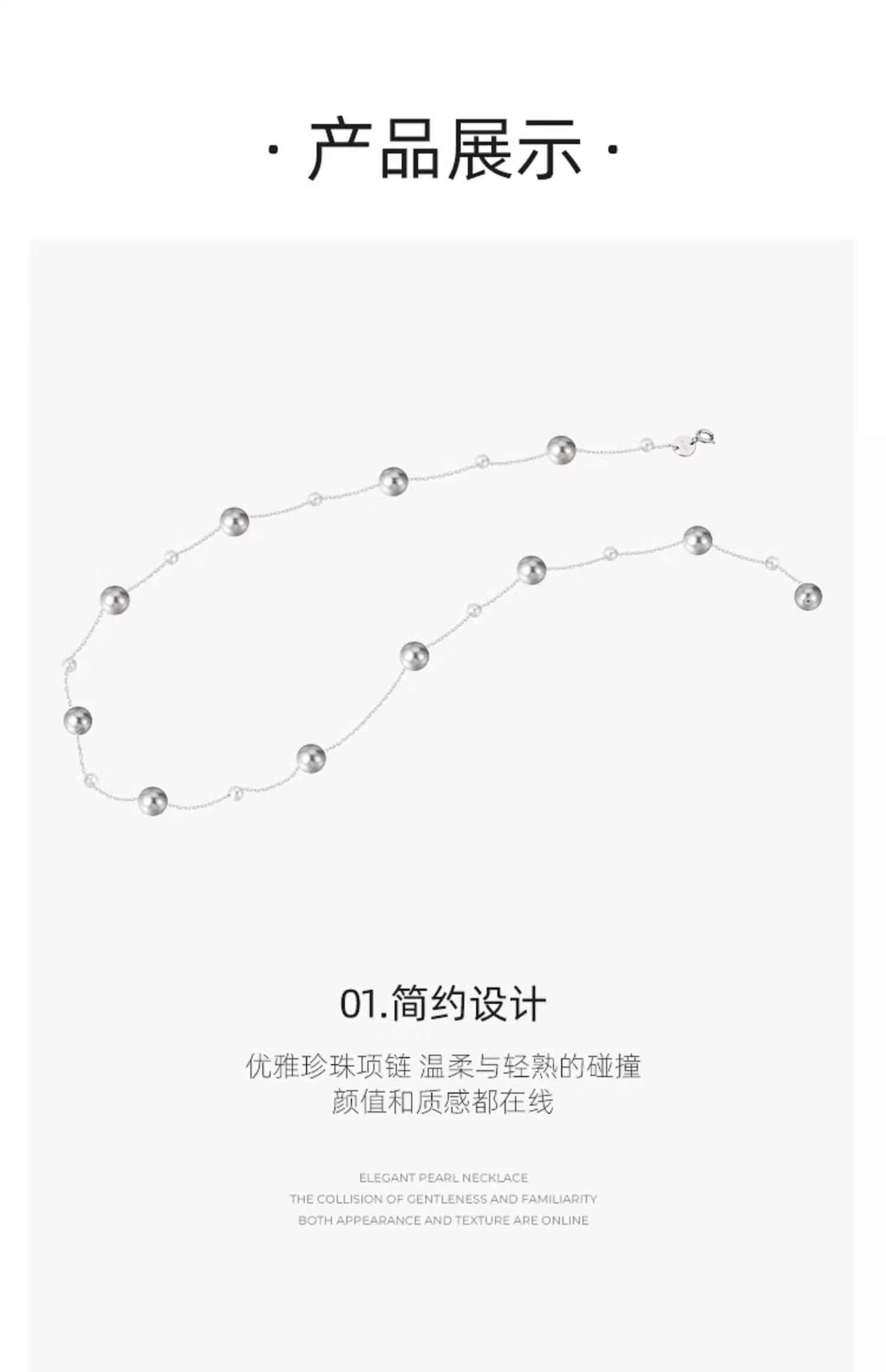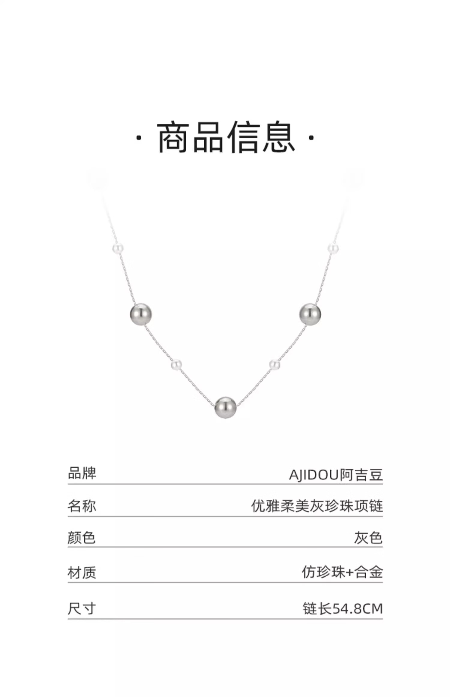 AJIDOU阿吉豆项链女线下专柜同款毛衣链优雅柔美复古灰珍珠颈链秋冬百搭
