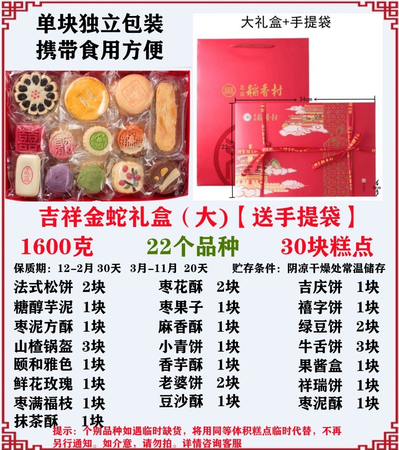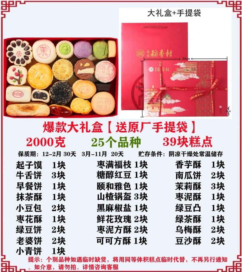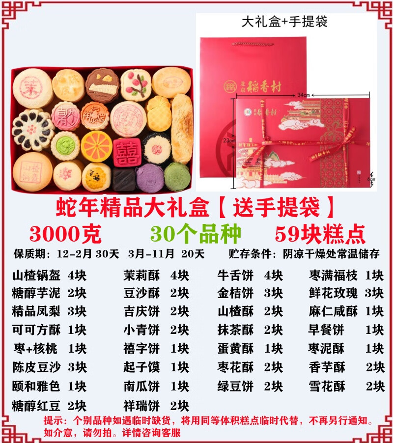 北京稻香村北京三禾稻香村传统糕点零食老式小吃蛇年礼盒京八件春节送礼真空 特惠小礼盒【19品种2.8斤】不含
