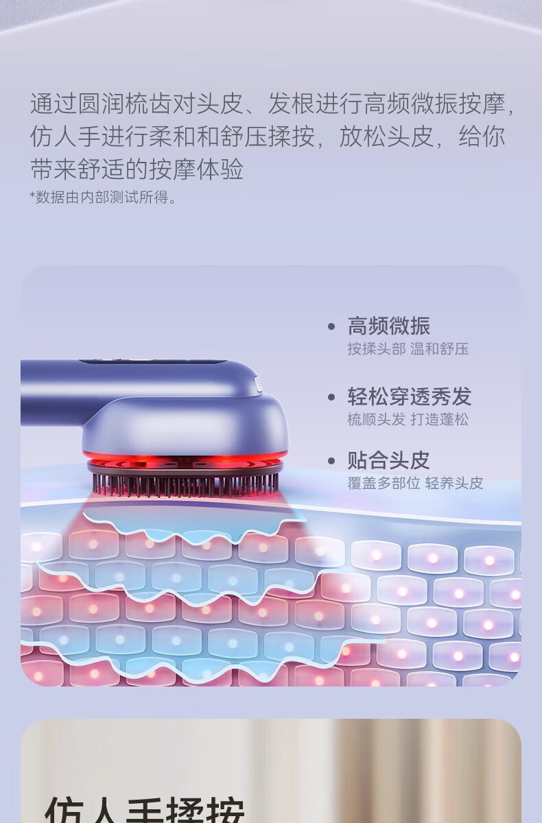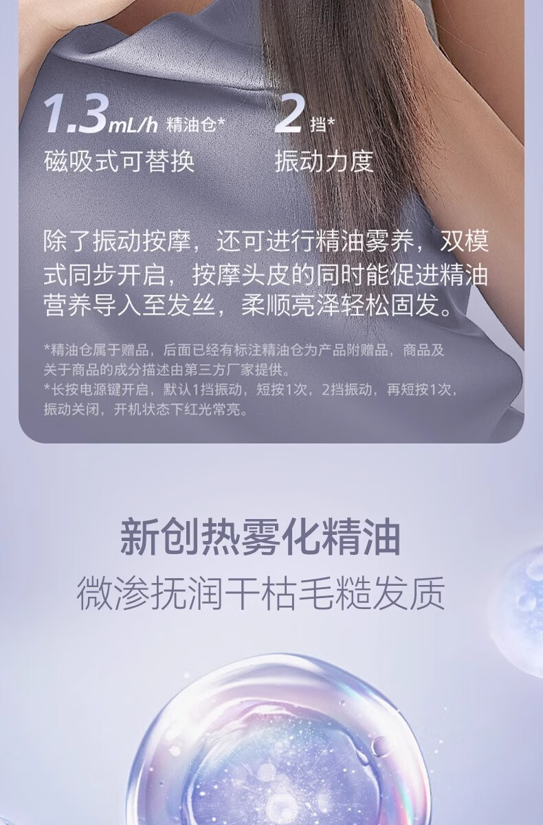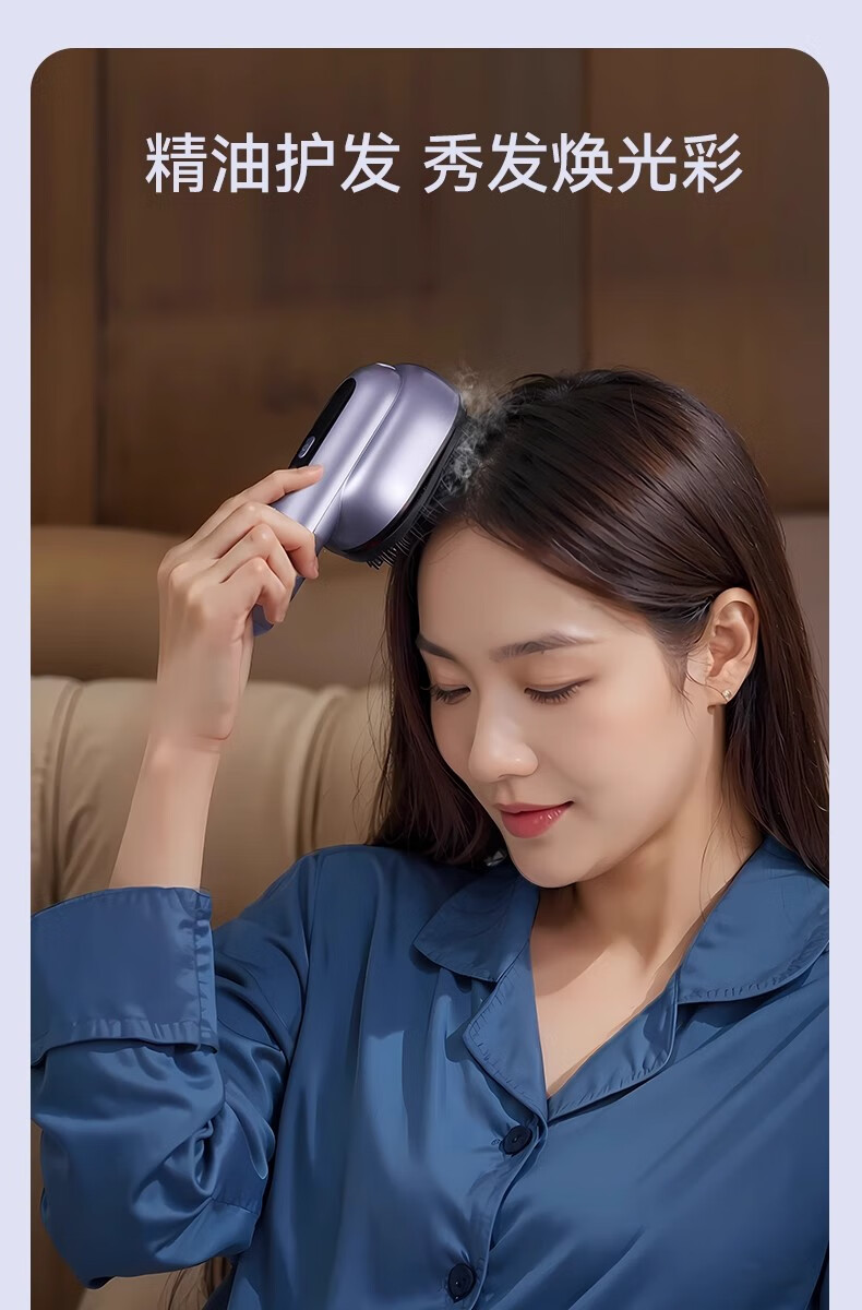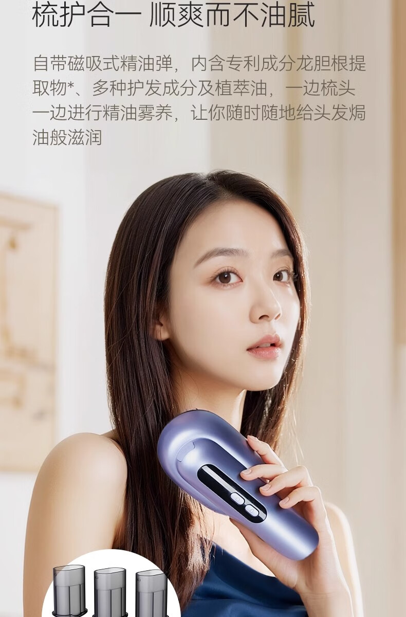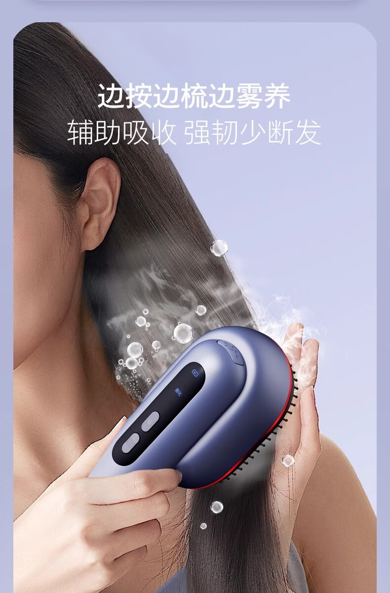 靠森(Kaooseen)德国进口品质按摩梳电动精油导入电动头皮按摩梳子精油雾化 镭射紫【精油雾化+红光照射+震动按摩+3档调节1