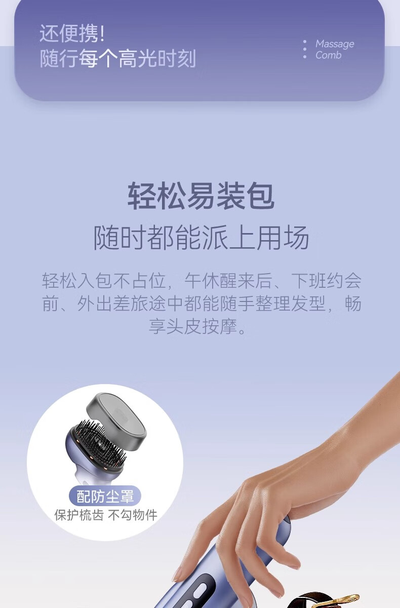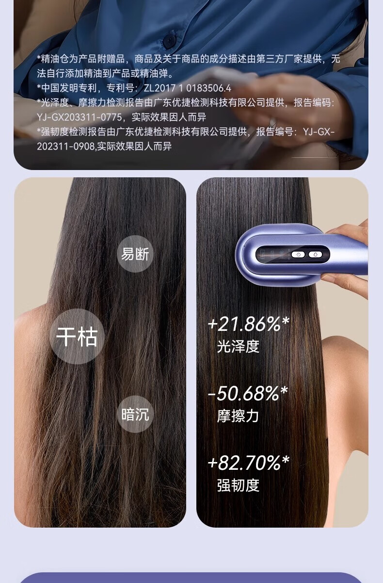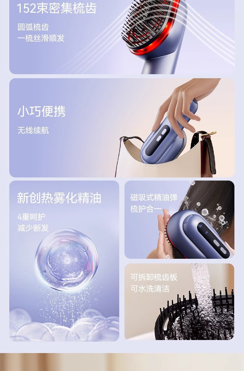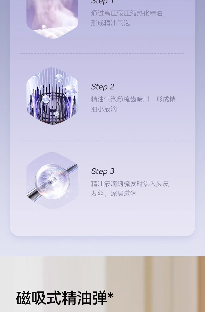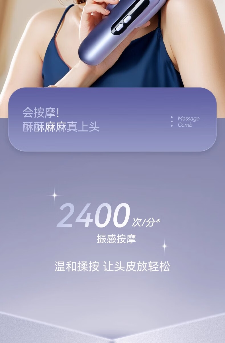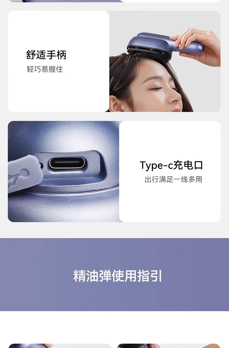 靠森(Kaooseen)德国进口品质按摩梳电动精油导入电动头皮按摩梳子精油雾化 镭射紫【精油雾化+红光照射+震动按摩+3档调节1