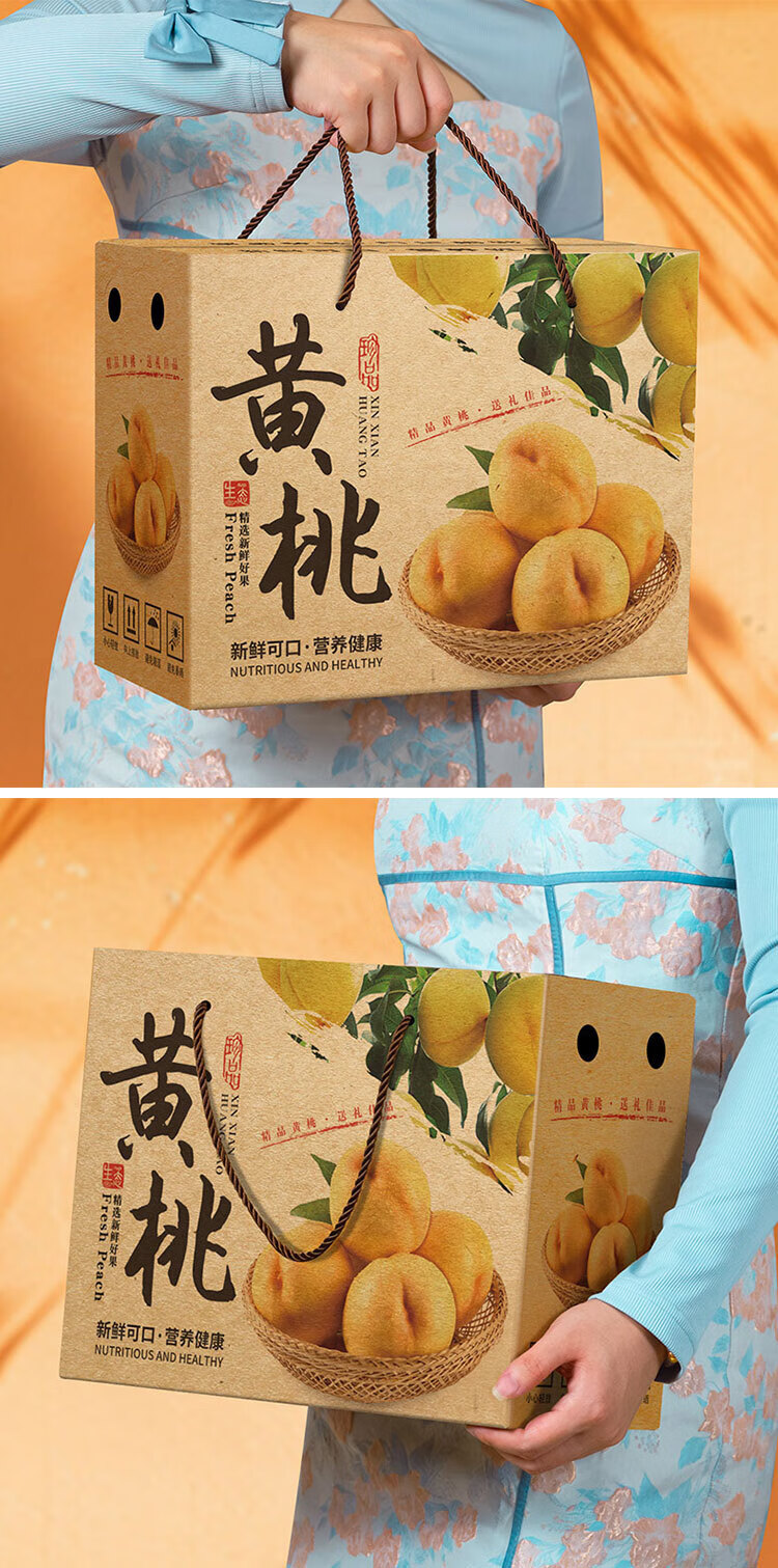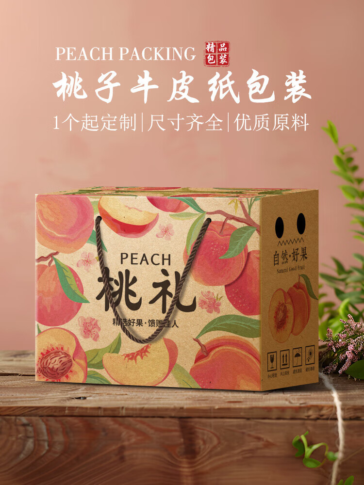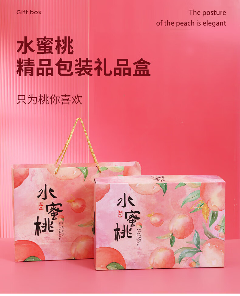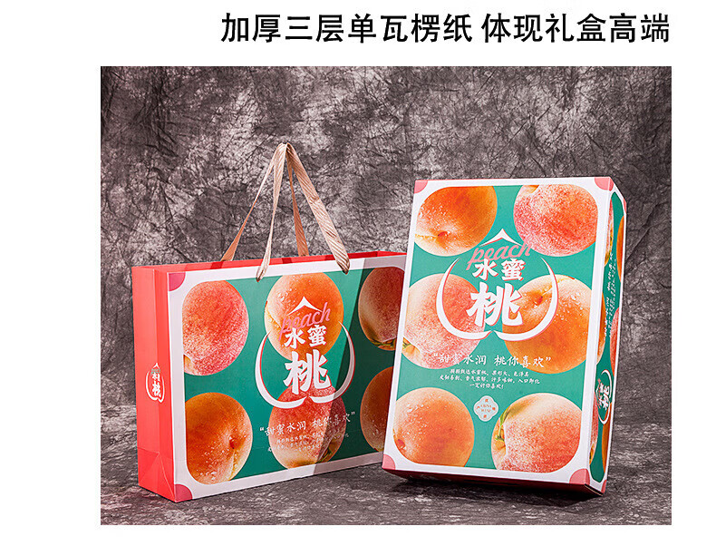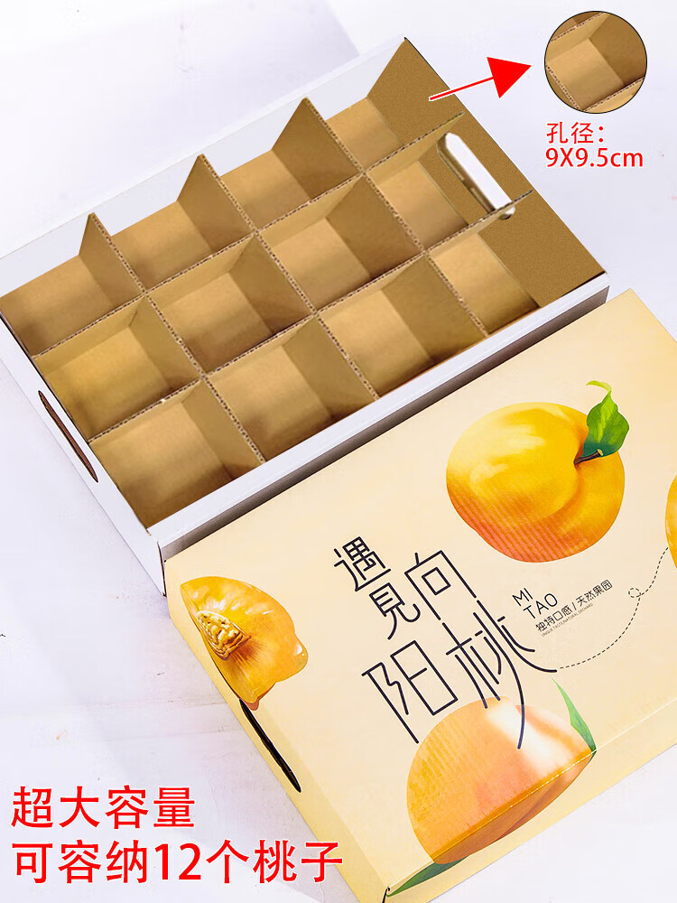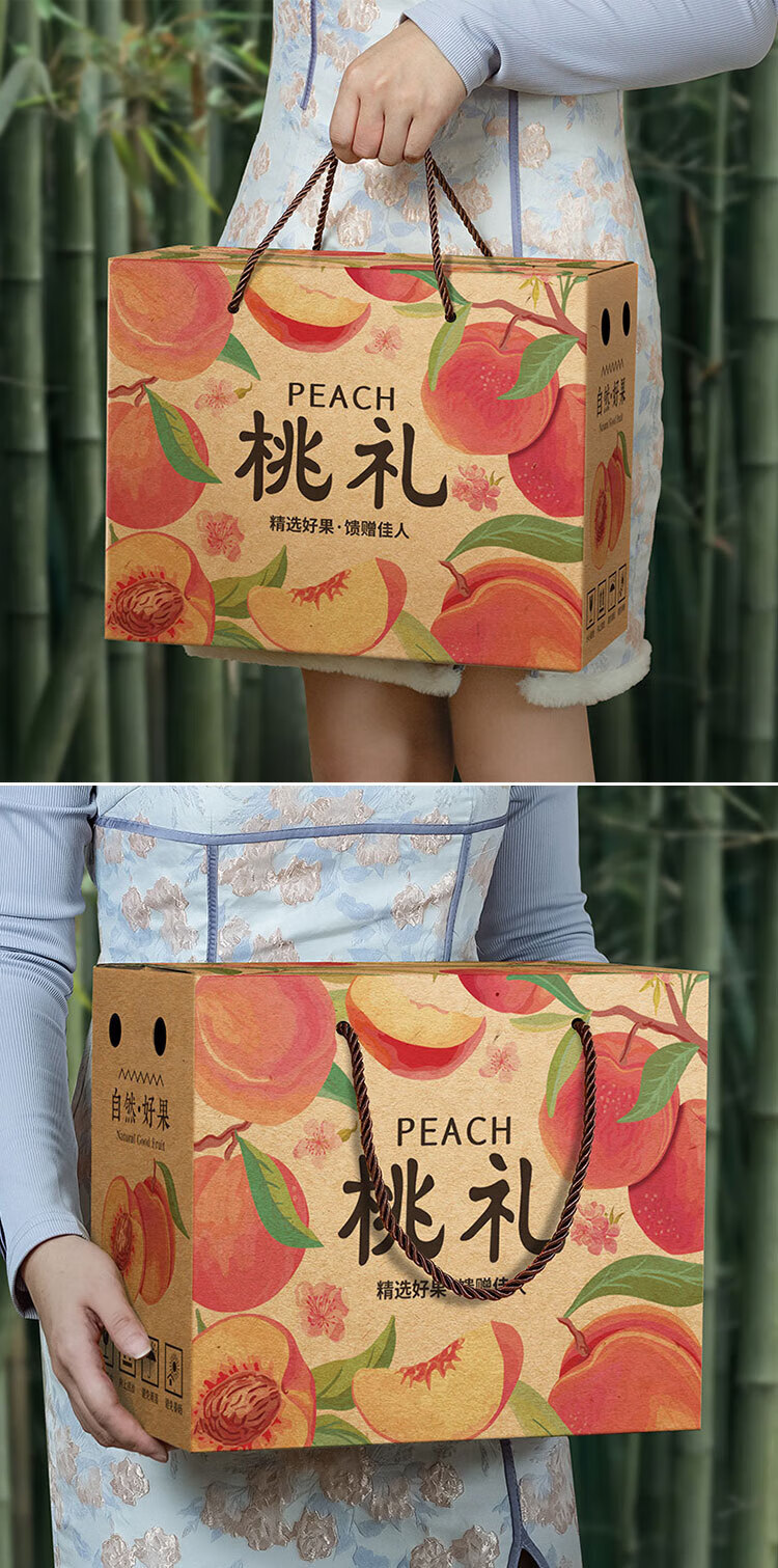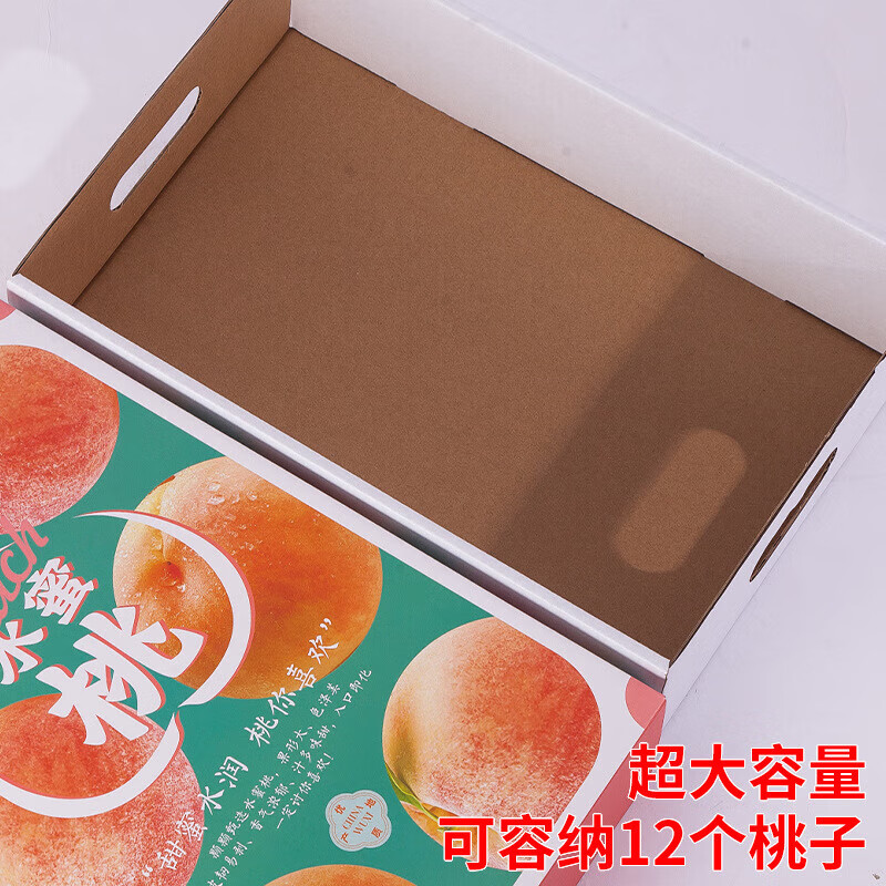 山头林村桃子礼盒包装盒通用水果盒水蜜桃黄桃油桃蟠桃包装纸箱空盒子定制 【10个空盒】水蜜桃平口小号