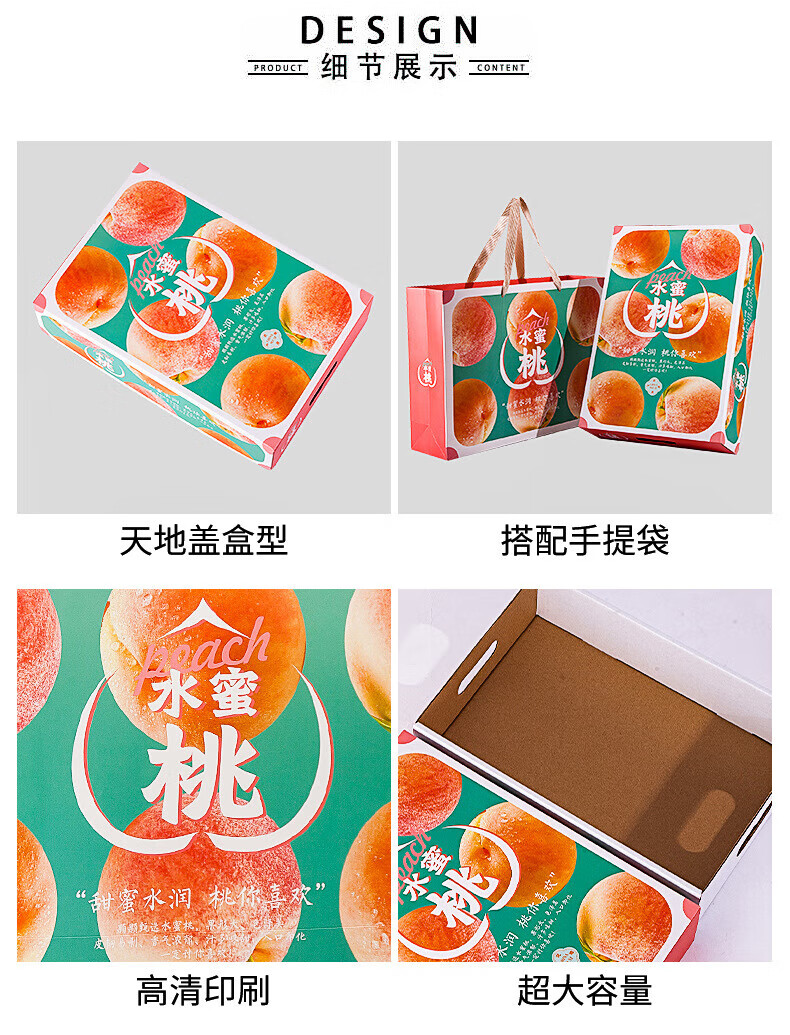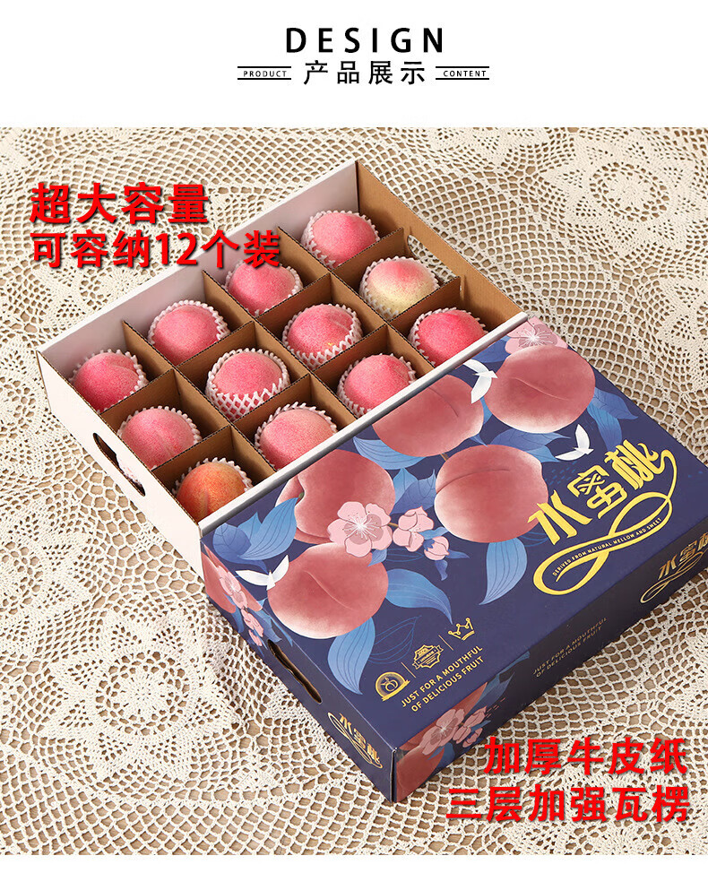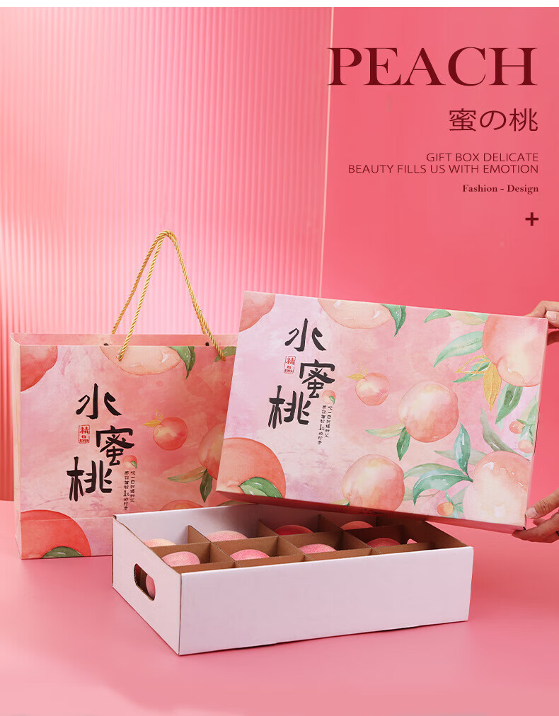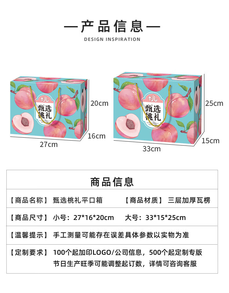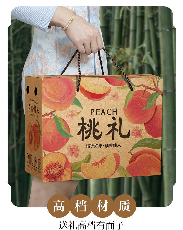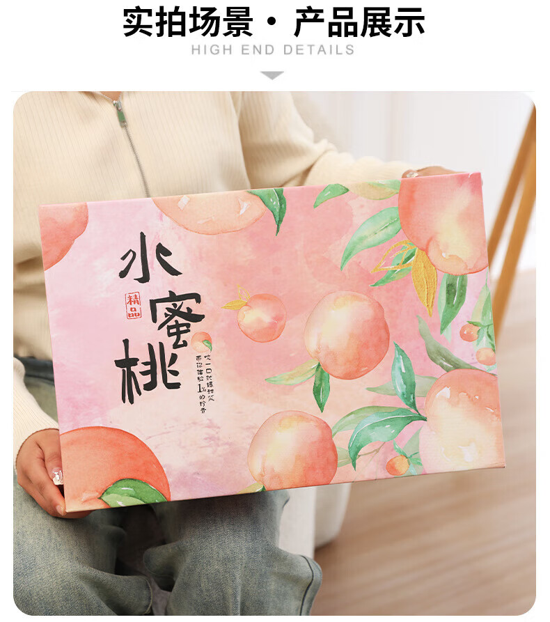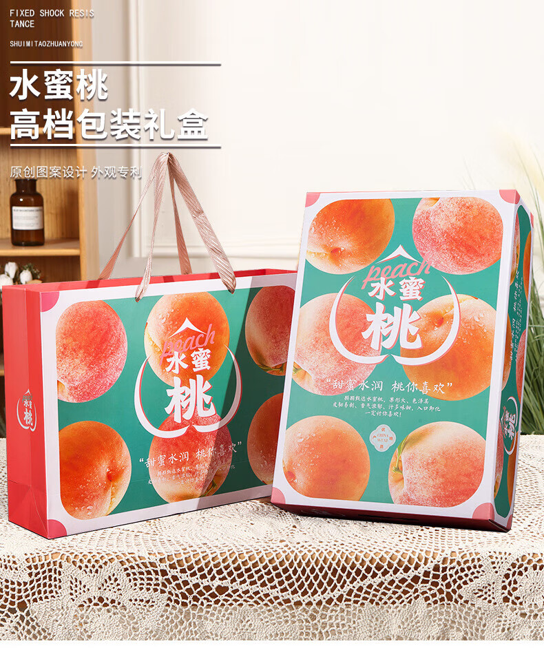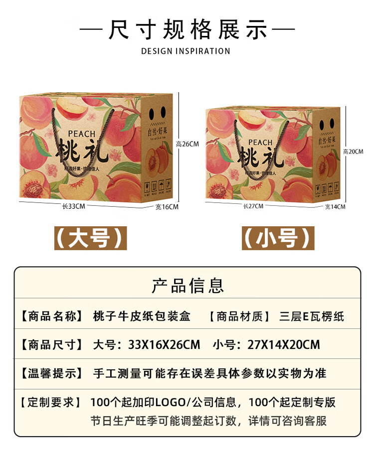 山头林村桃子礼盒包装盒通用水果盒水蜜桃黄桃油桃蟠桃包装纸箱空盒子定制 【10个空盒】水蜜桃平口小号