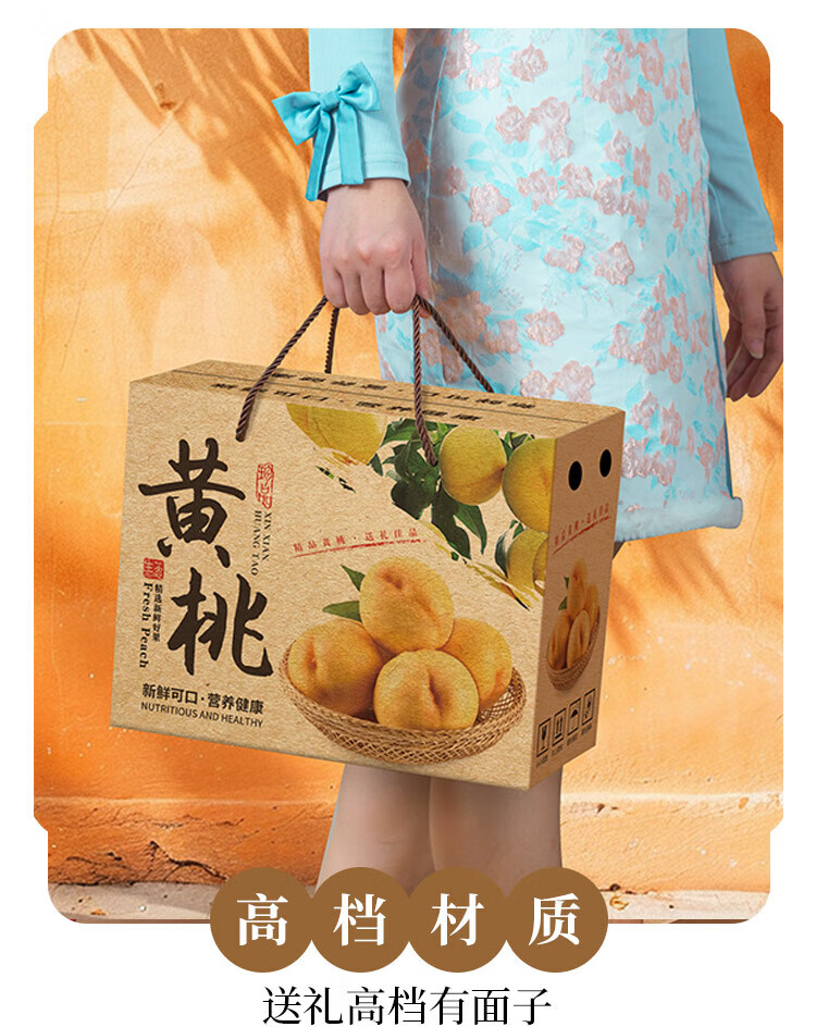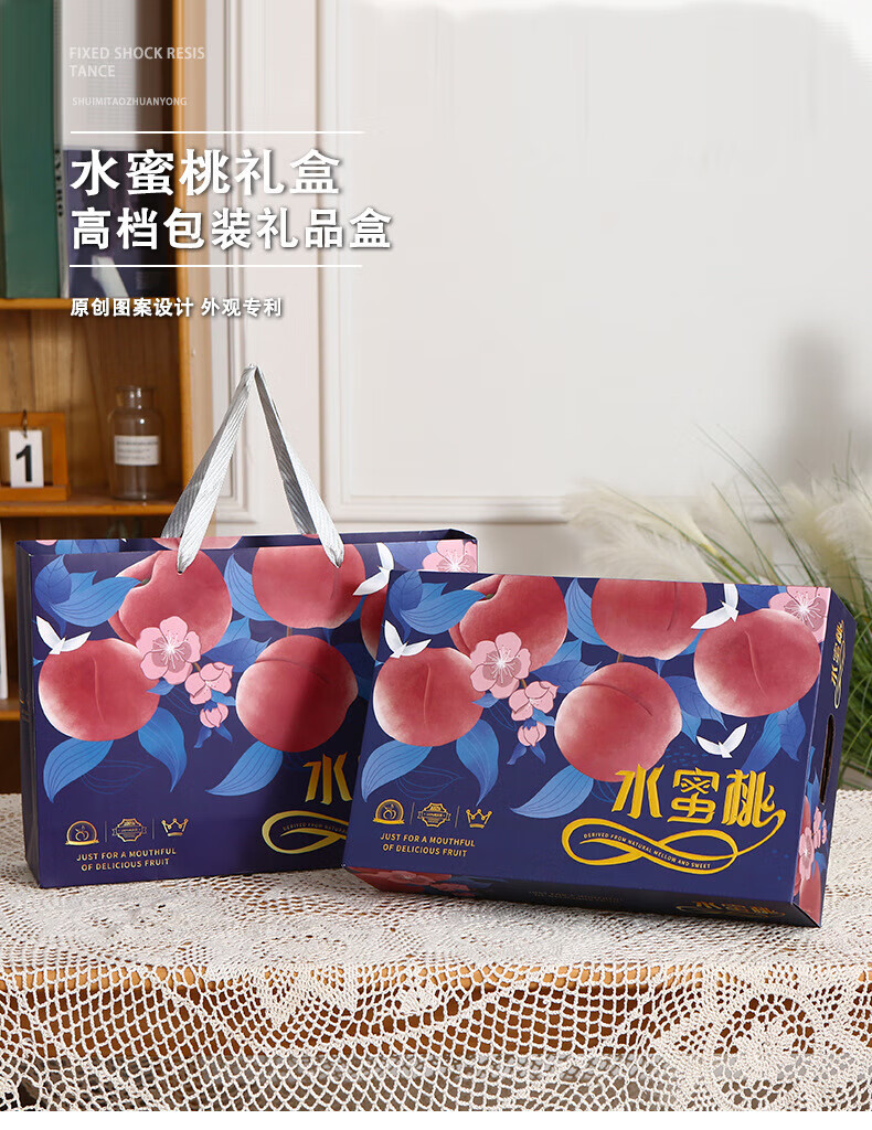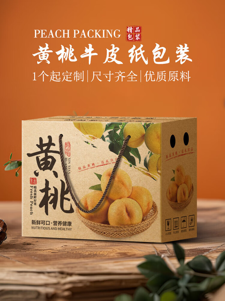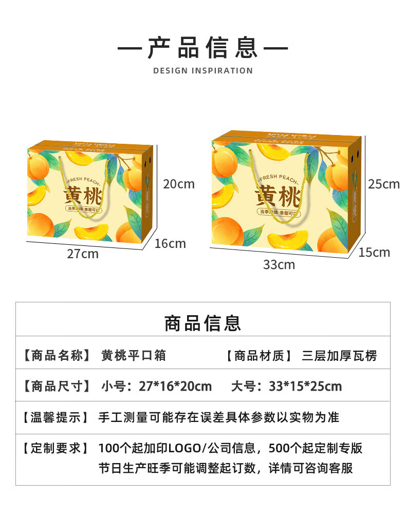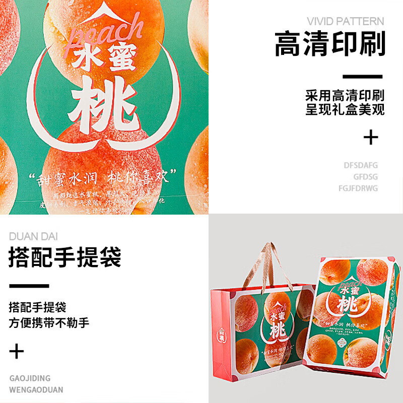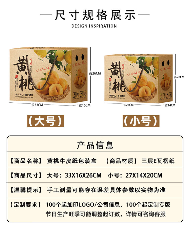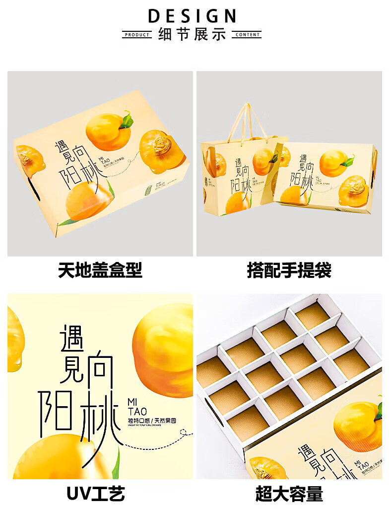 山头林村桃子礼盒包装盒通用水果盒水蜜桃黄桃油桃蟠桃包装纸箱空盒子定制 【10个空盒】水蜜桃平口小号