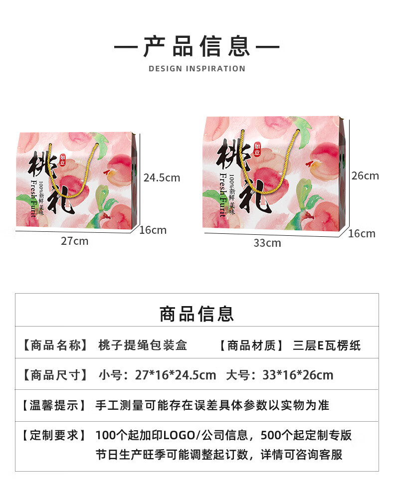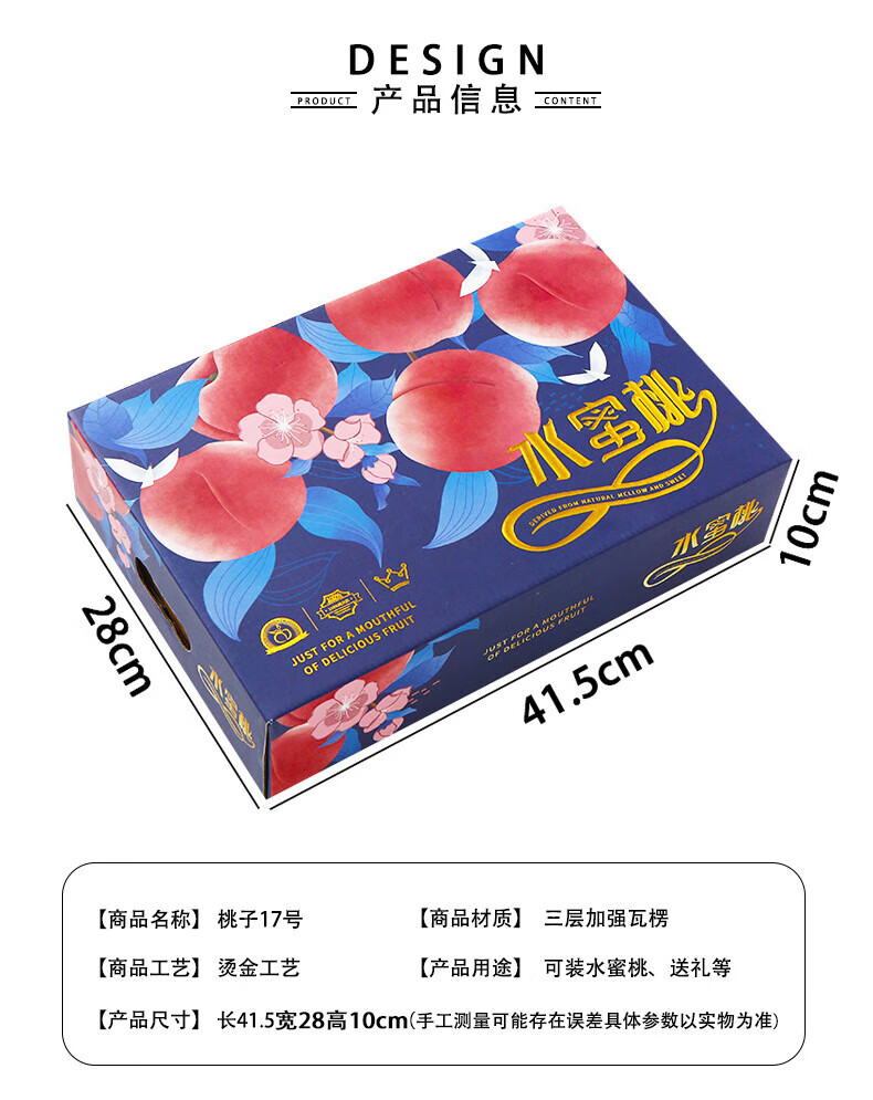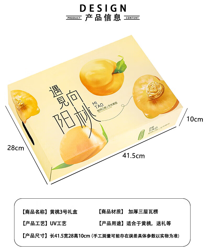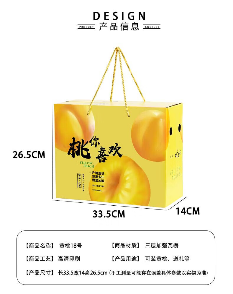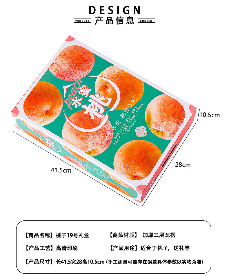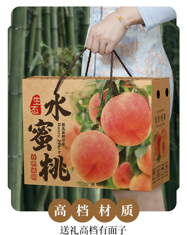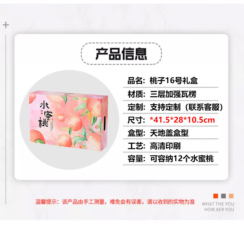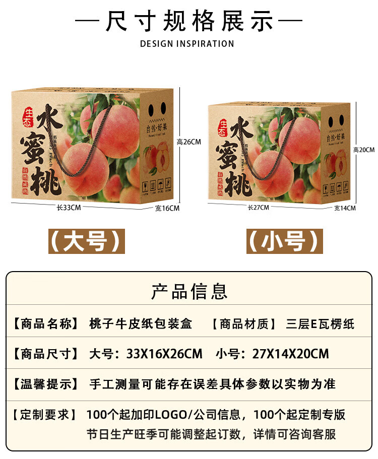 山头林村桃子礼盒包装盒通用水果盒水蜜桃黄桃油桃蟠桃包装纸箱空盒子定制 【10个空盒】水蜜桃平口小号
