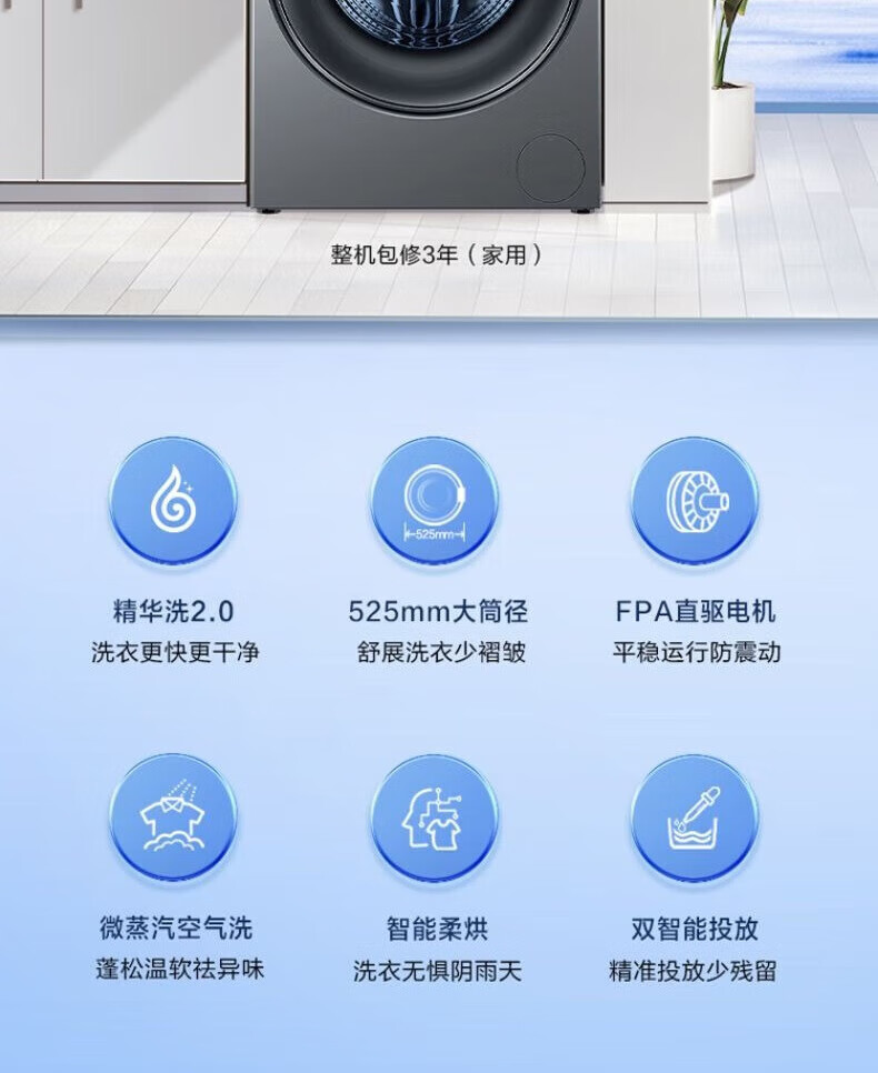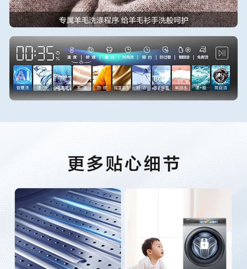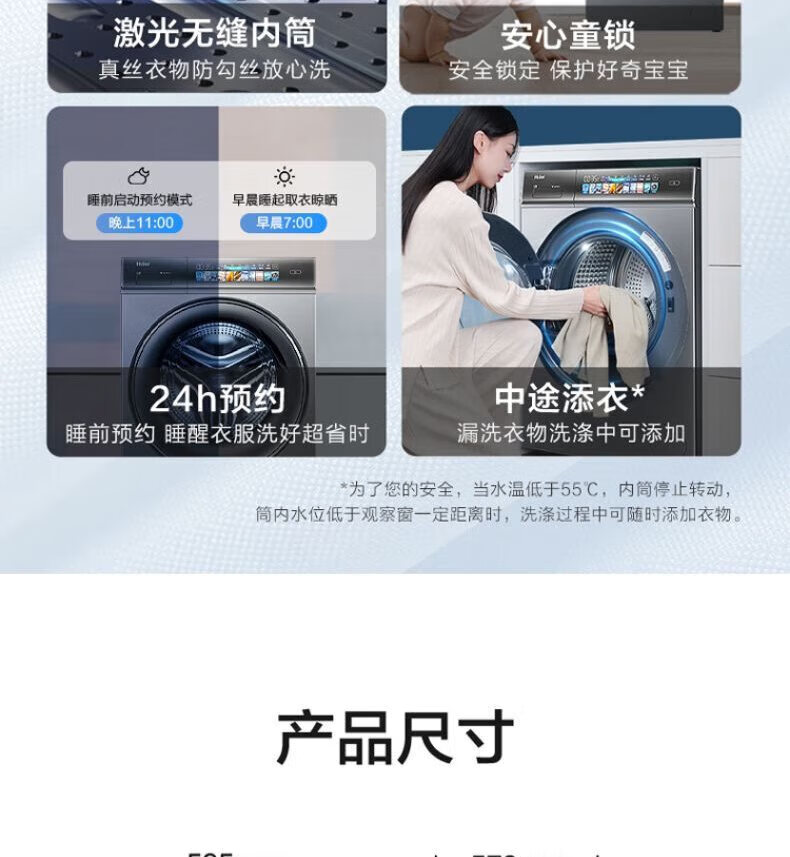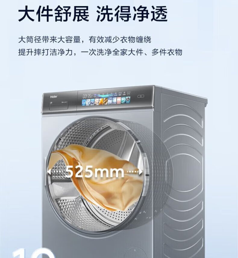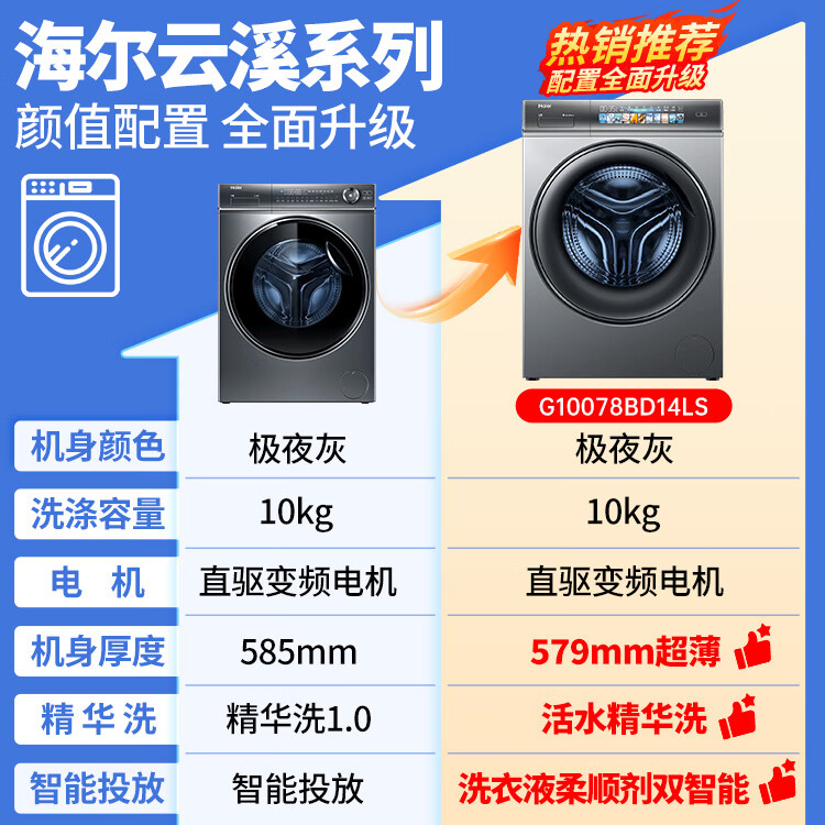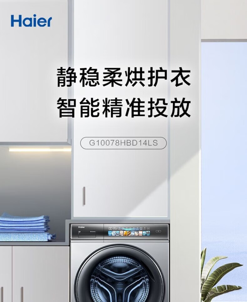 海尔(Haier)线下同款】云溪熙078直驱全自动滚筒洗衣机精华洗2.0双智投10公斤大容量家用G10078BD14LS 补贴15% 【洗烘一体】直驱+空气洗+精华洗2.0