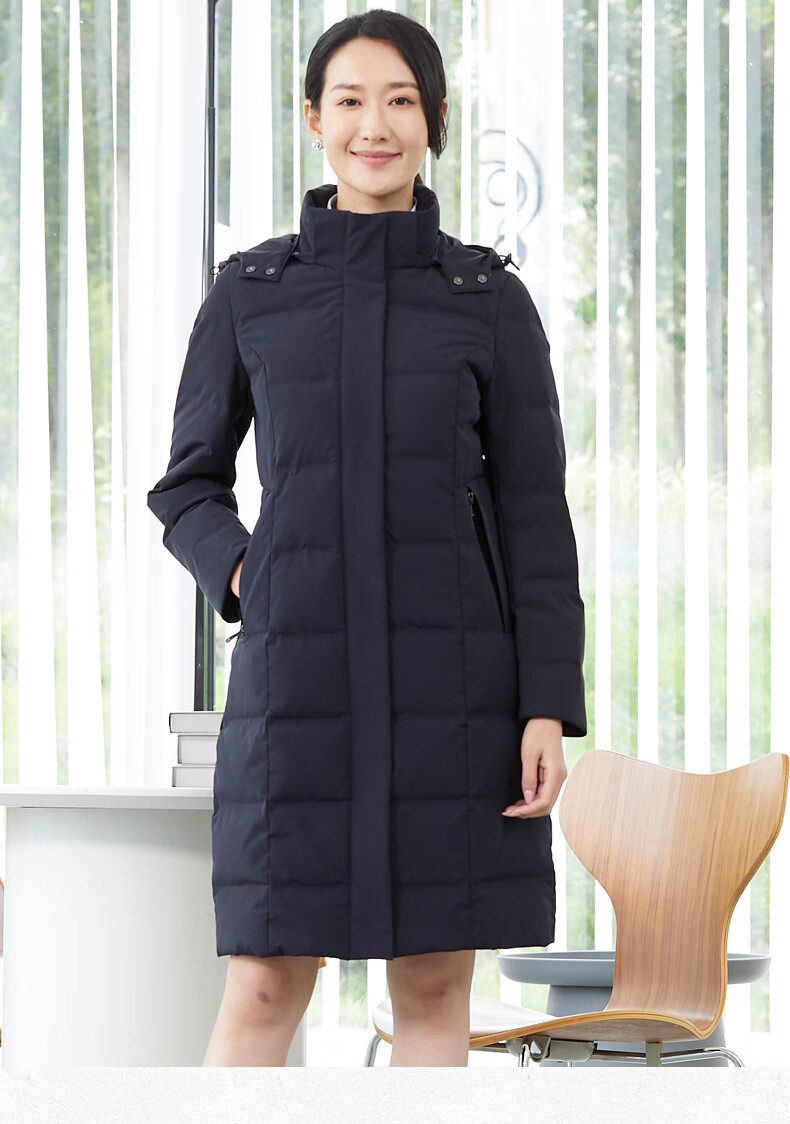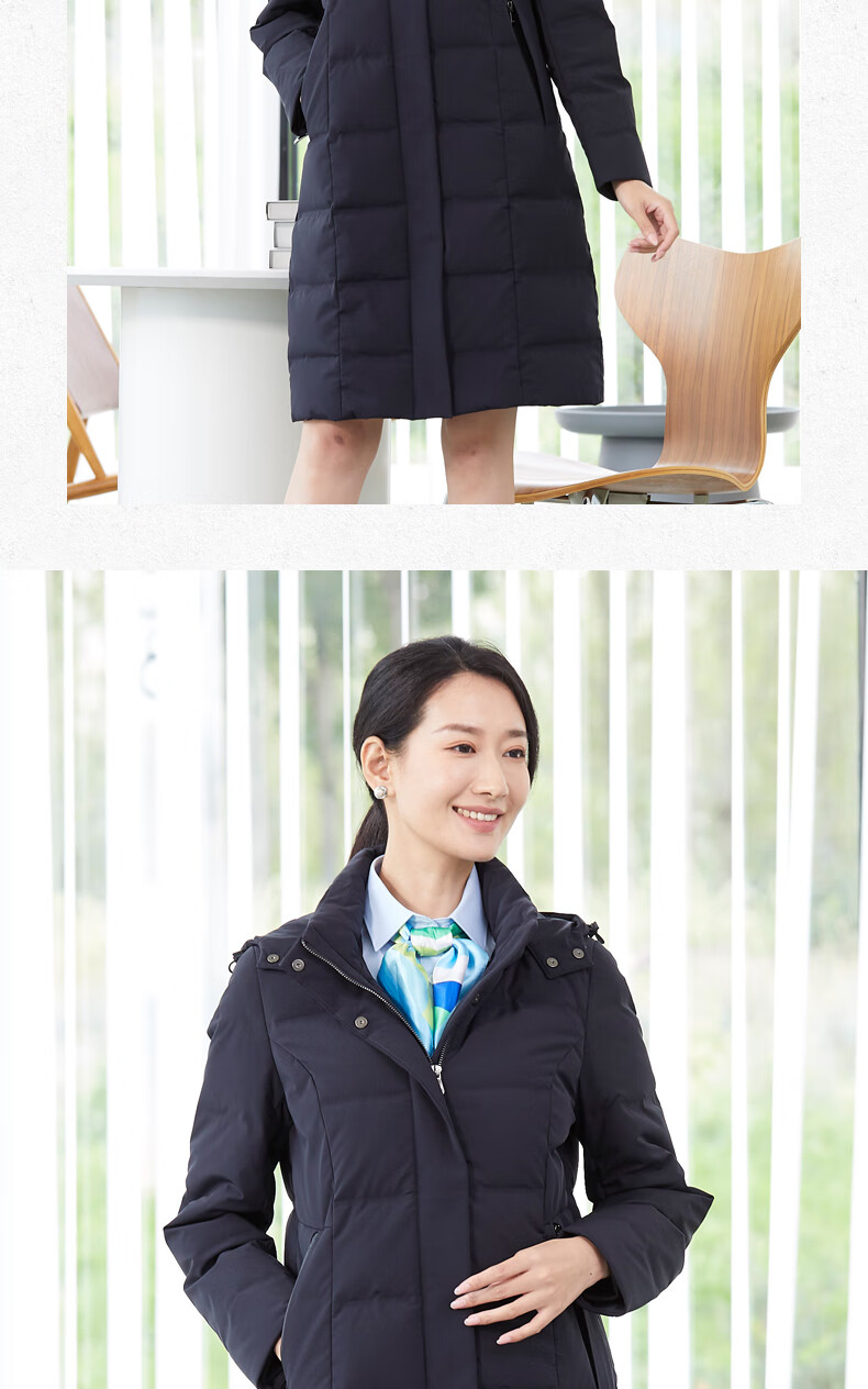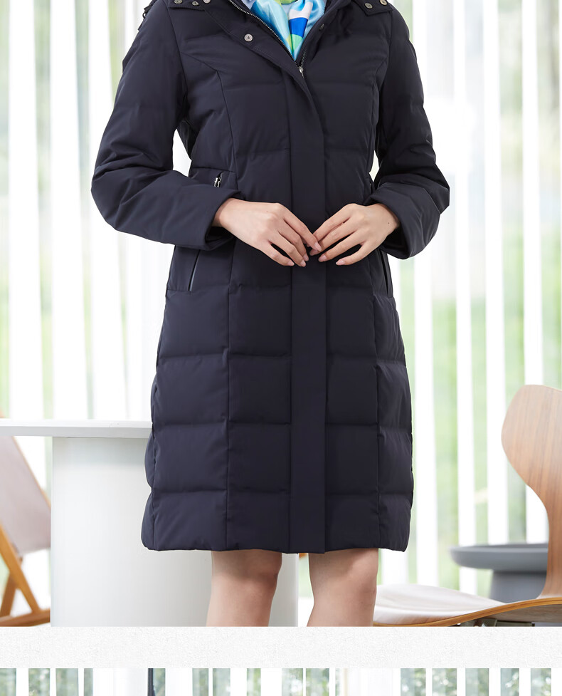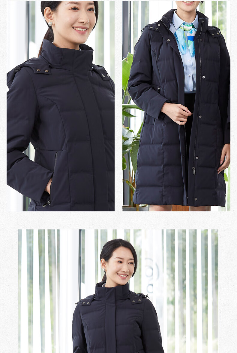 译欧时羽绒服90%白鹅绒羽绒服女中长款可脱卸帽商务通勤工作服职业装 深藏蓝(2602女款) S(身高150-155 体重80-95)