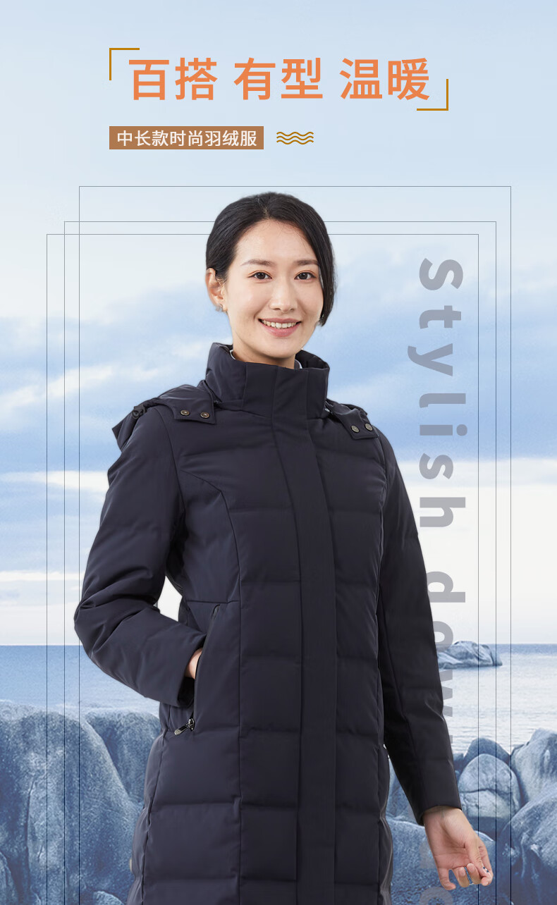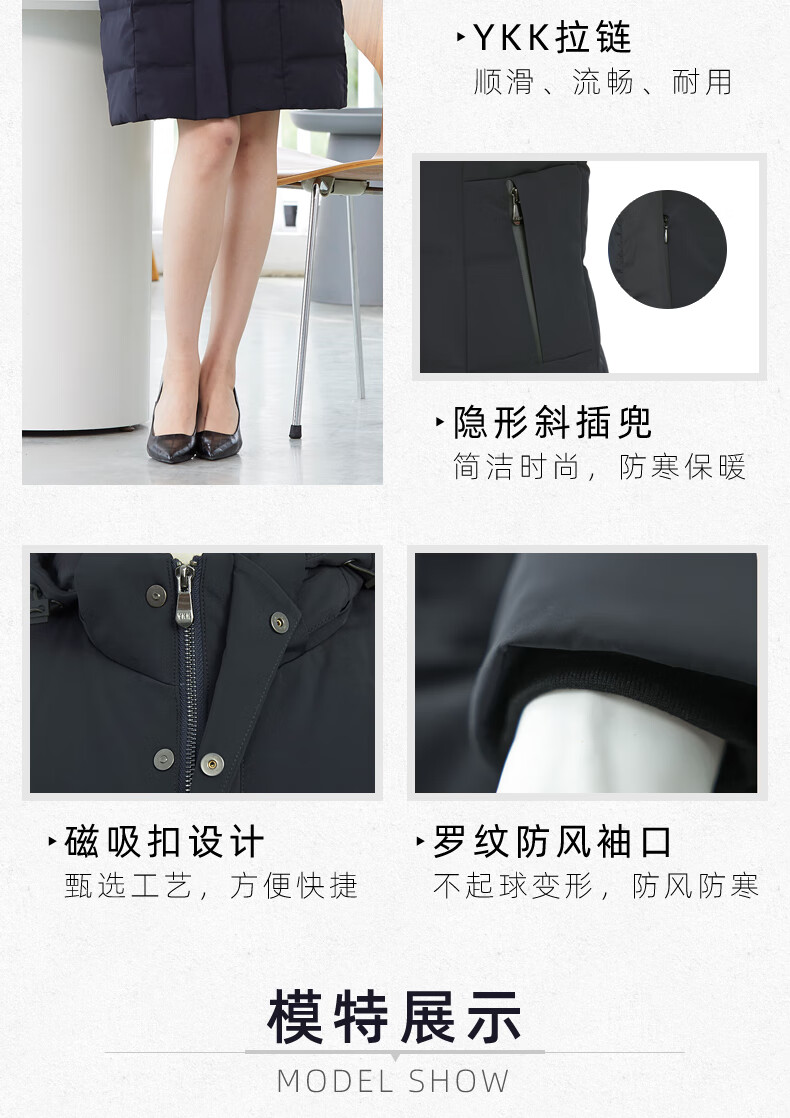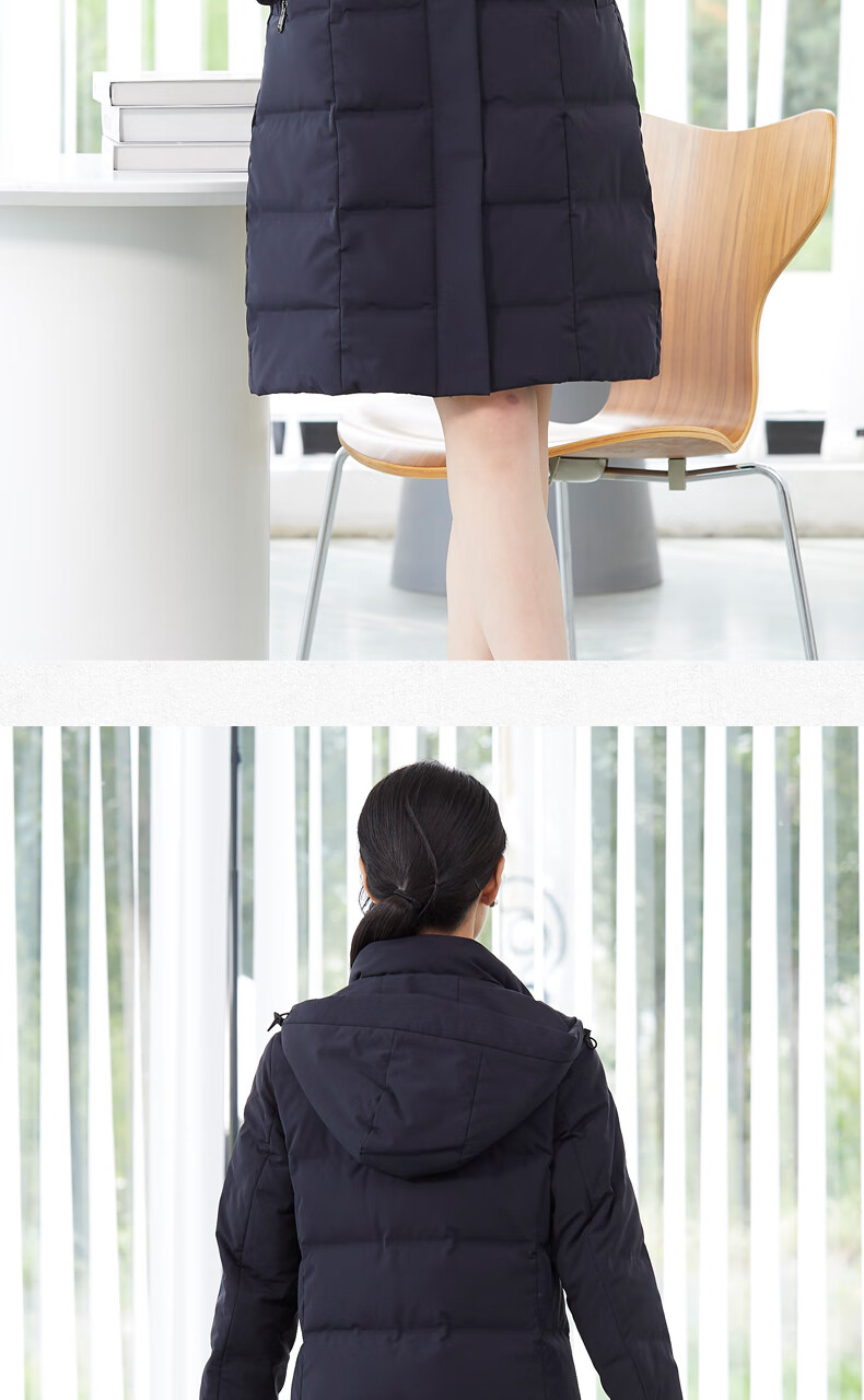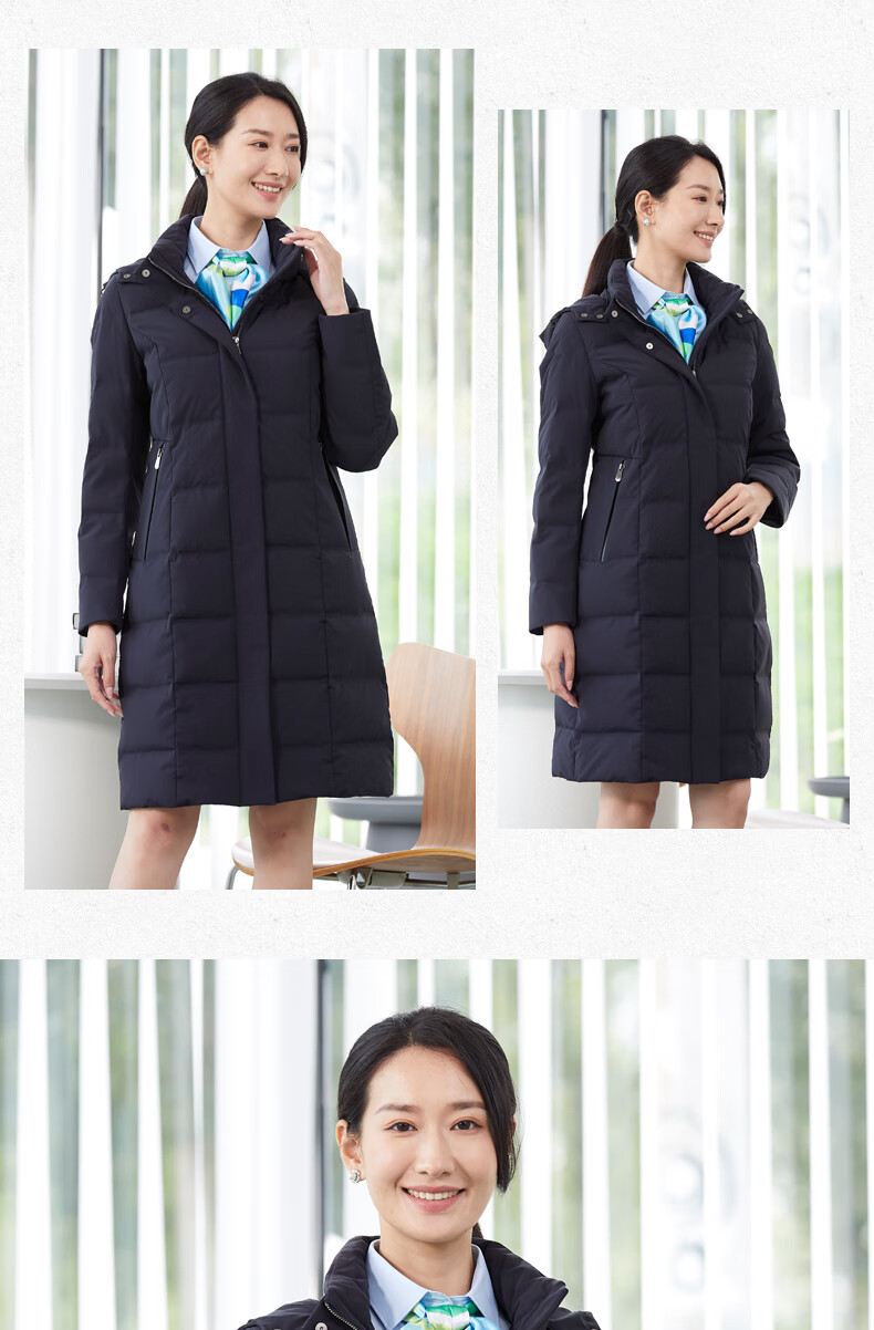 译欧时羽绒服90%白鹅绒羽绒服女中长款可脱卸帽商务通勤工作服职业装 深藏蓝(2602女款) S(身高150-155 体重80-95)