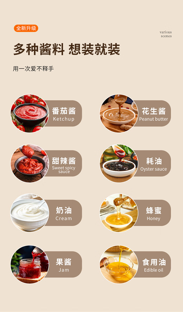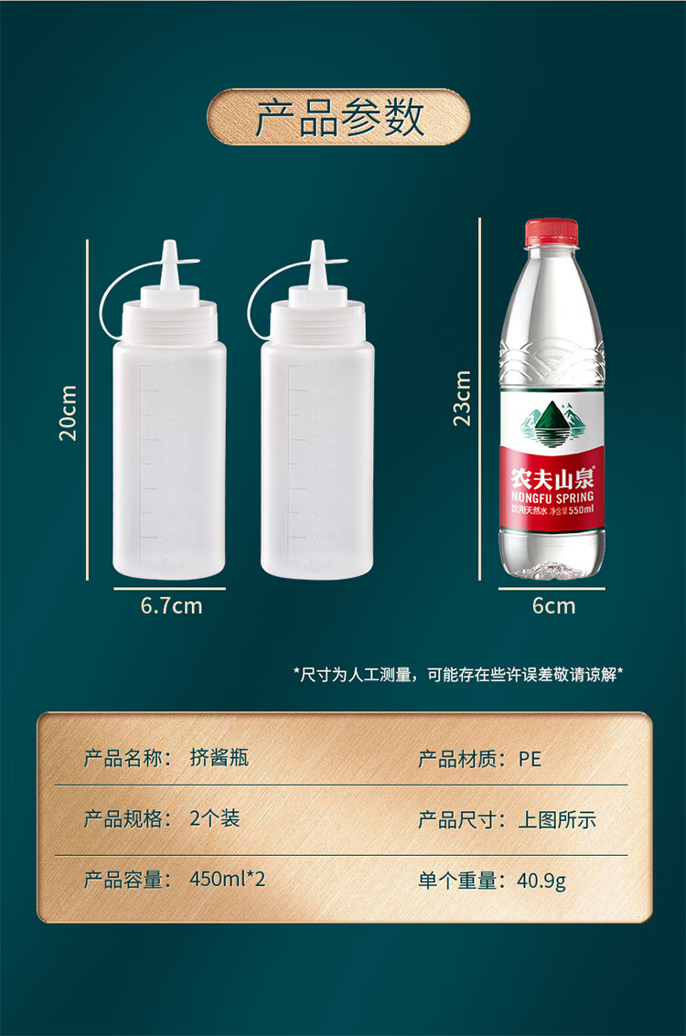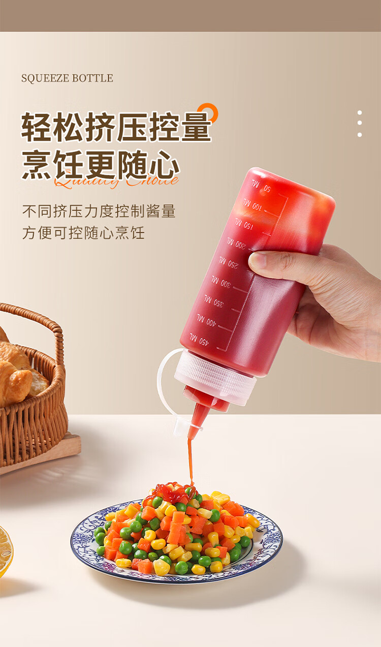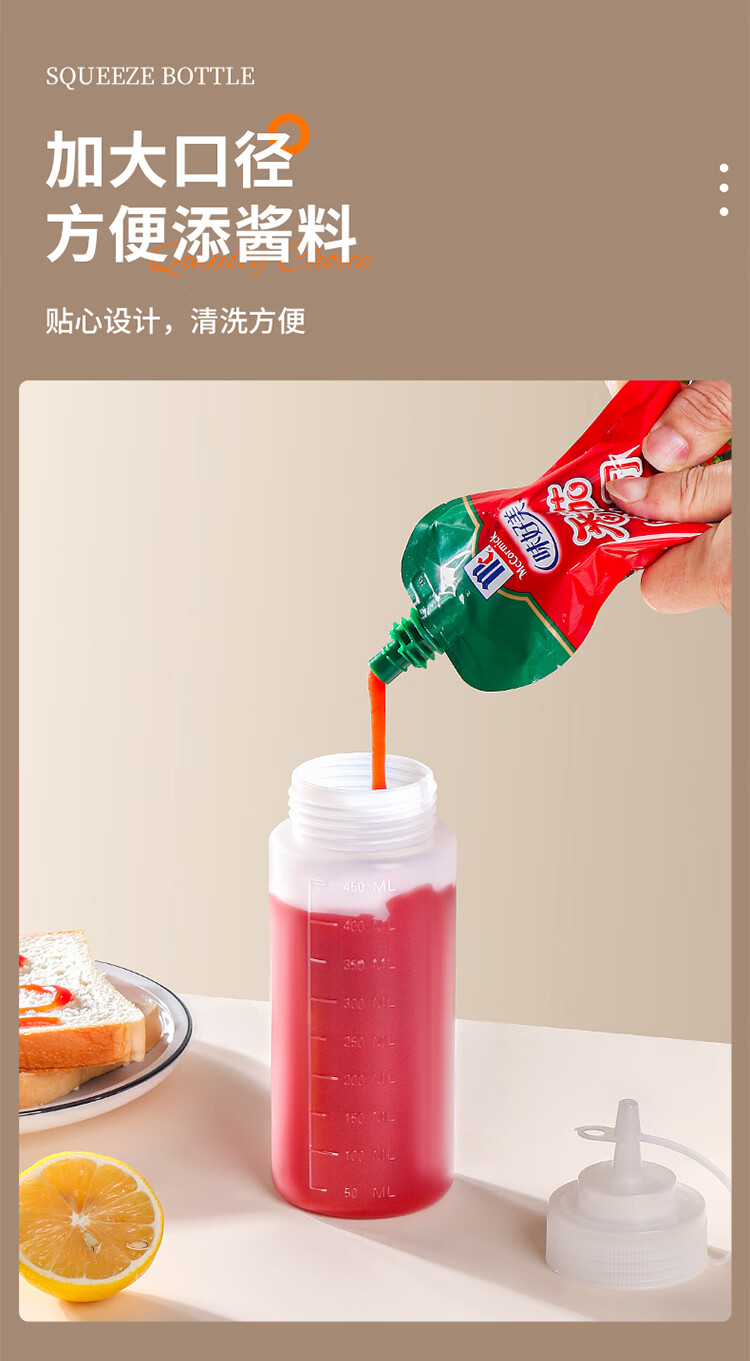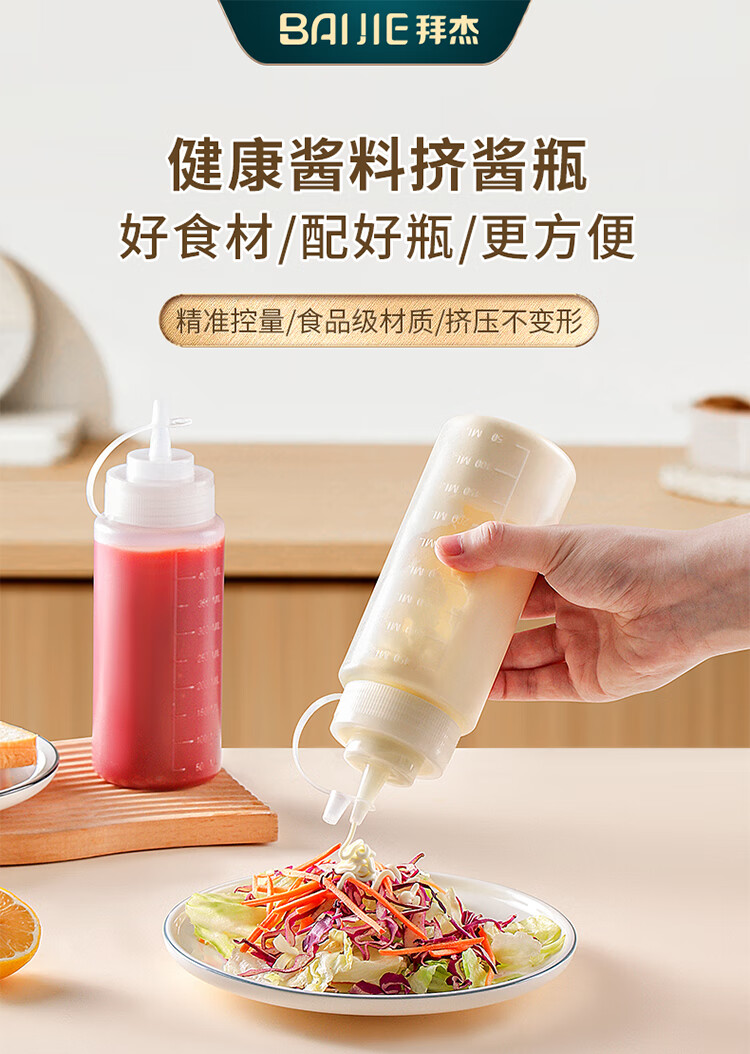 拜杰挤酱瓶食品级番茄酱沙拉挤压瓶酱料蜂蜜果酱汁壶调料瓶2个装450ml