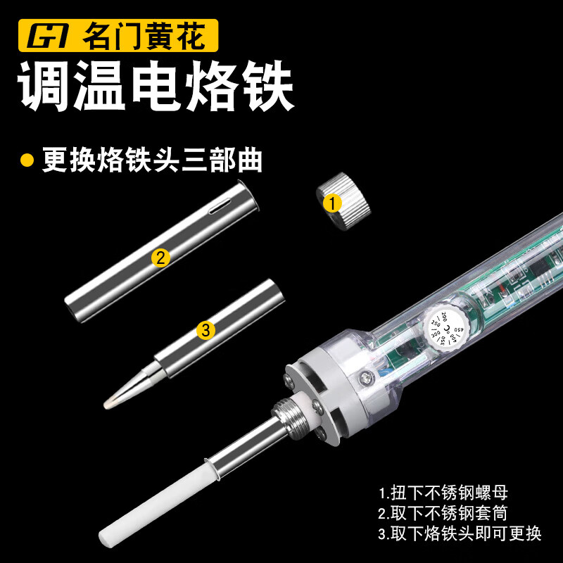 黄花名门黄花905可调温内热电烙铁60W外热式恒温洛铁焊接 黄花907电烙铁尖咀_内热式