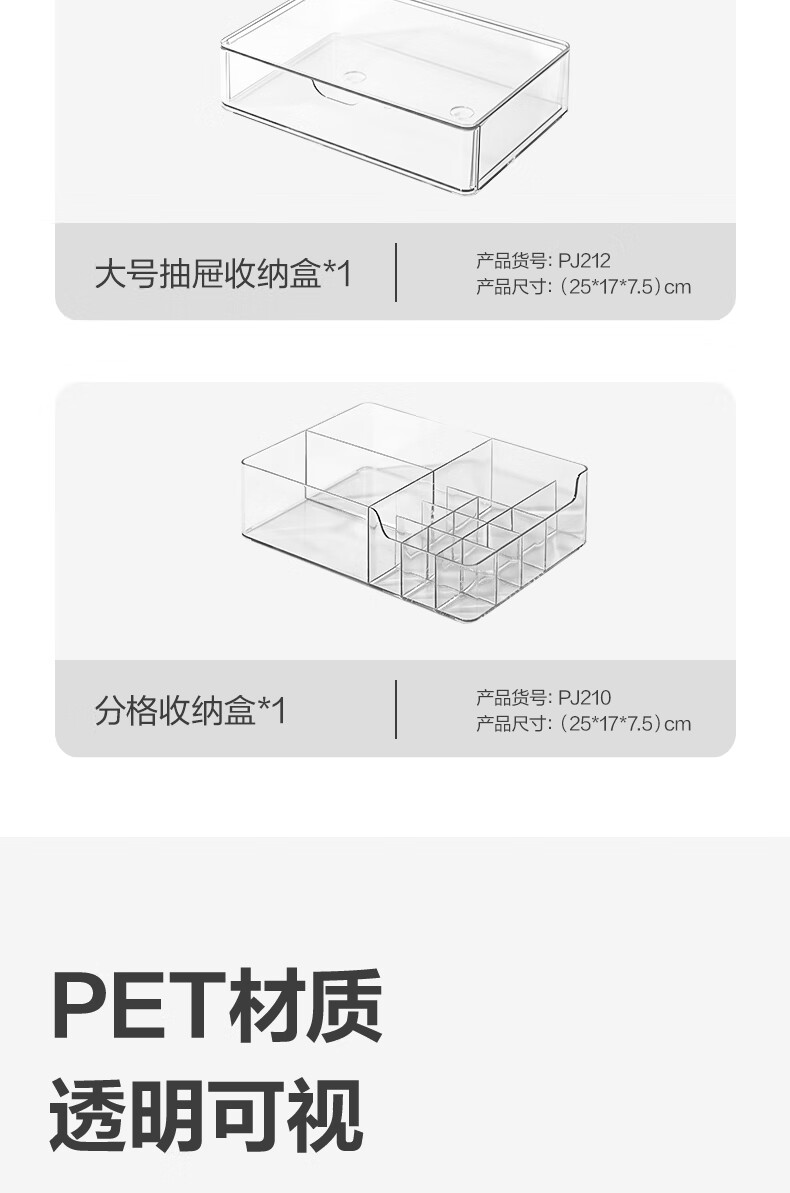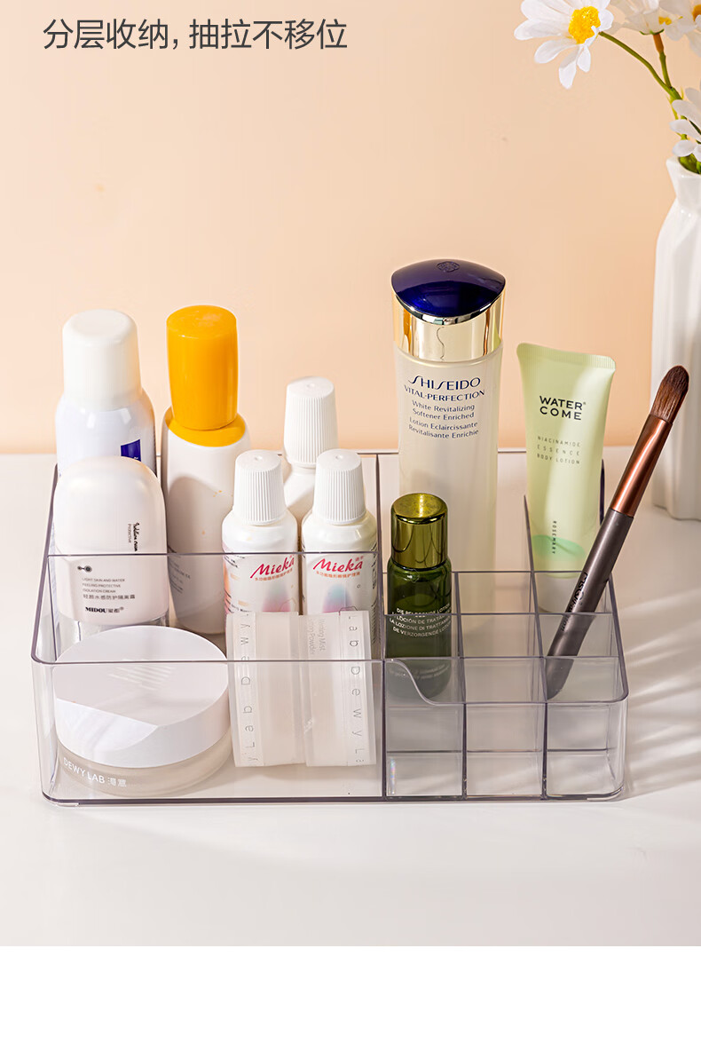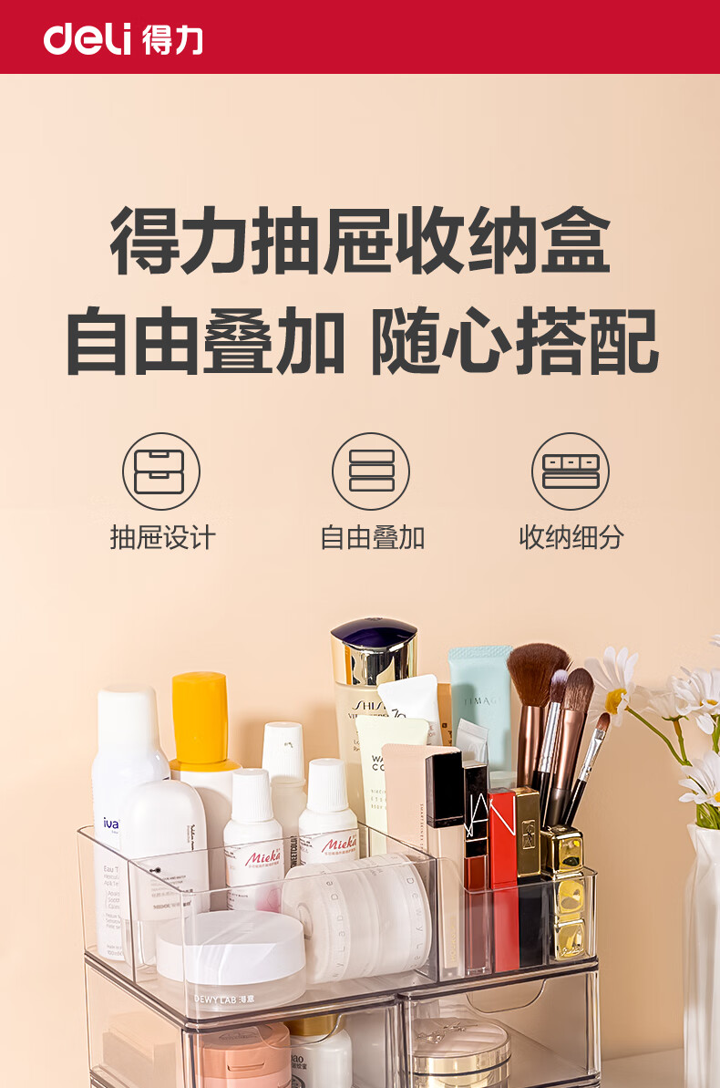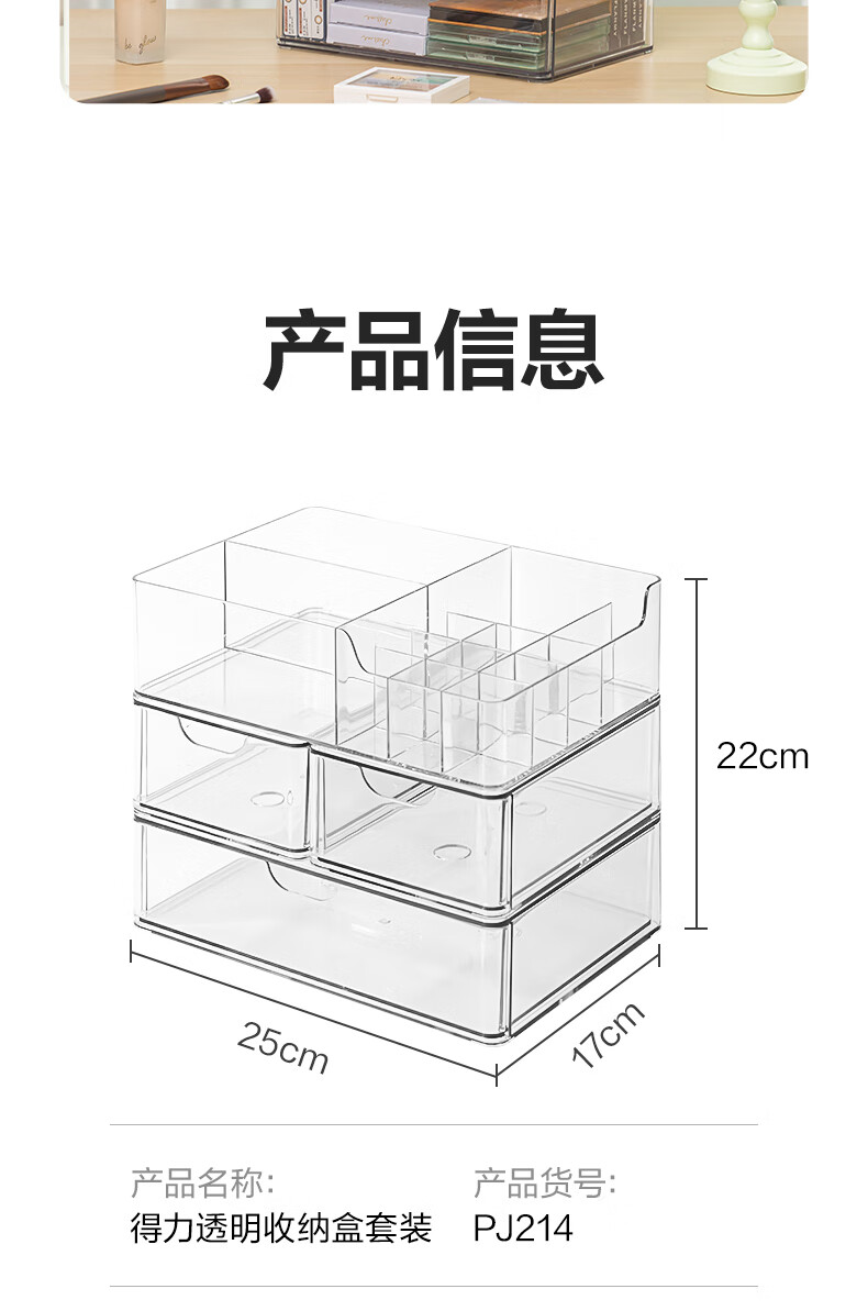 得力(deli)化妆品收纳盒套装 水乳口红桌面分格收纳 透明大容量 PJ214