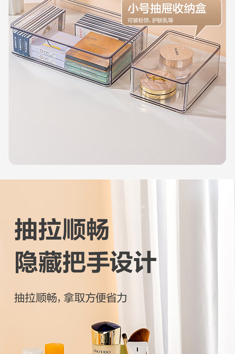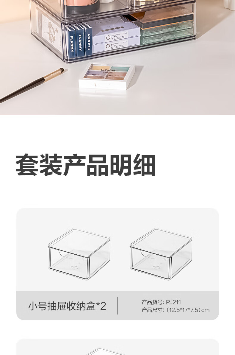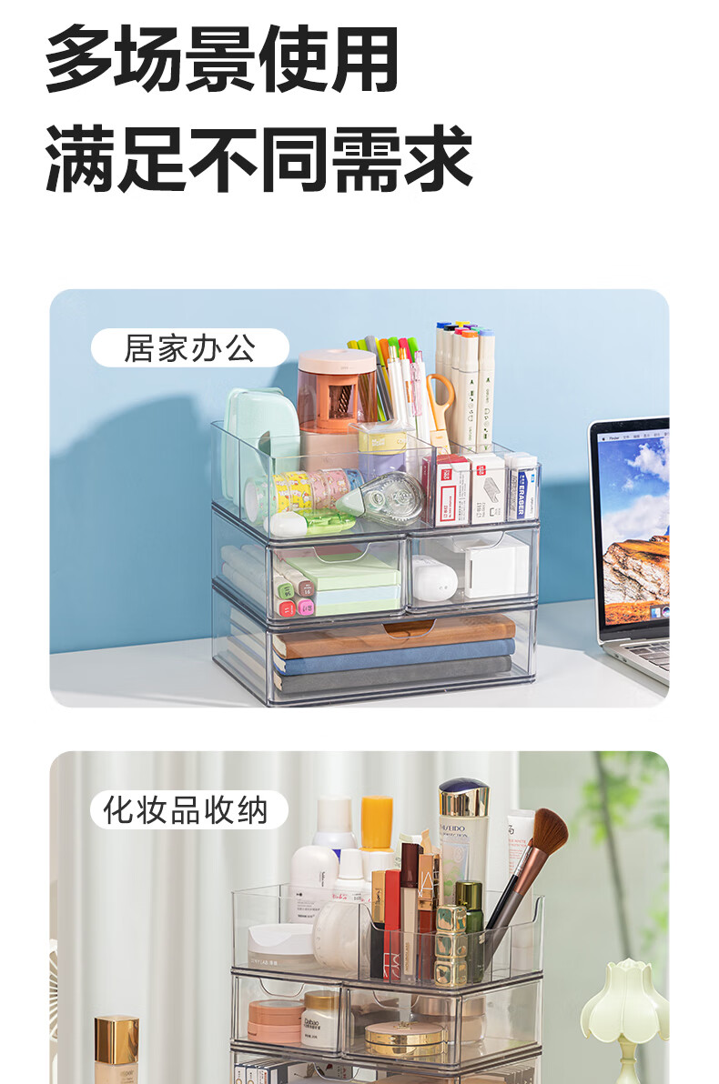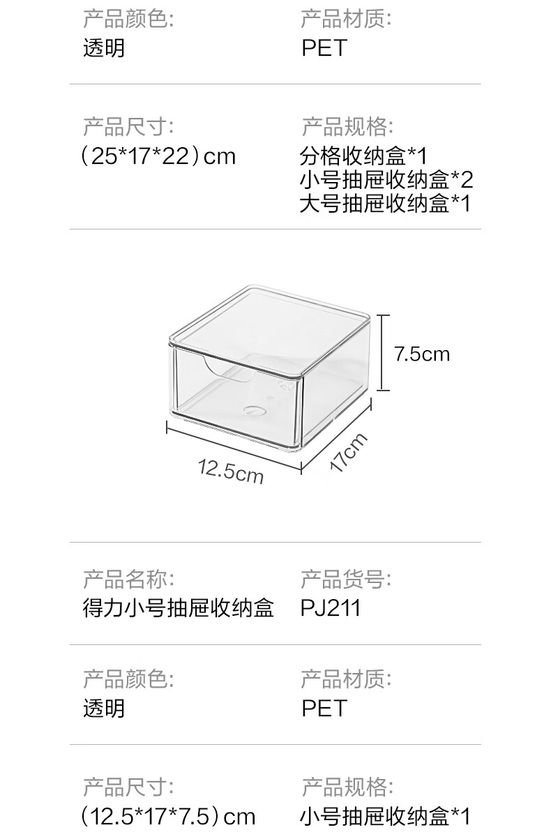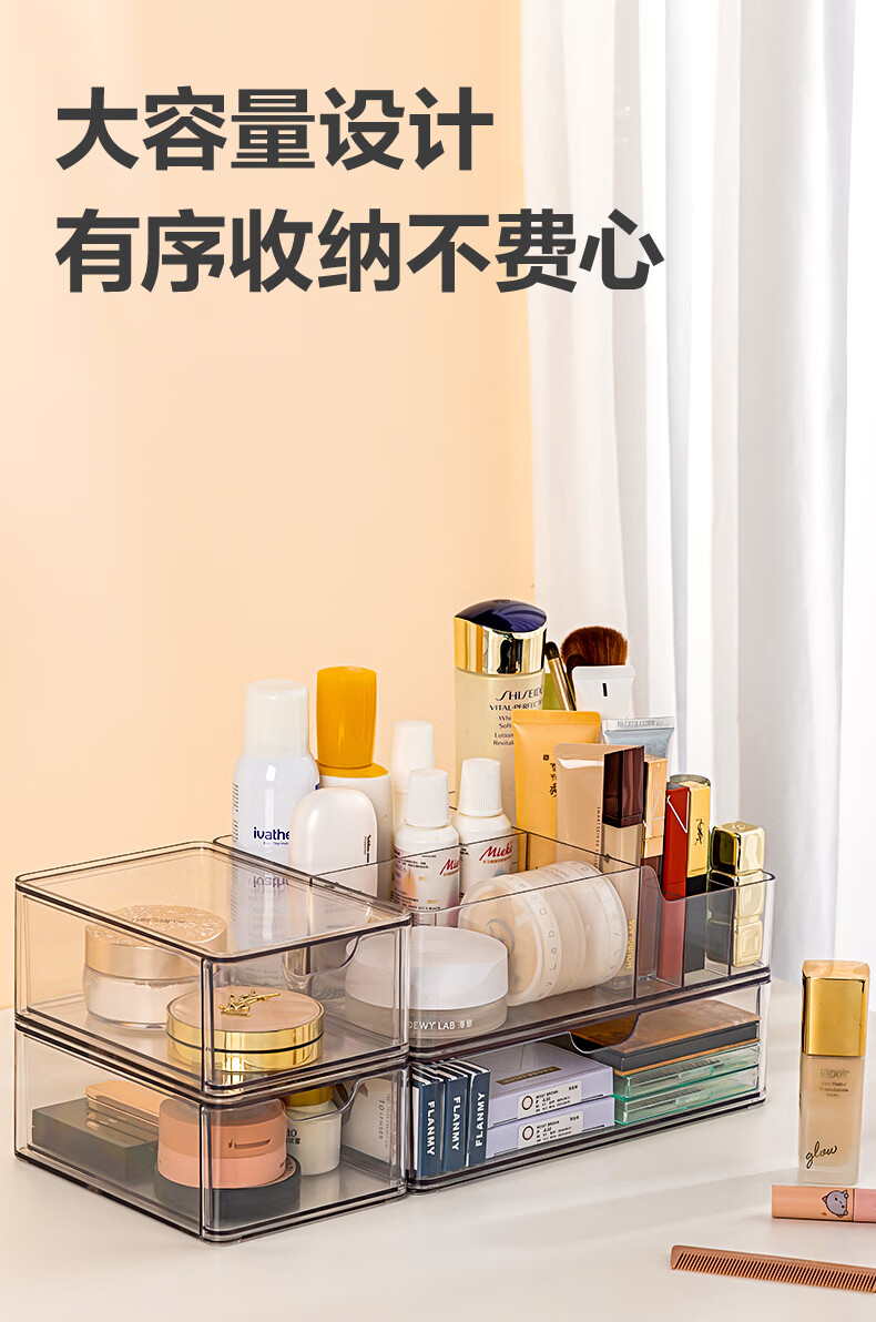 得力(deli)化妆品收纳盒套装 水乳口红桌面分格收纳 透明大容量 PJ214