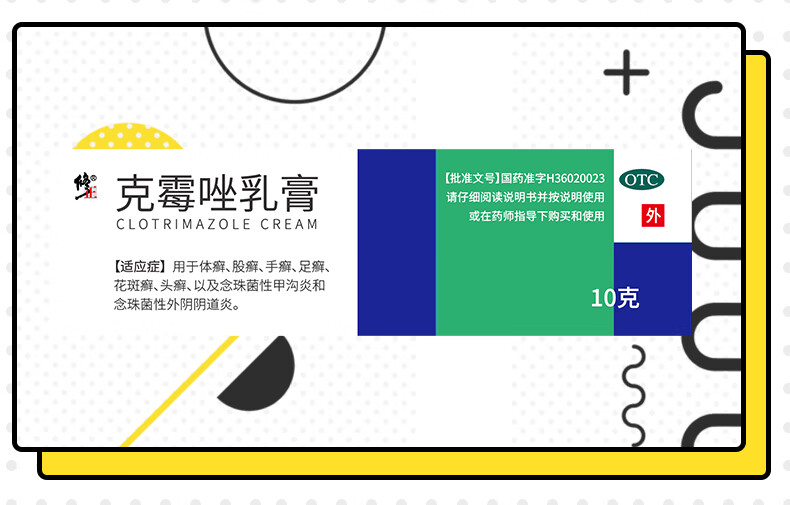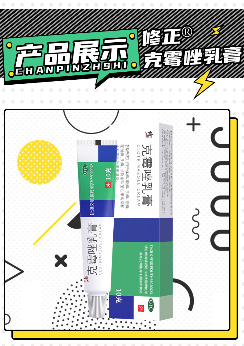 修正 克霉唑乳膏3%*10g妇科外阴瘙痒私处止痒杀菌龟头炎阴道炎真菌感染甲沟炎脚气克霉唑软膏