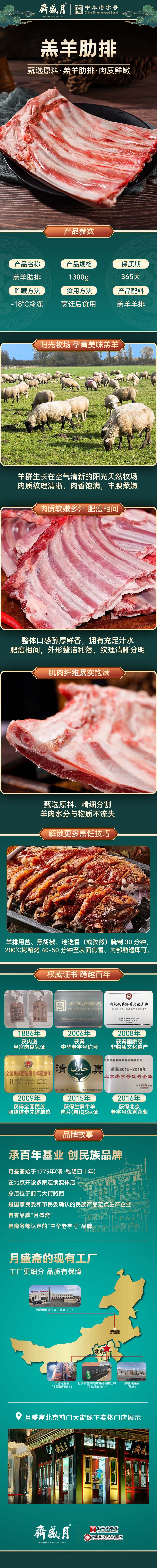 月盛斋原切羔羊肋排1.3kg 中华老字号清真冬季炖煮食材煎烤炸羊排骨 羔羊肋排1.3kg(原切)