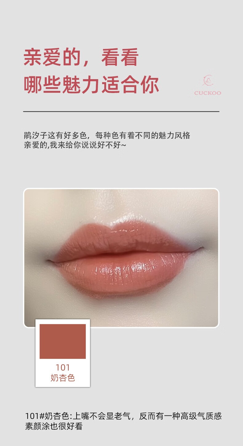 鹃汐子【官方正品】不掉色不沾杯奶杏肉桂口红素颜显白防水女官方旗舰店 114#浅茶杏色【主视频色号】 口红