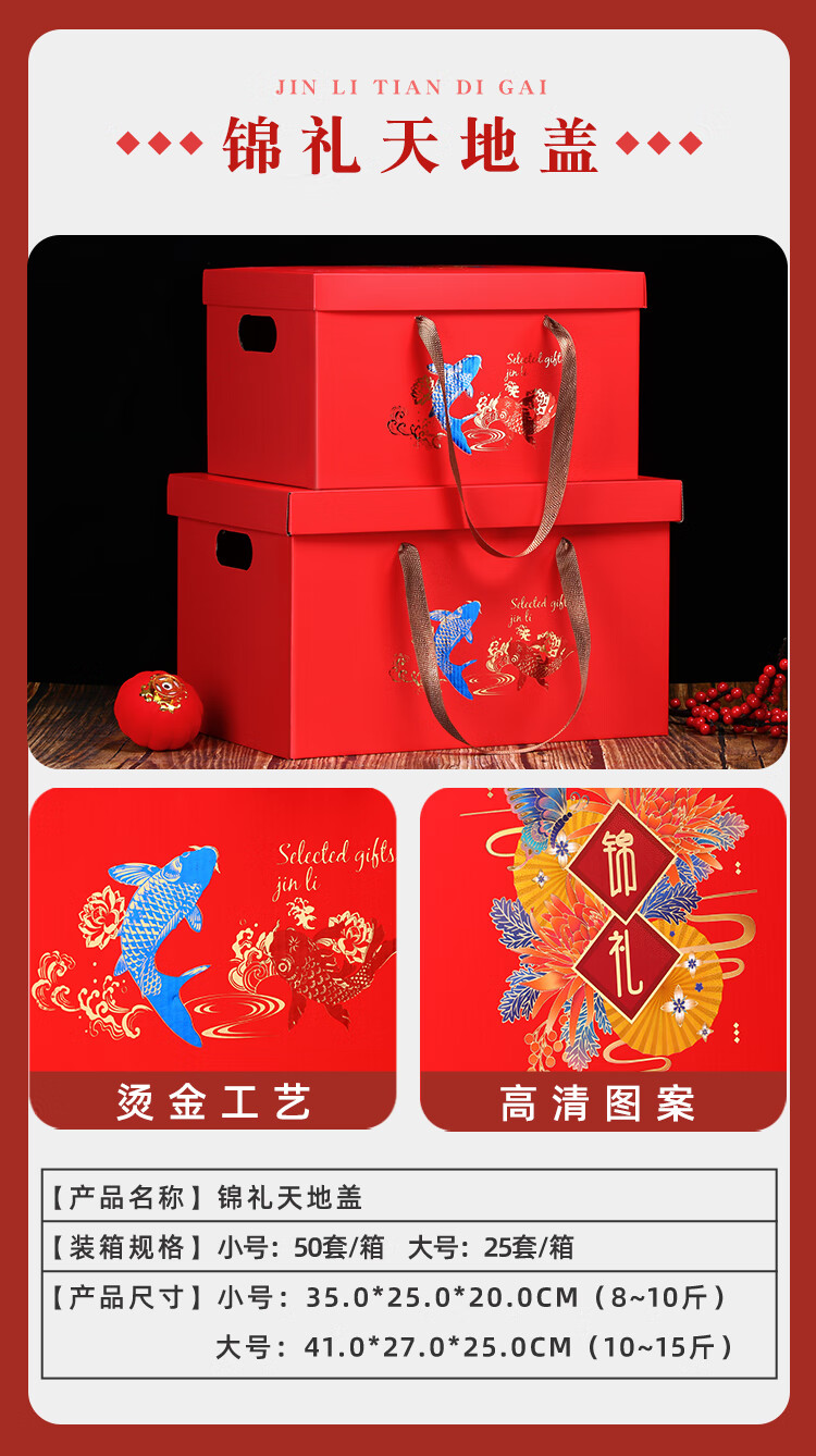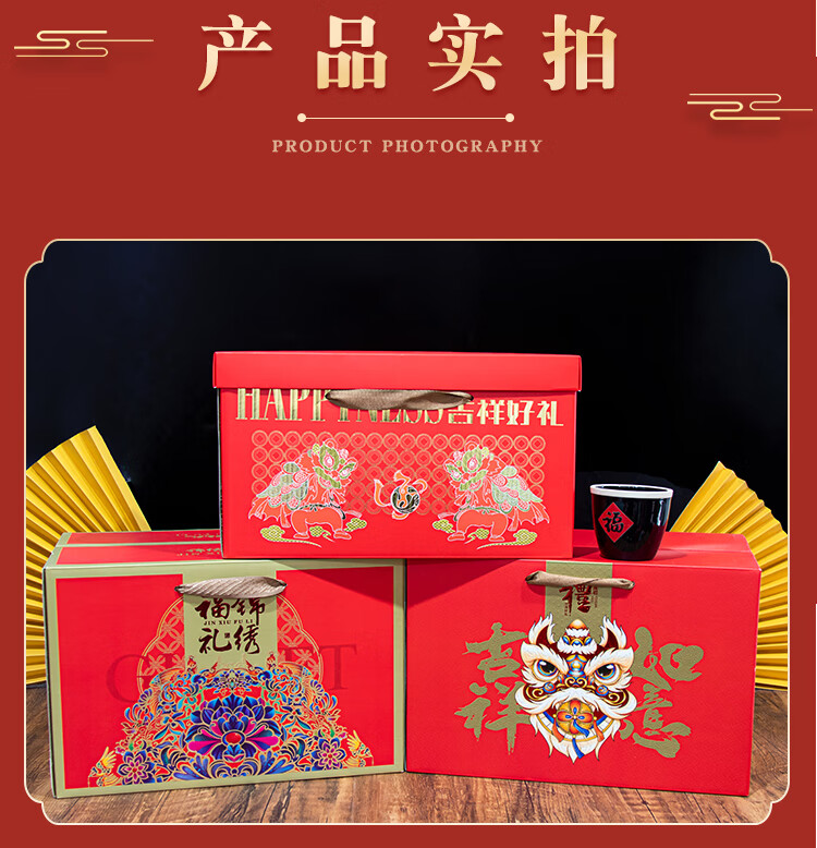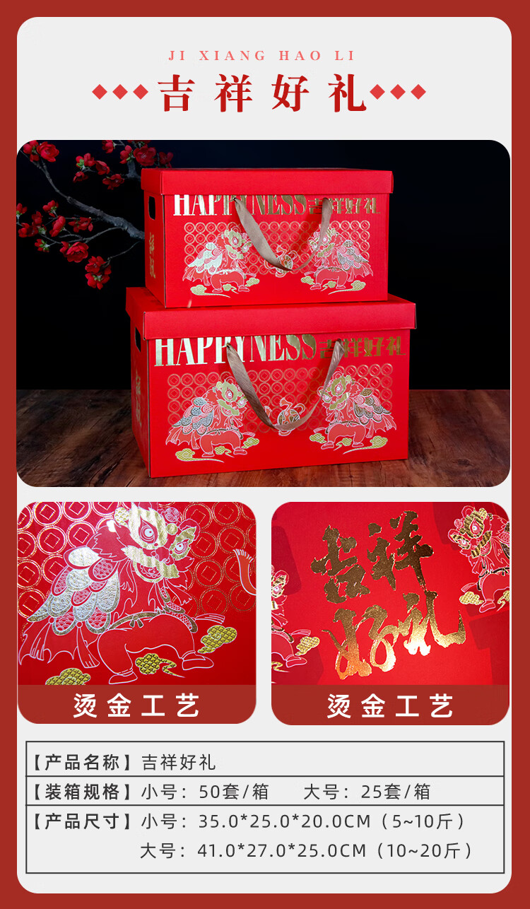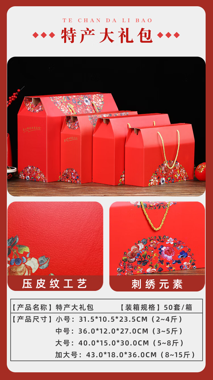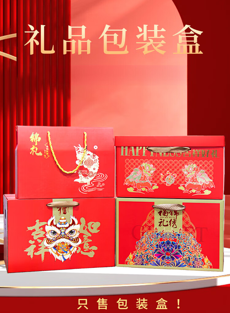 春节礼品年货包装盒新年特产礼品盒空盒子干果大礼包纸箱高 (10个装)大礼包小号