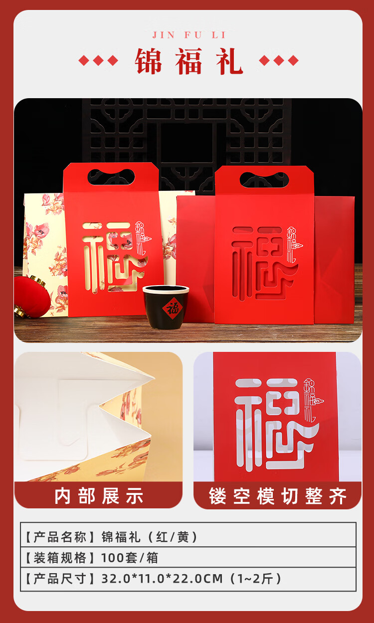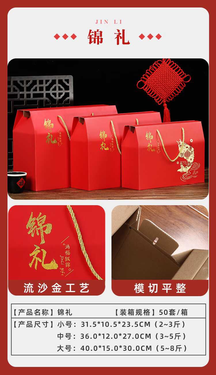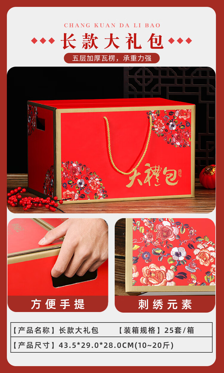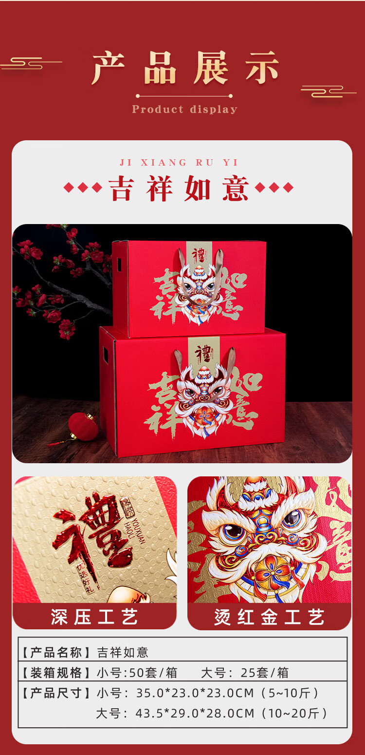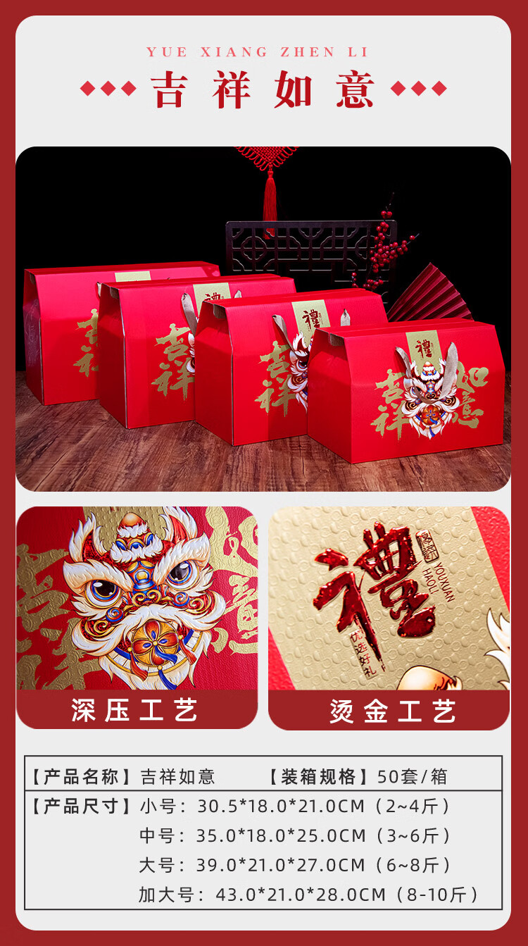 春节礼品年货包装盒新年特产礼品盒空盒子干果大礼包纸箱高 (10个装)大礼包小号