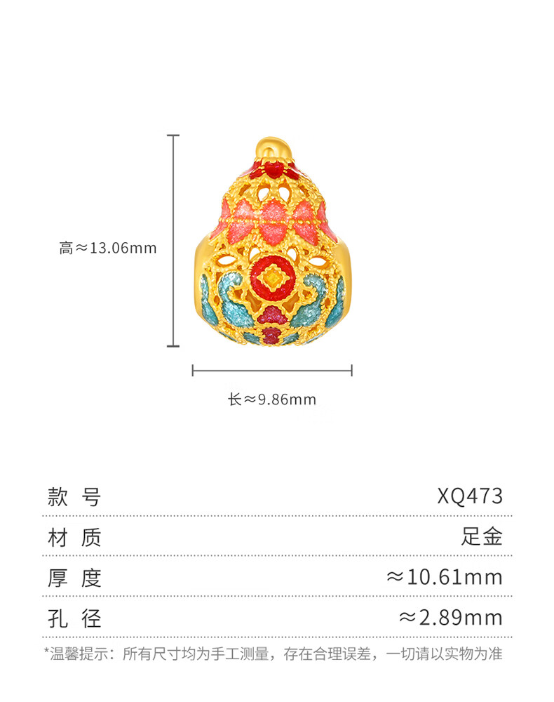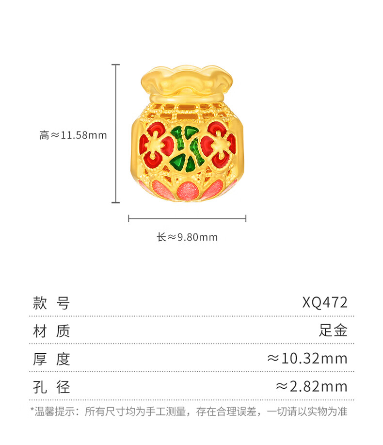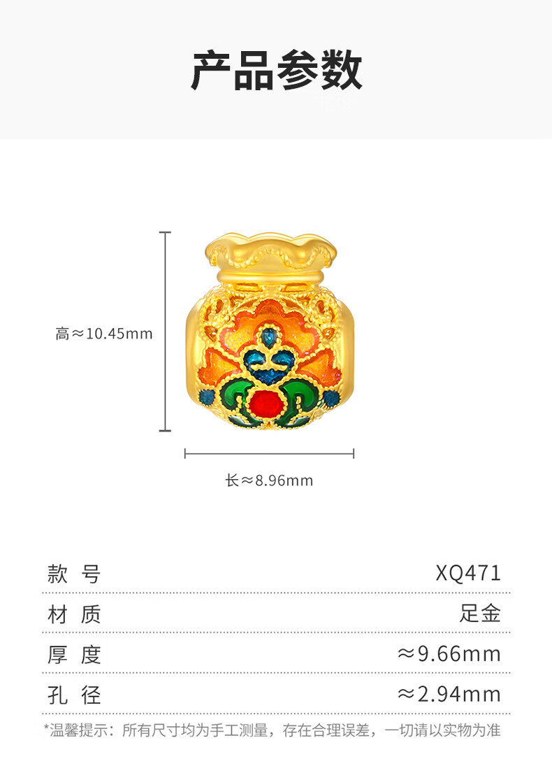 谢瑞麟(TSL)新年礼物花丝福禄黄金5D硬金福袋转运珠不含绳XQ471-XQ473 XQ471