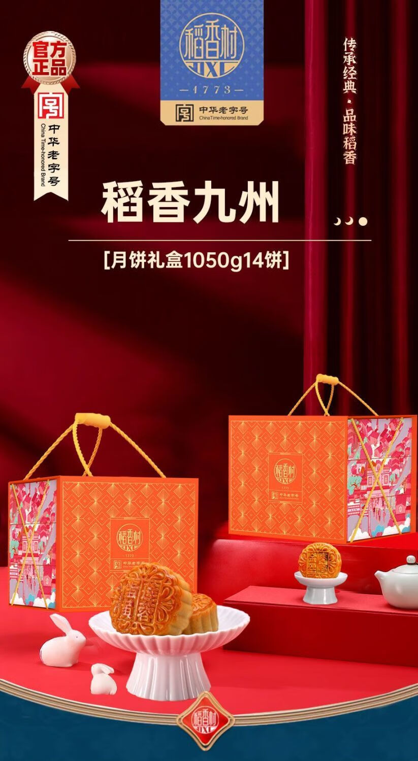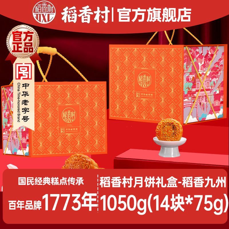 北京稻香村【2.3万人收藏】稻香村月饼礼盒稻香九州1050克糕点礼盒蛋黄莲蓉 【高端礼箱十四饼】稻香九州1050