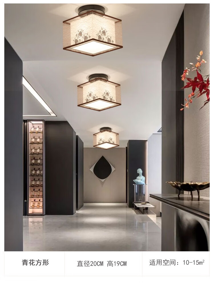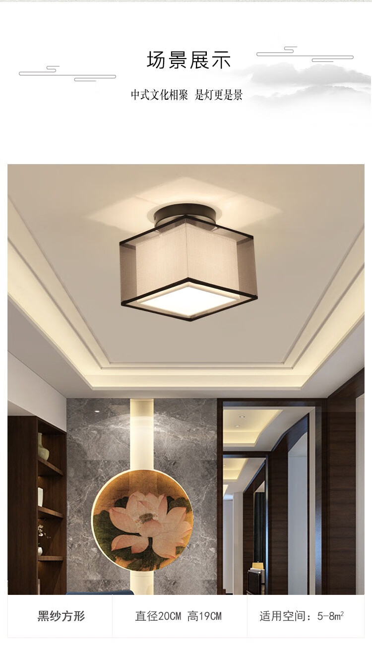 无瑕过道走廊玄关灯简约现代中国风阳台灯卧室小吸顶灯新中式灯具 黑纱圆形+赠送LED光源