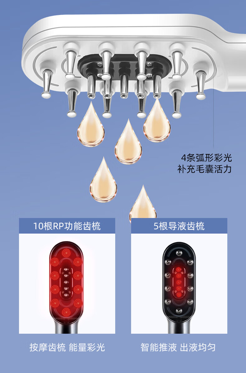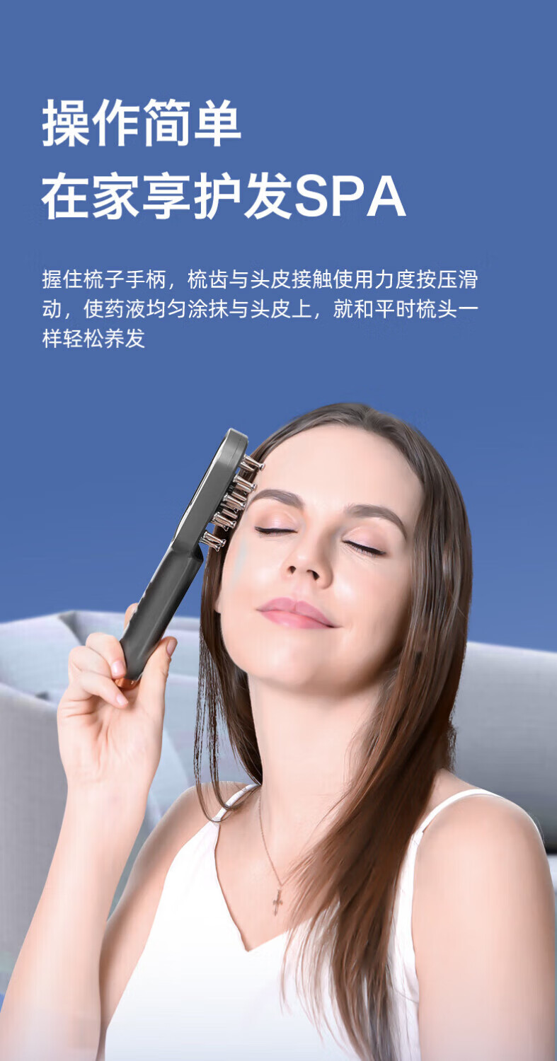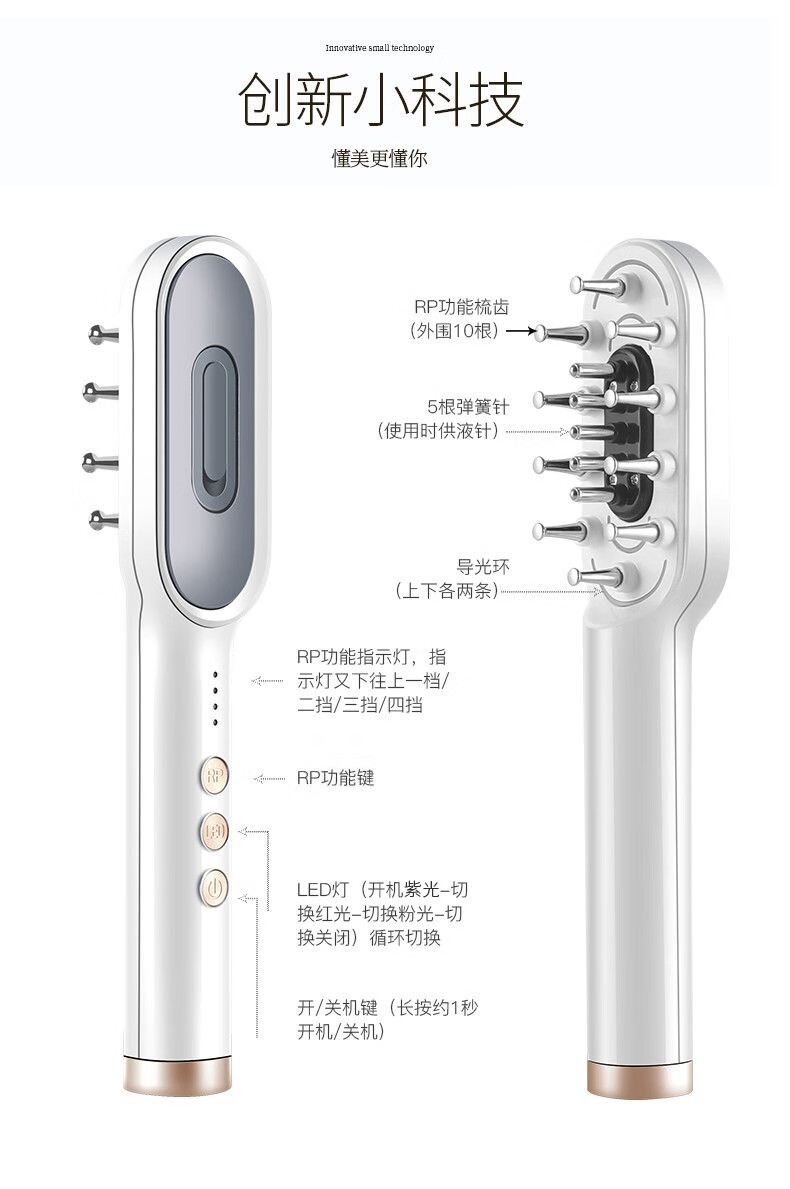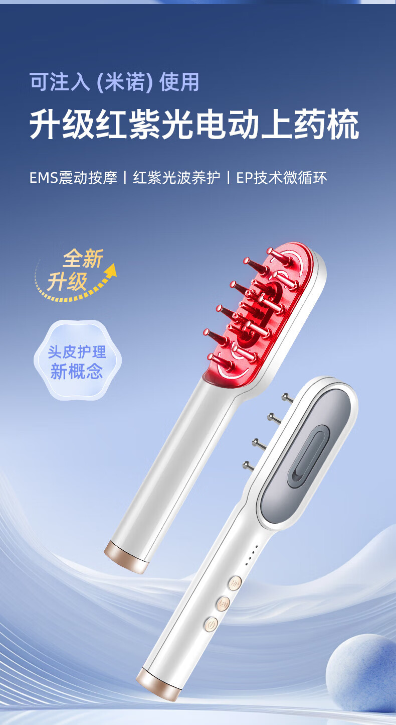 金稻米诺地尔上药器红光健发梳电动导液梳头皮上药器育发液精油导入仪器头发护理头部按摩梳养发护发 深空灰【EMS微电流+RP+EP+LED]+生发液