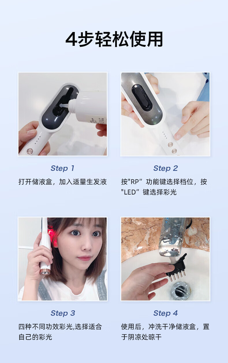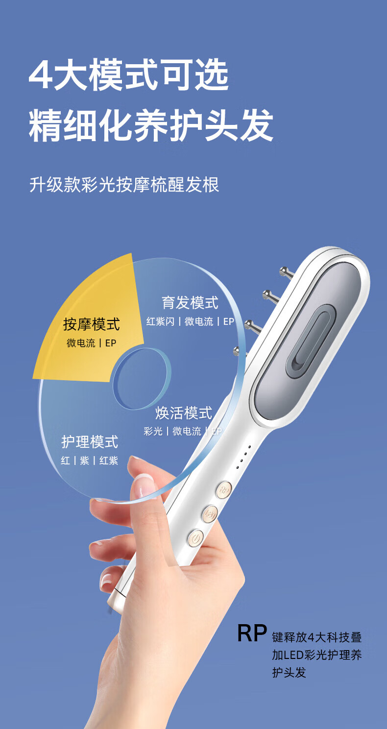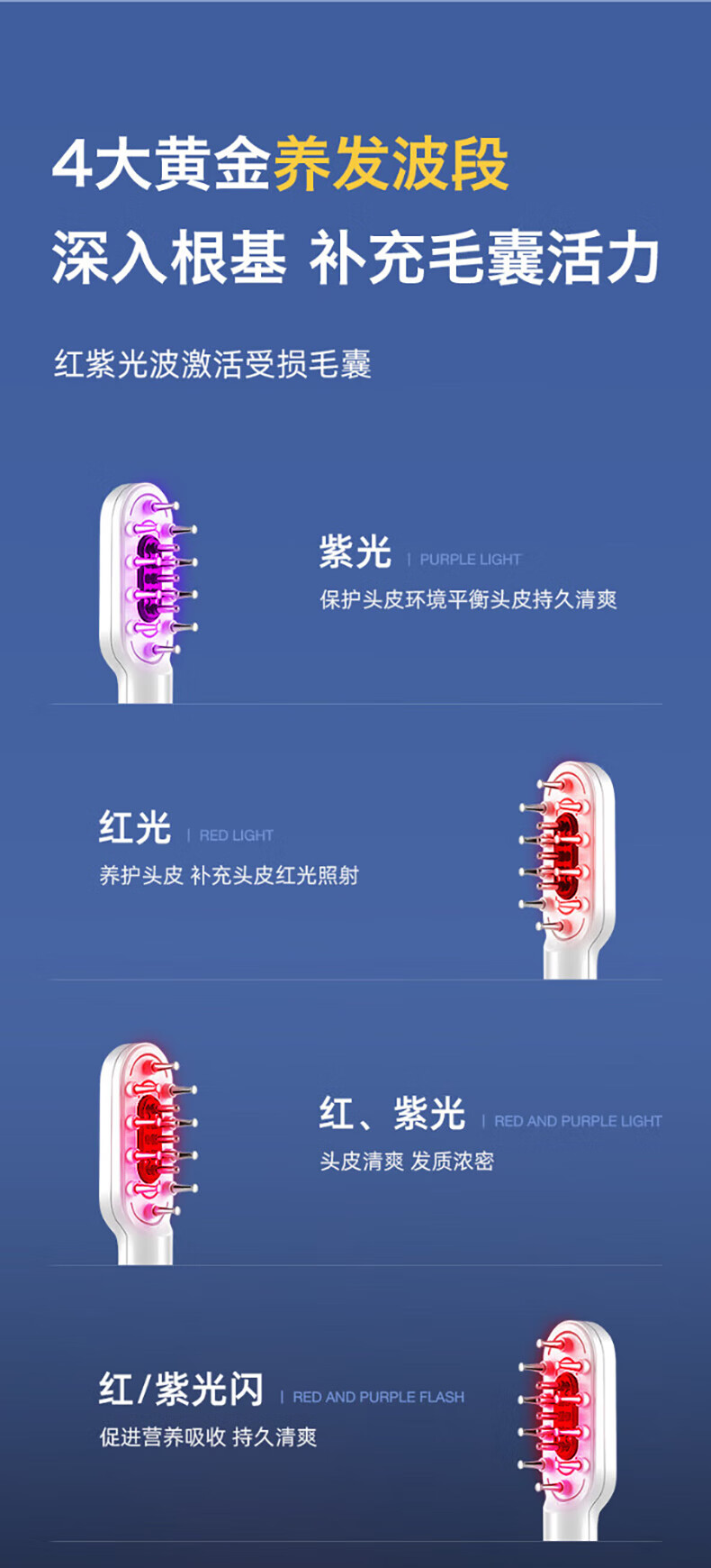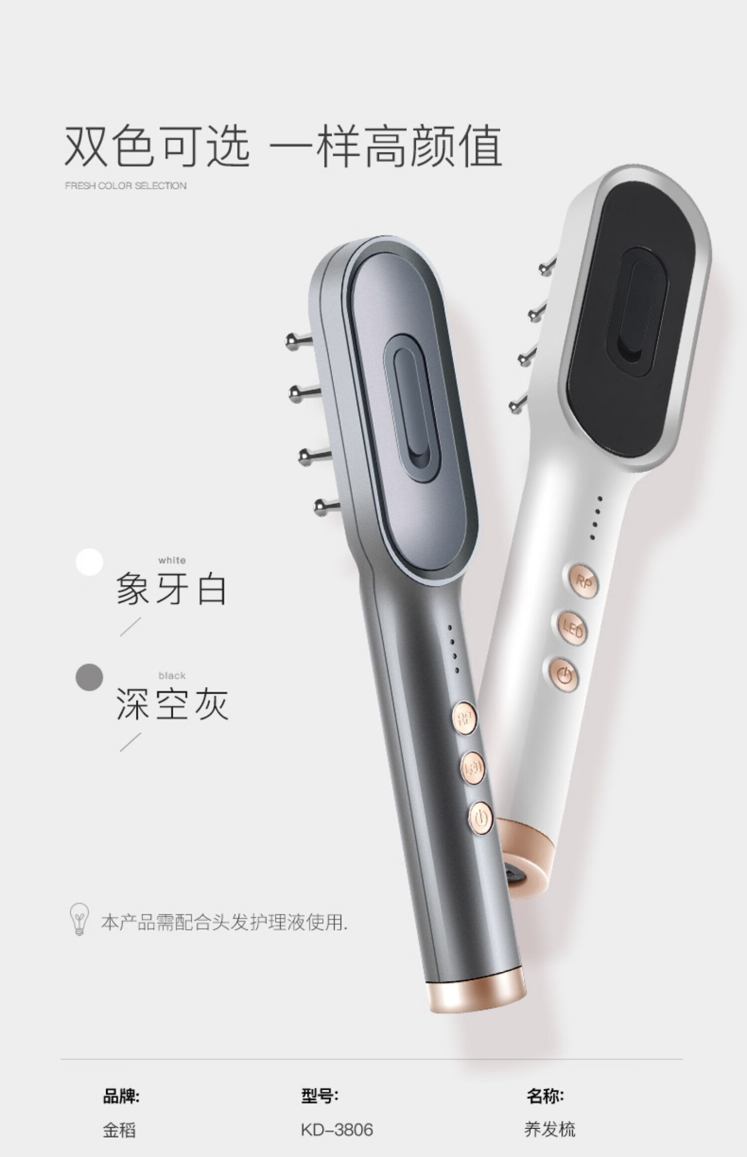 金稻米诺地尔上药器红光健发梳电动导液梳头皮上药器育发液精油导入仪器头发护理头部按摩梳养发护发 深空灰【EMS微电流+RP+EP+LED]+生发液