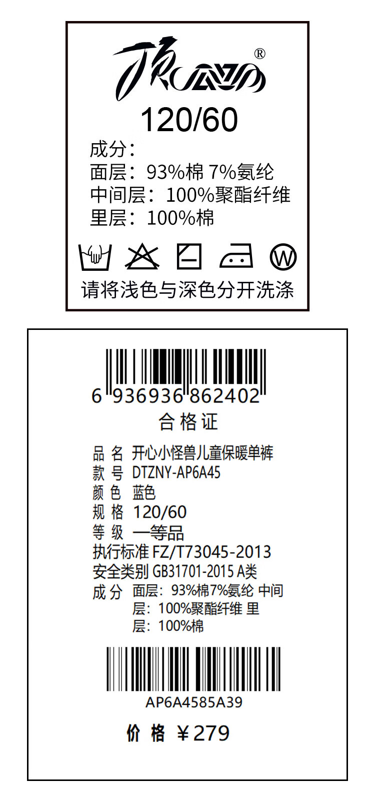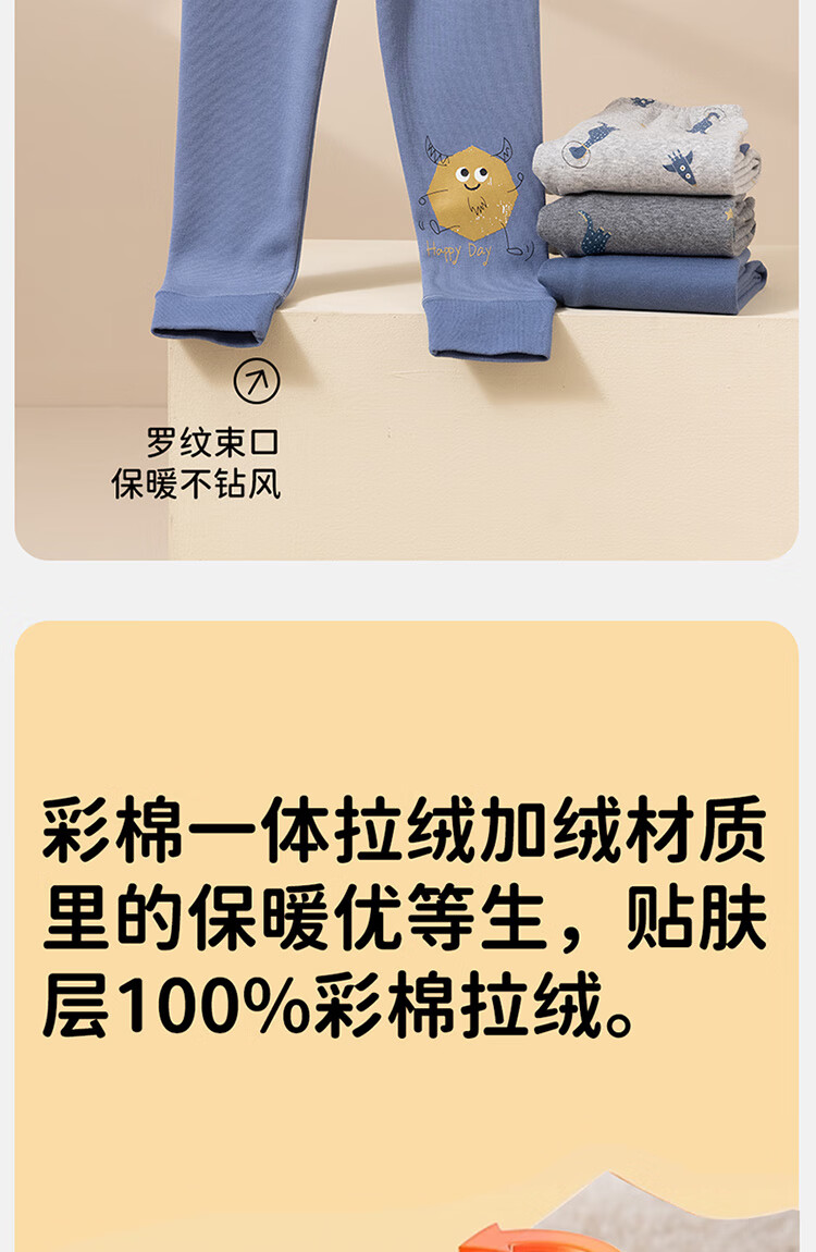 顶瓜瓜【内里全彩棉加绒】男童裤子男童长裤保暖裤中大童打底衬裤秋裤 蓝色 150