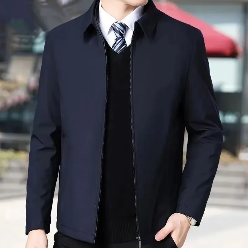 【夹克棉服】高档男士商务休闲棉服夹克保暖经典翻领棉衣 藏青色(纽扣款) M 【建议 85-105斤】