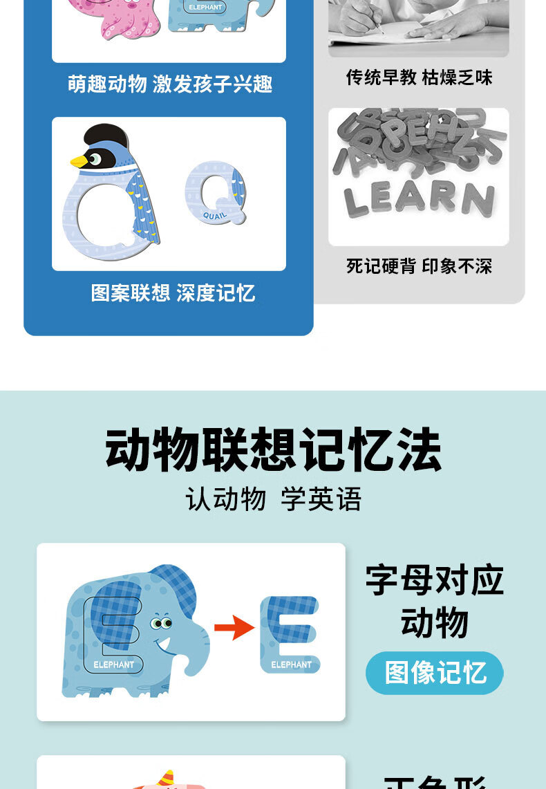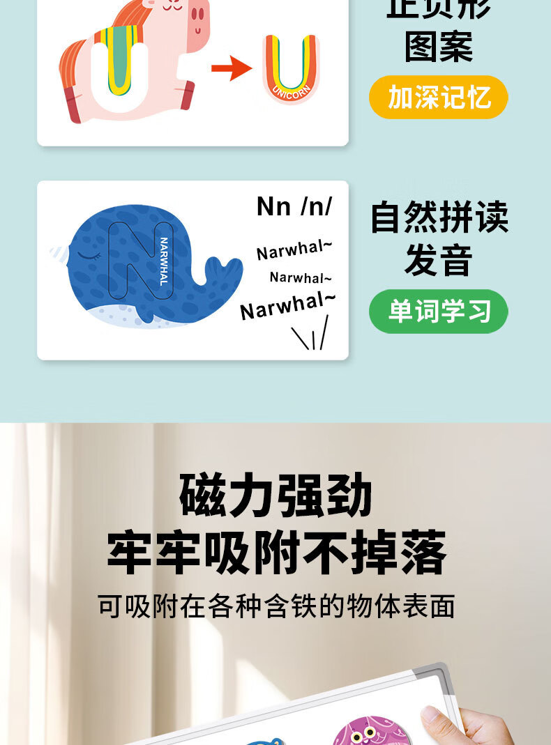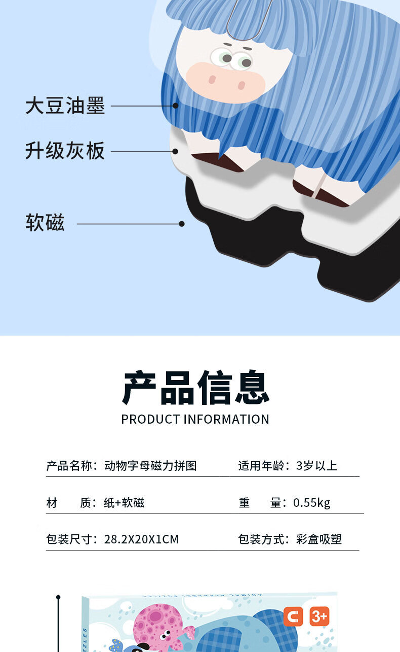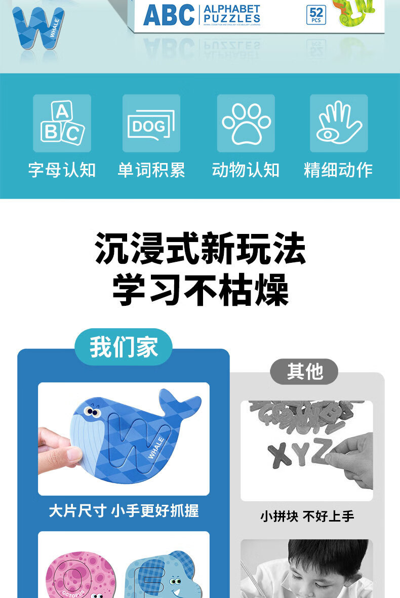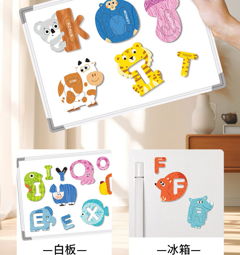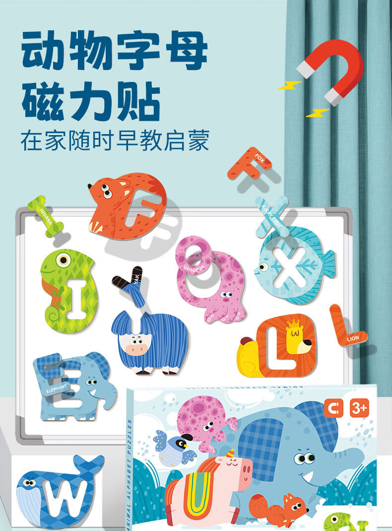 新品ABC字母磁力贴拼图幼儿童早教认知配对动物磁性拼图益智玩具 小号海洋磁力贴