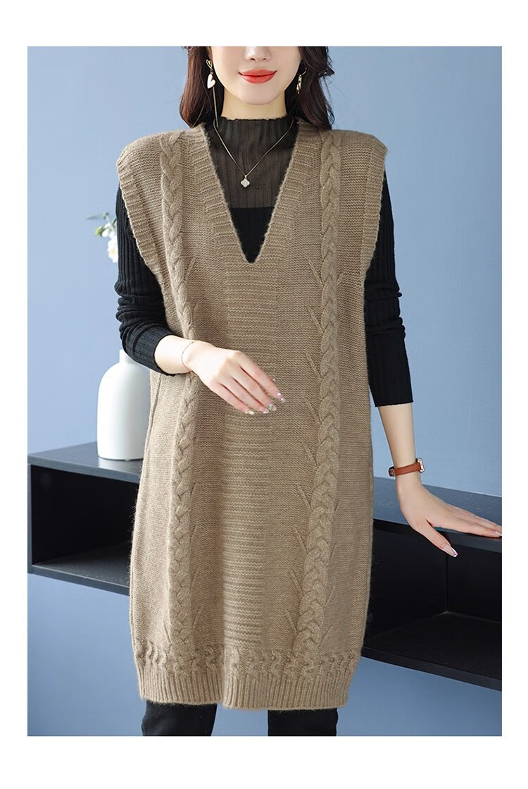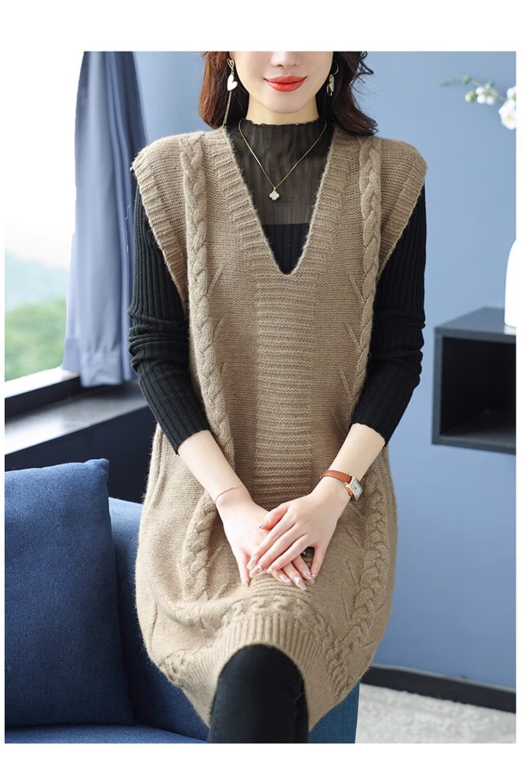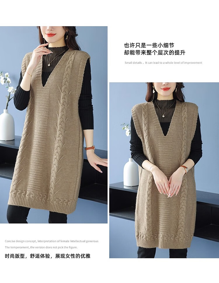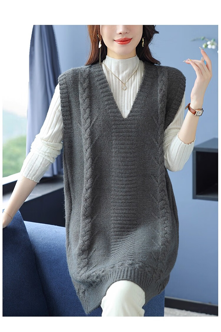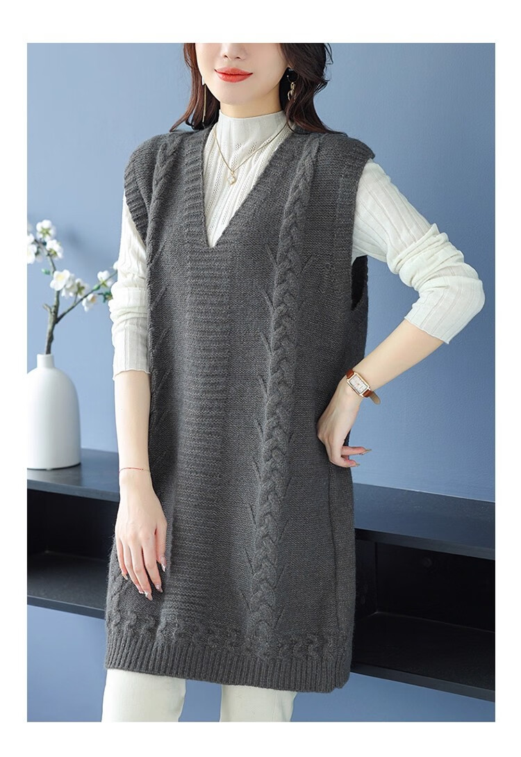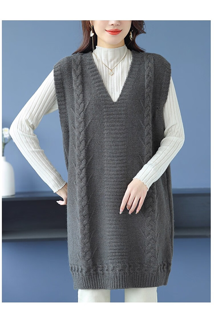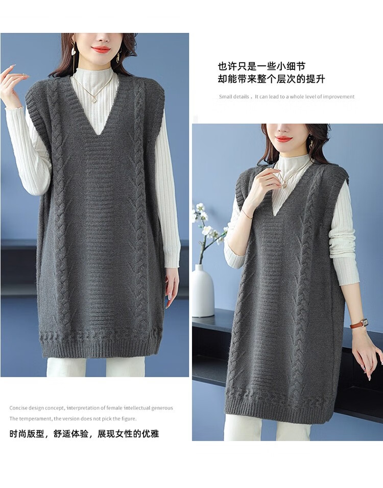 啄木鸟(TUCANO)高档中长款马甲背心裙子女V领羊.绒针织连衣裙春秋冬装无袖毛衣裙 灰色 优质原版 M