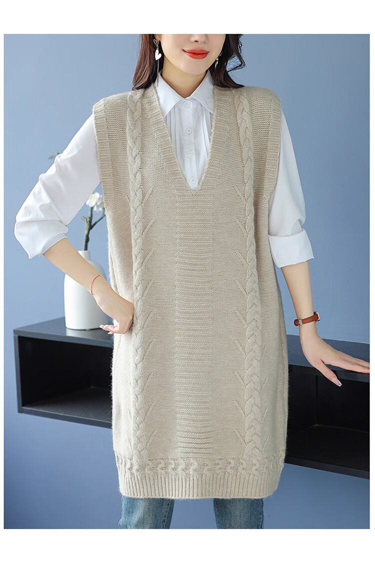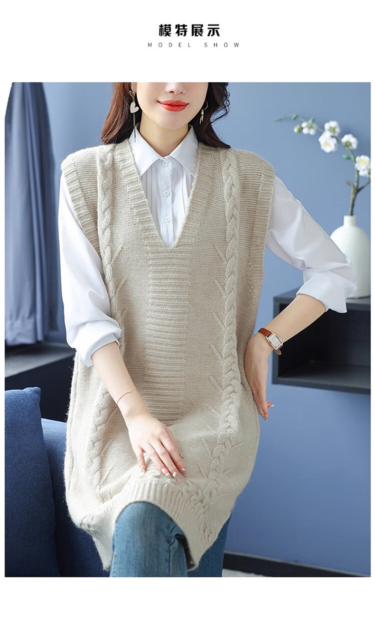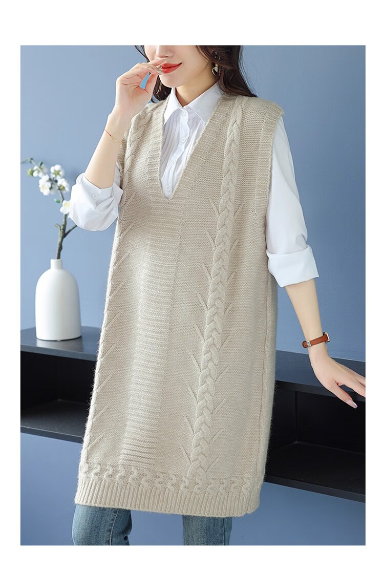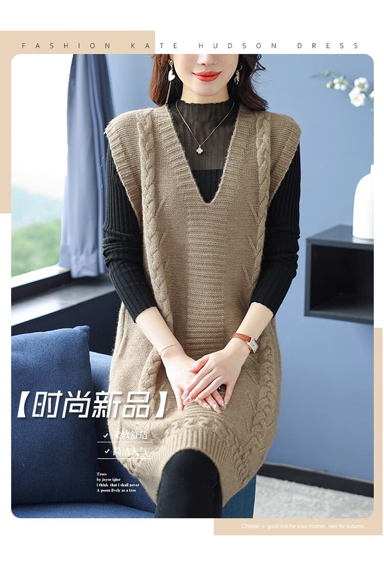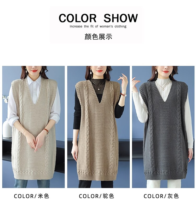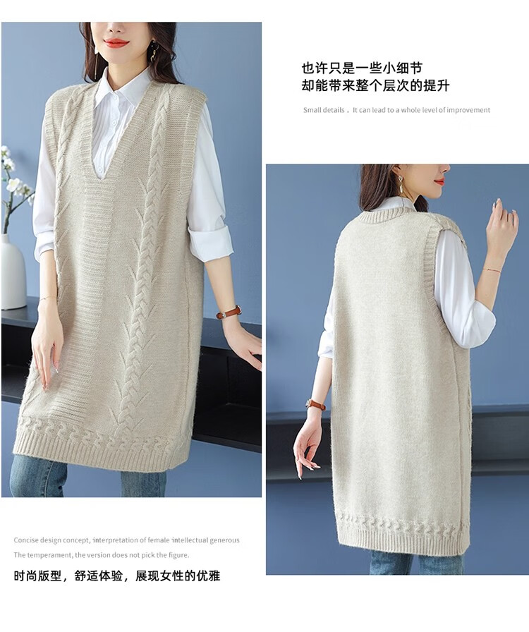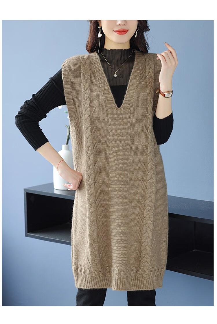 啄木鸟(TUCANO)高档中长款马甲背心裙子女V领羊.绒针织连衣裙春秋冬装无袖毛衣裙 灰色 优质原版 M