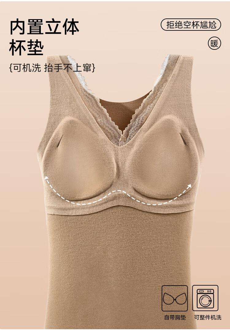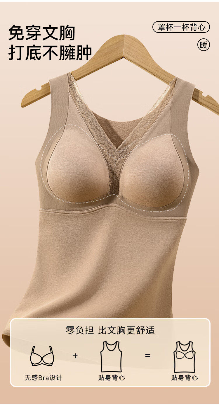 古今(GUJIN)保暖背心女带胸垫一体内搭文胸罩无痕打底外穿秋冬舒适透气内衣女