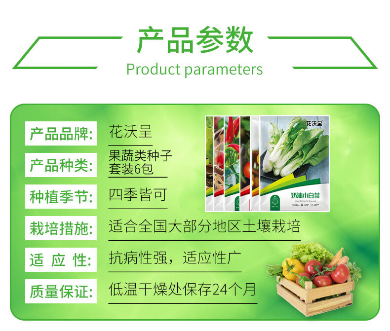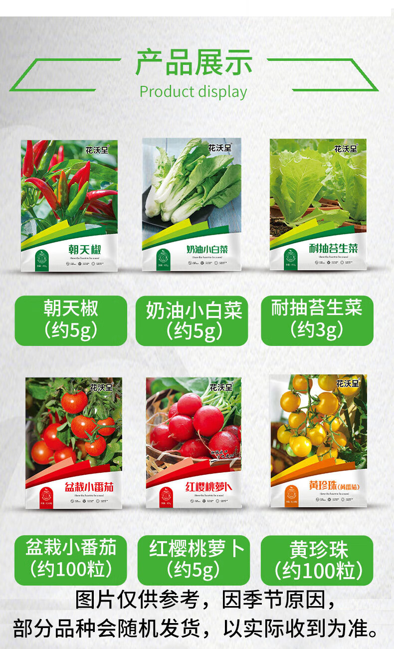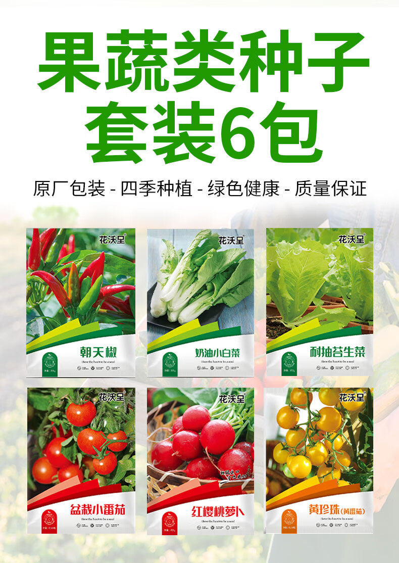 花沃里6款蔬菜种子大全 果蔬类盆栽小番茄西红柿朝天椒小白菜萝卜生菜籽