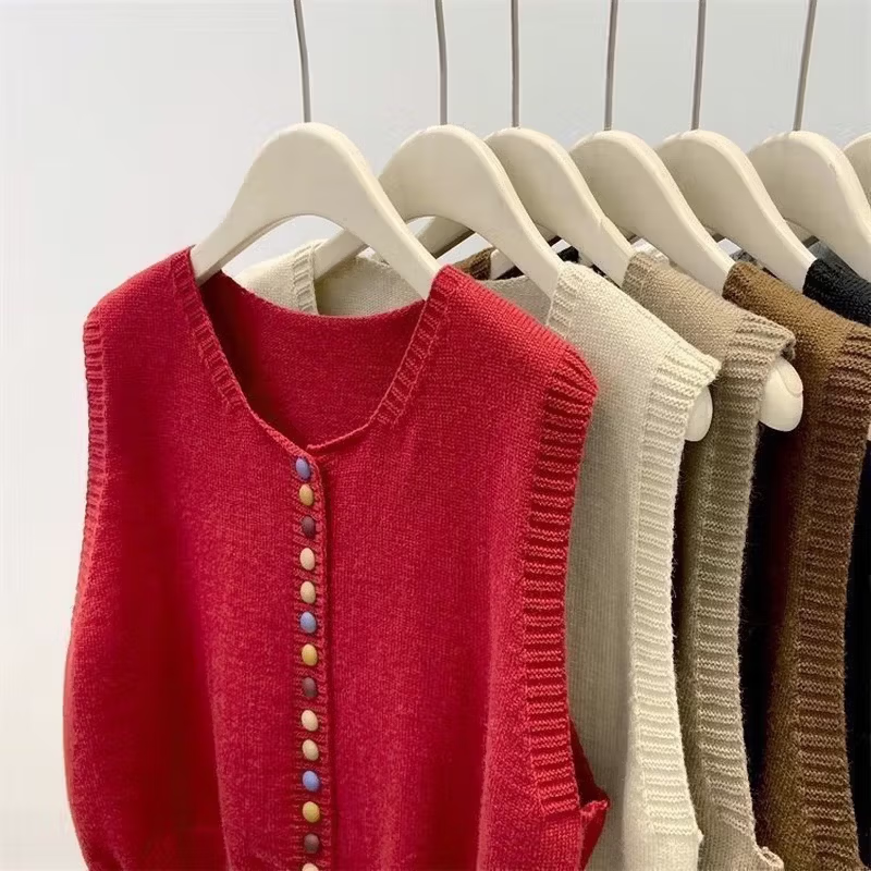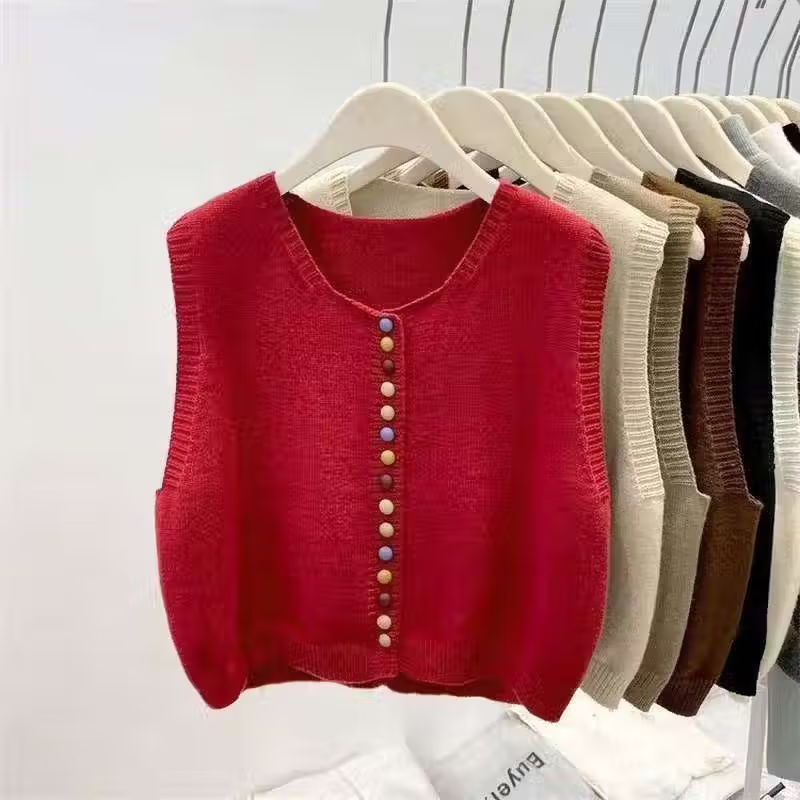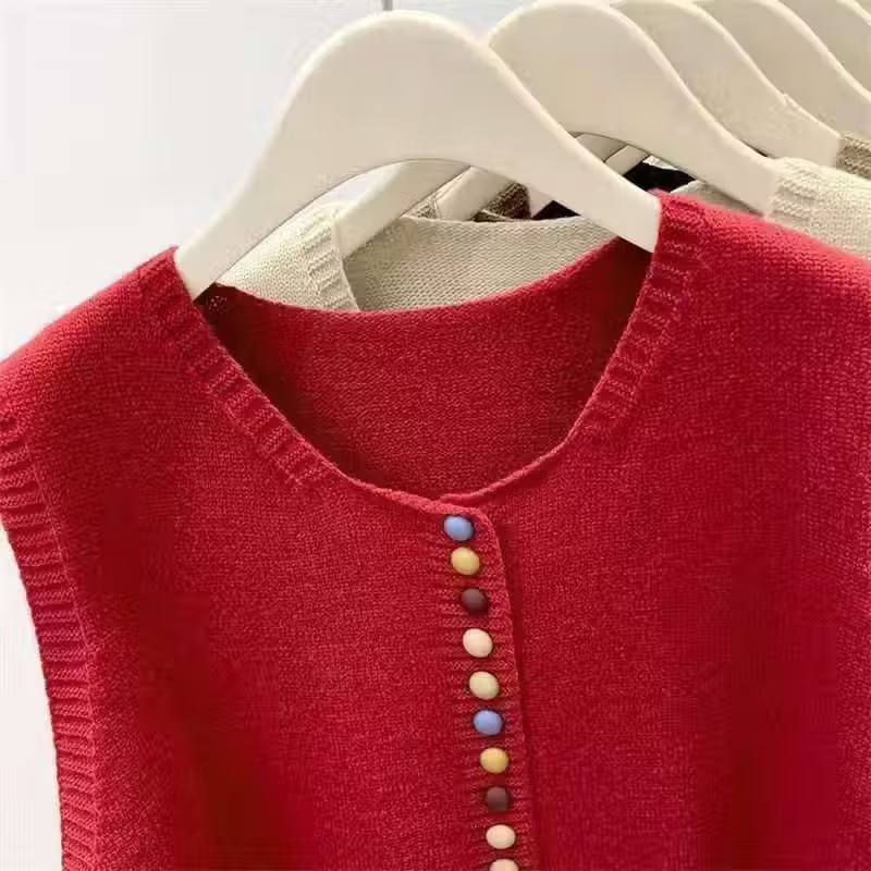 【轻奢品质】洋气彩虹扣针织圆领套头马甲时髦叠穿毛衣背心坎肩 灰色 均码 建议80-140斤