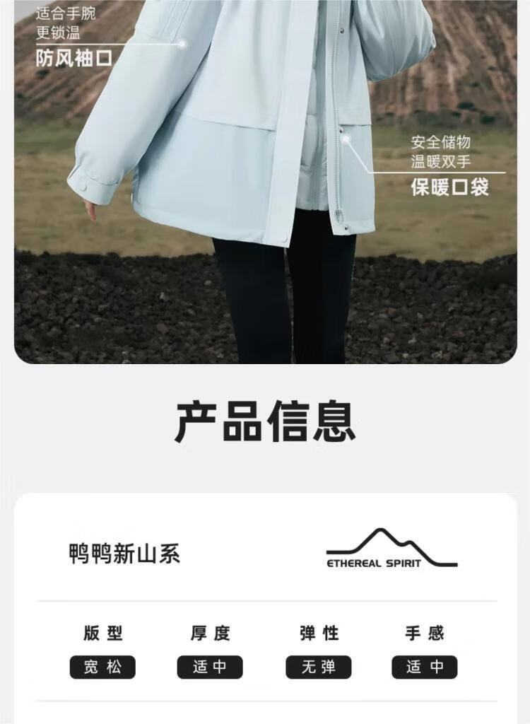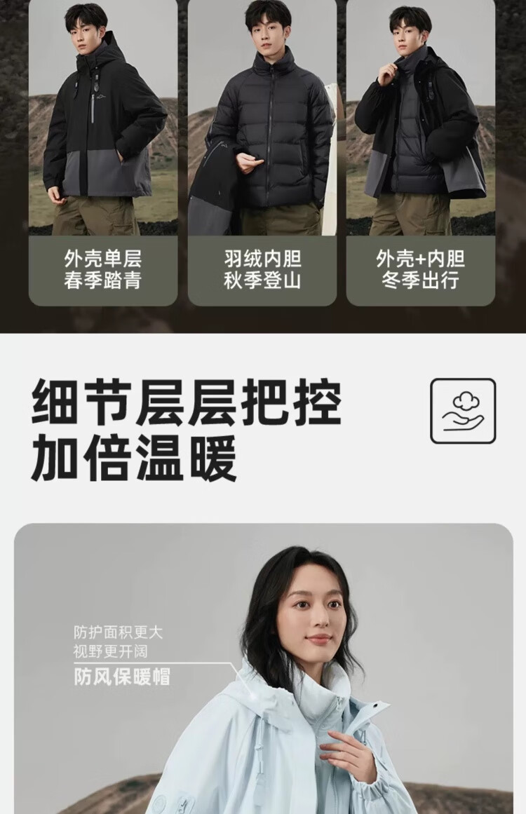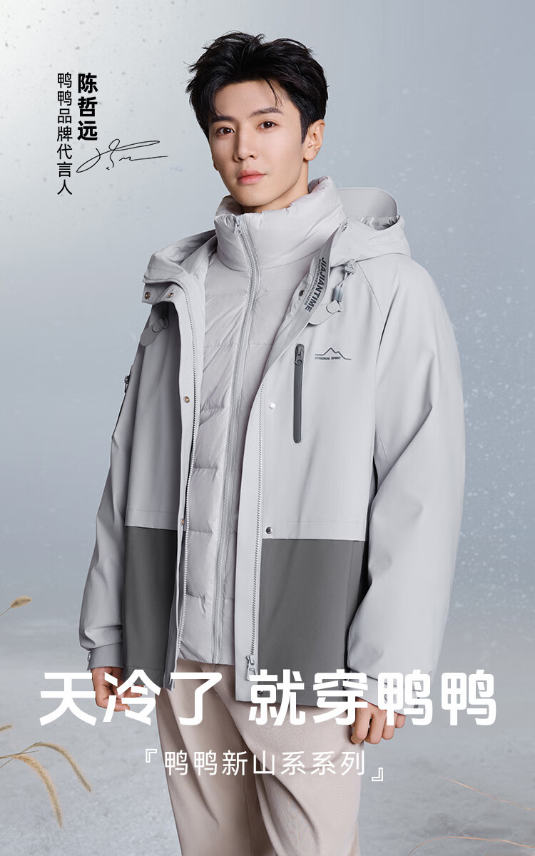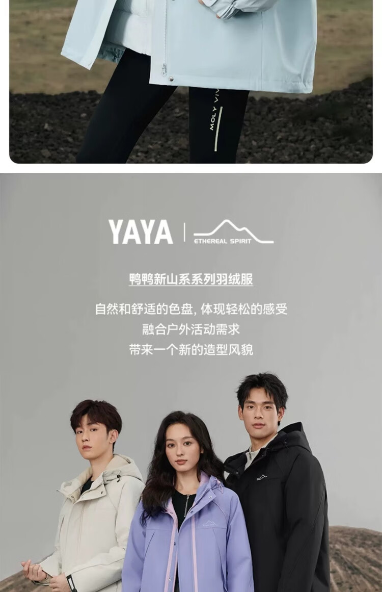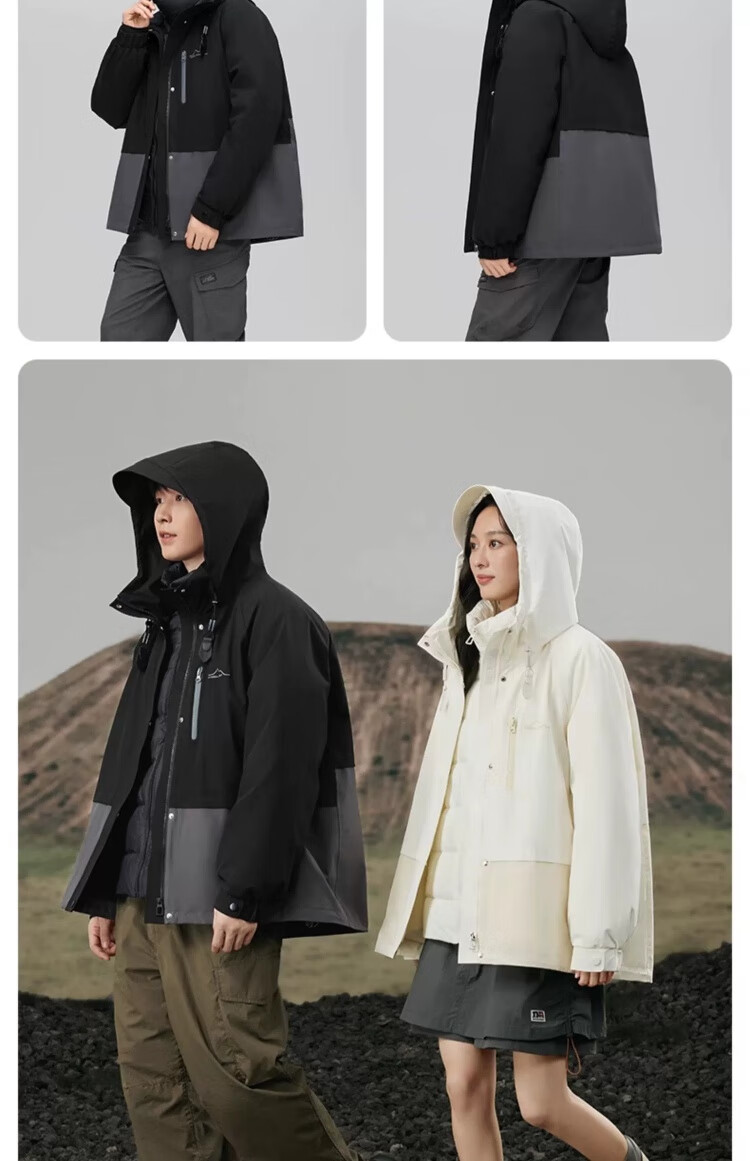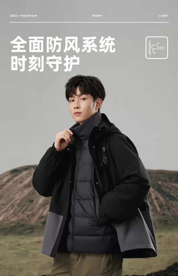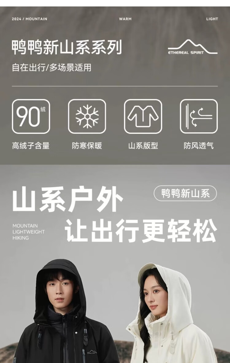 鸭鸭时尚羽绒服陈哲远同款新山系系列男女情侣可脱卸内胆户外短款 黑色 S 90-110斤