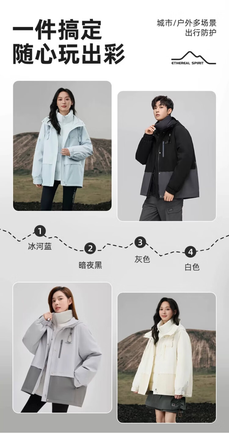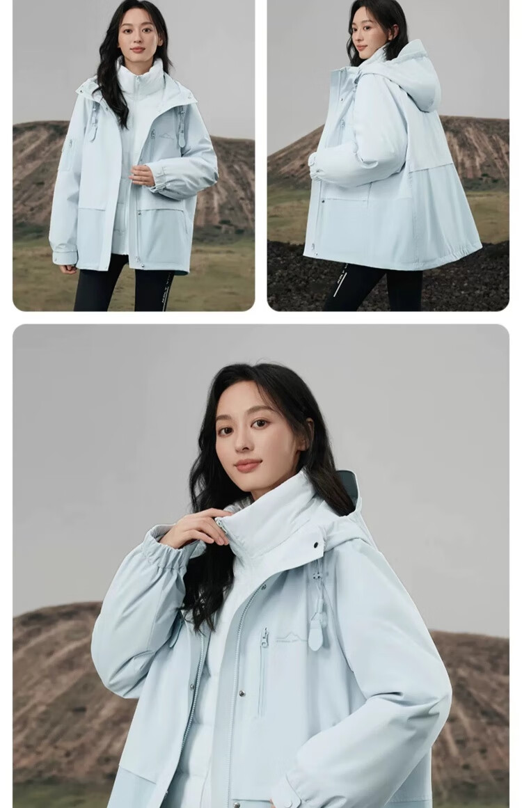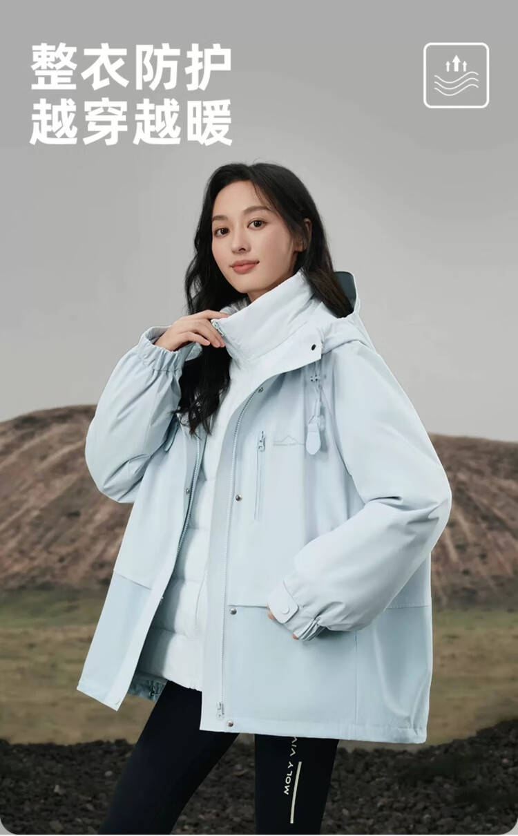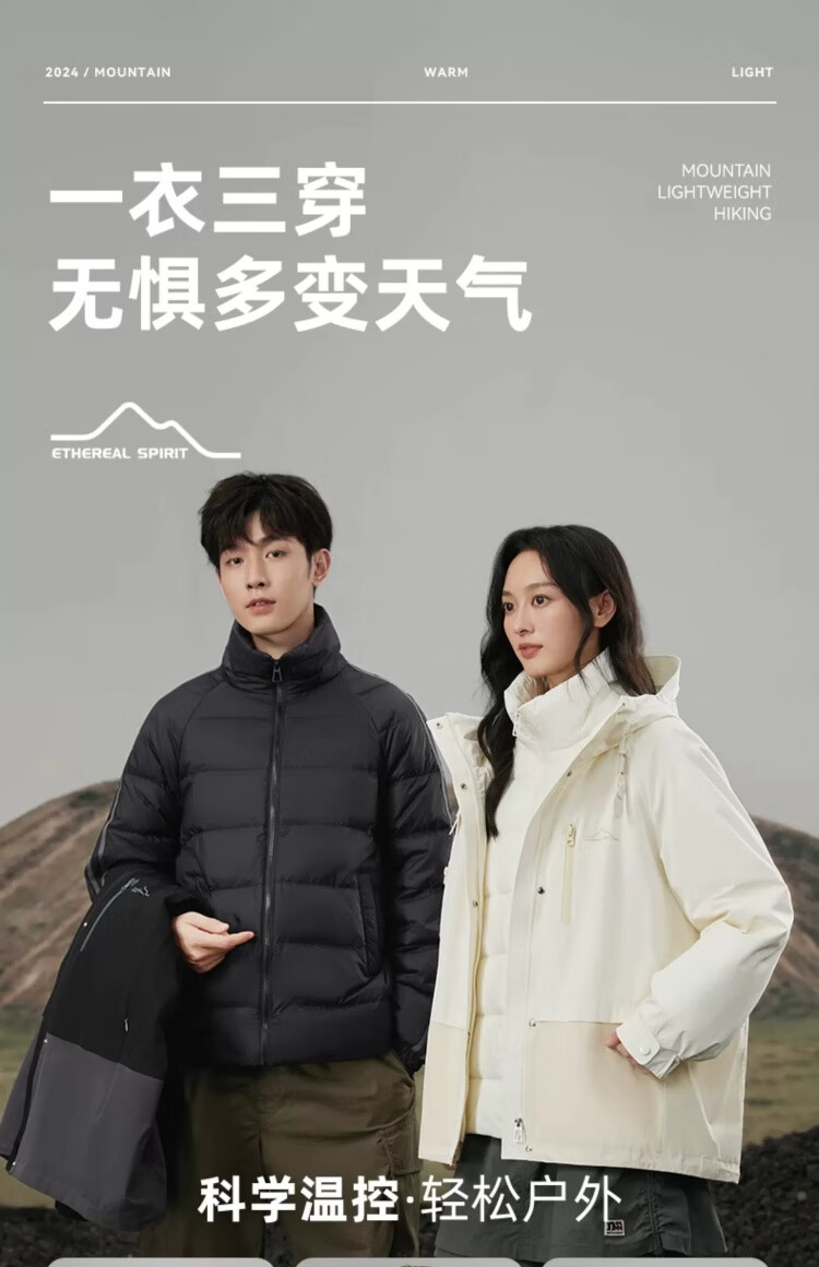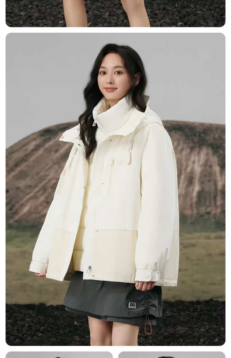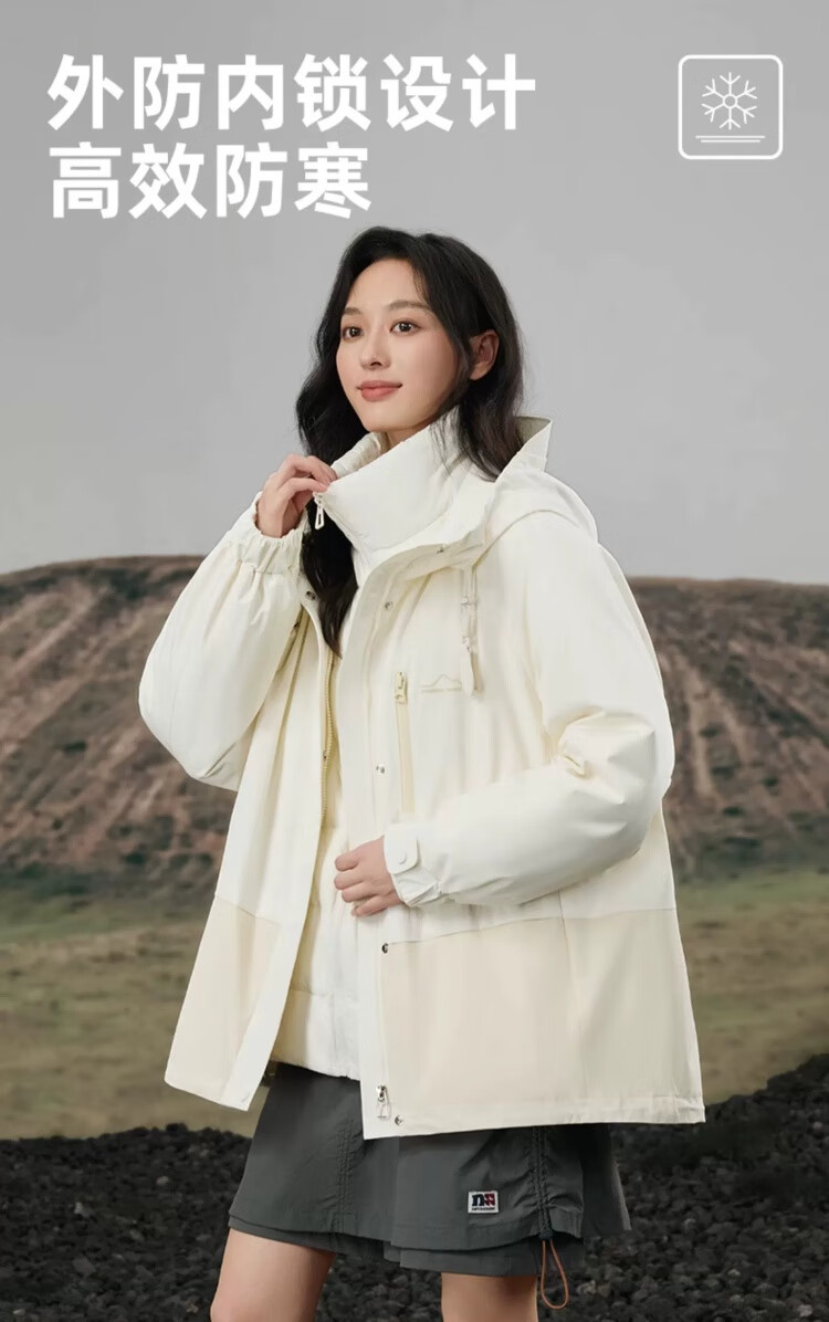 鸭鸭时尚羽绒服陈哲远同款新山系系列男女情侣可脱卸内胆户外短款 黑色 S 90-110斤