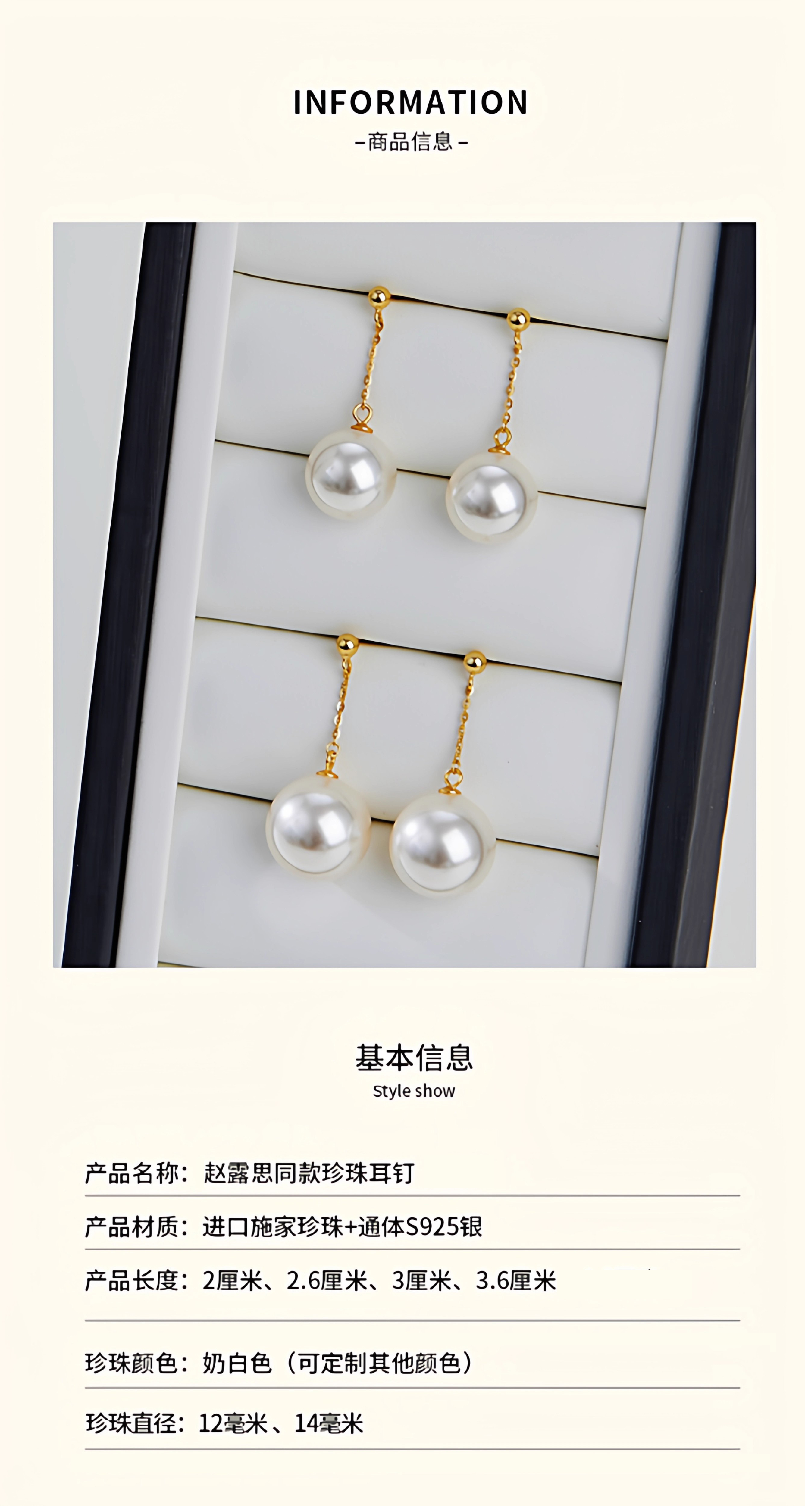 珍珠耳环女高级感气质耳饰2025新款爆款时尚耳钉通体S925纯银耳坠 银色流苏珍珠耳坠12mm(长约3cm)
