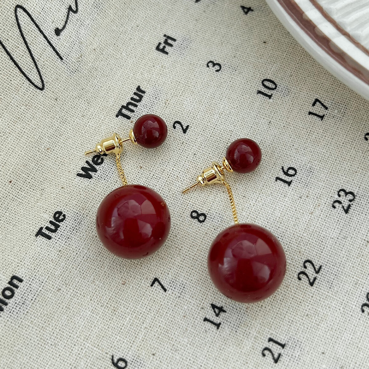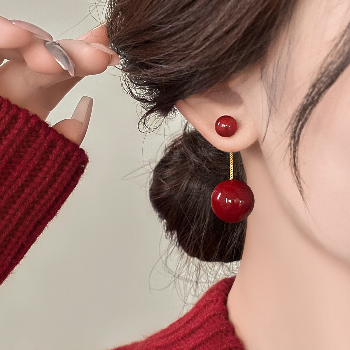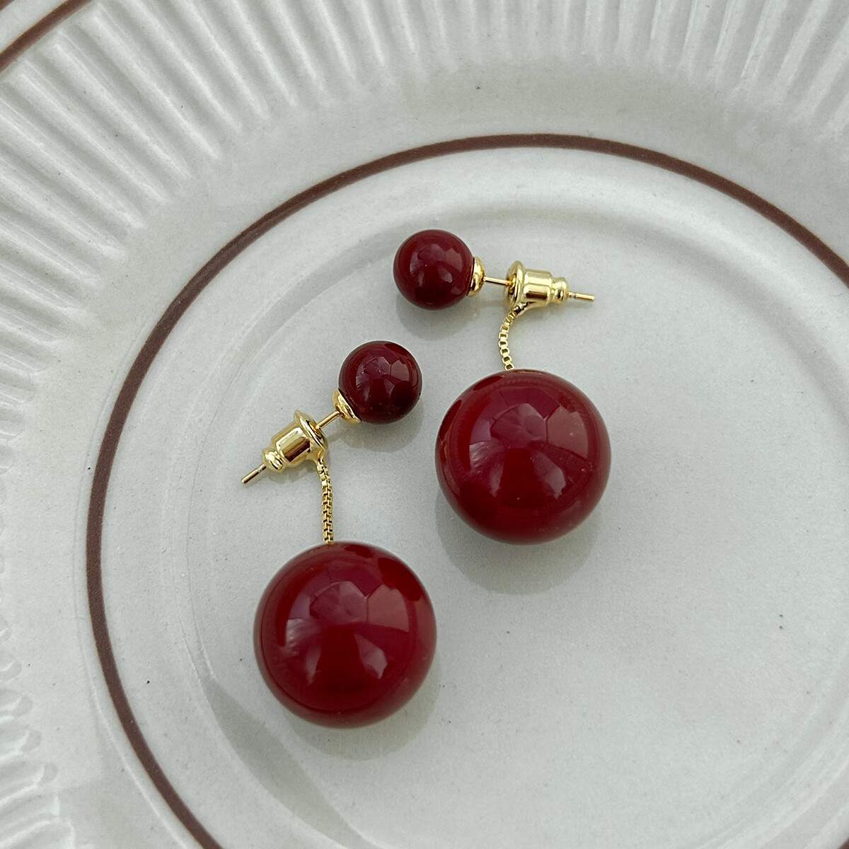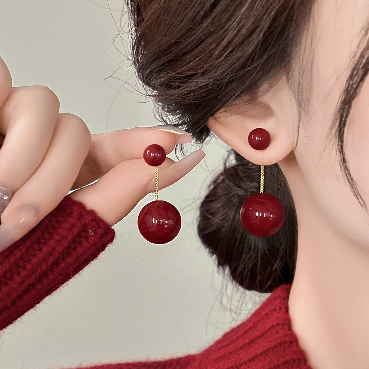 伊灿酒红色流苏仿珍珠耳钉女显脸新年耳环耳坠2025年新款爆款复古耳饰 流苏红色珍珠耳钉