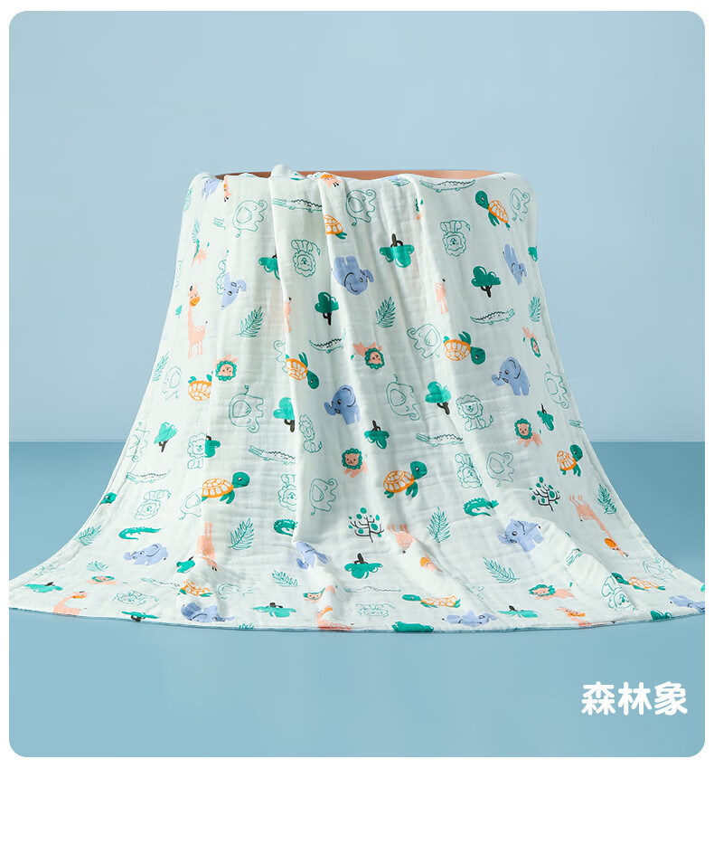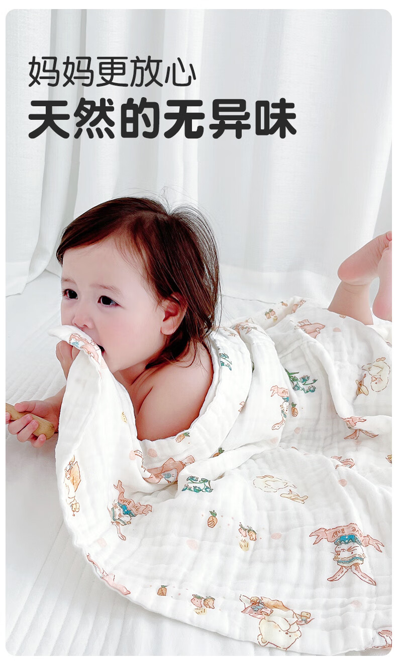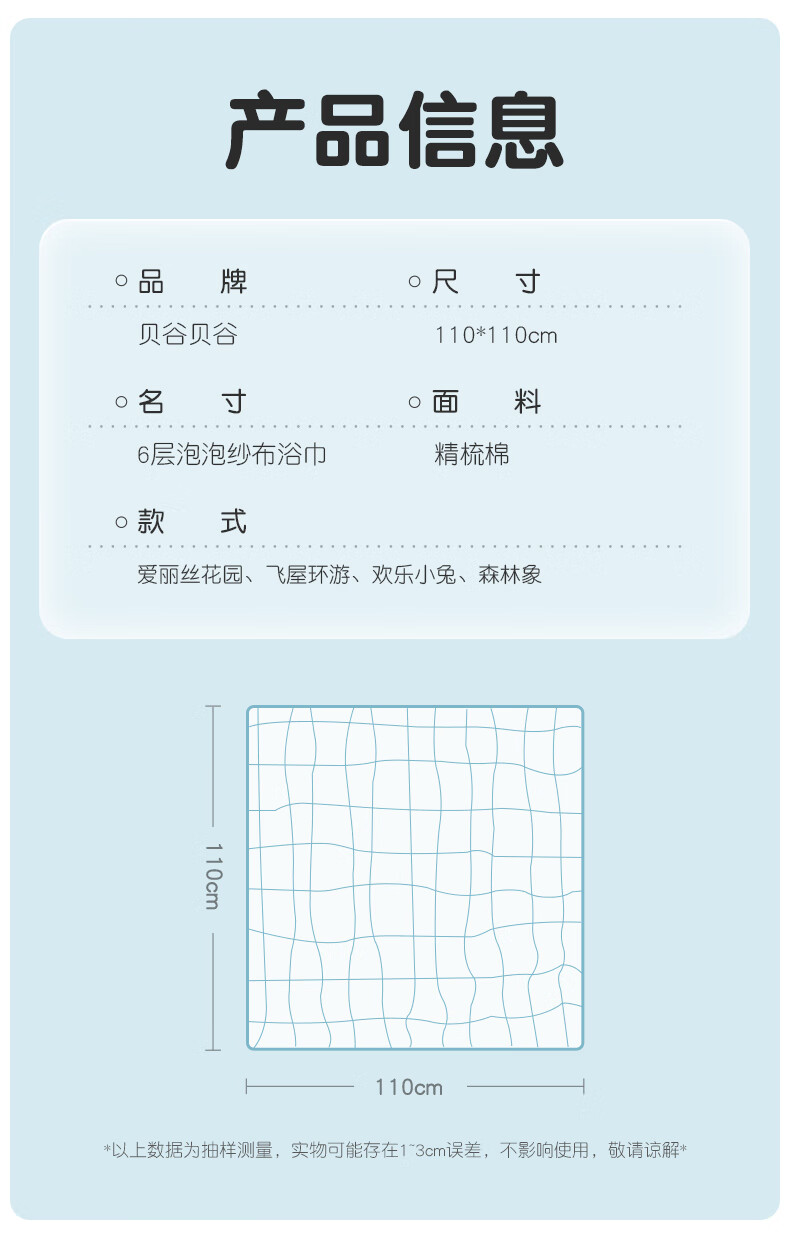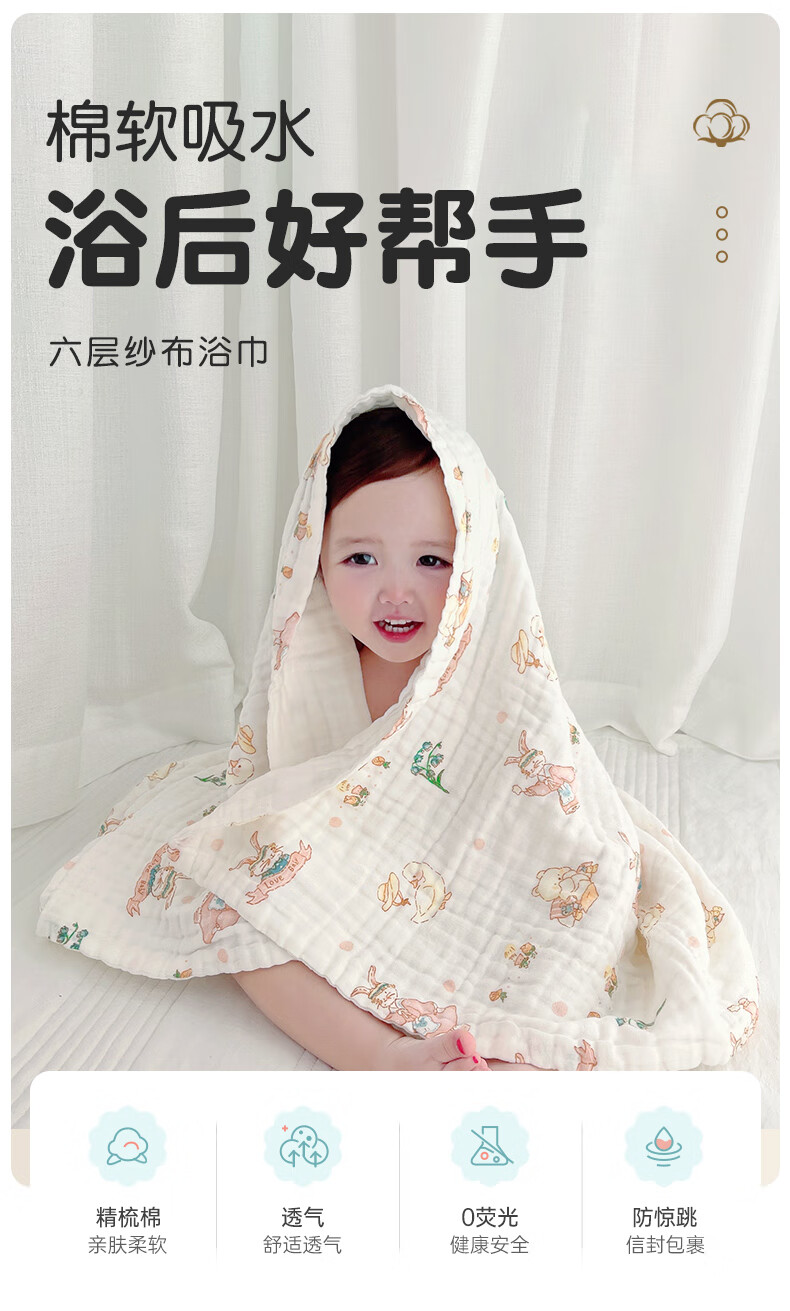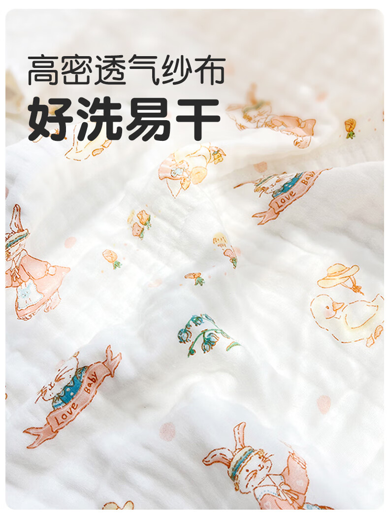 贝谷贝谷儿童浴巾纯棉婴儿浴巾超柔吸水纱布巾宝宝洗澡包巾新生婴儿用品 爱丽丝花园6层纱布浴巾110*110cm