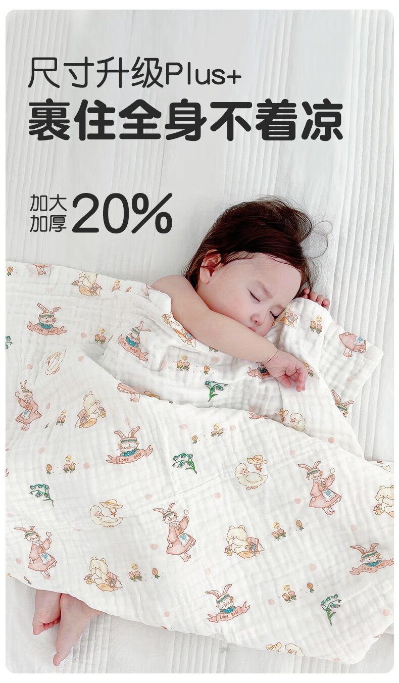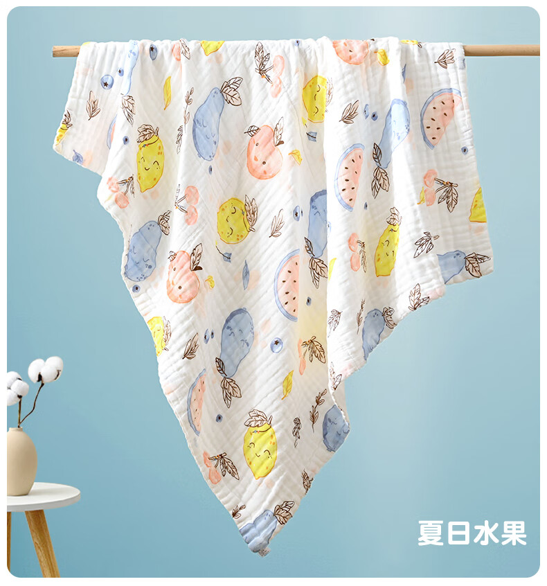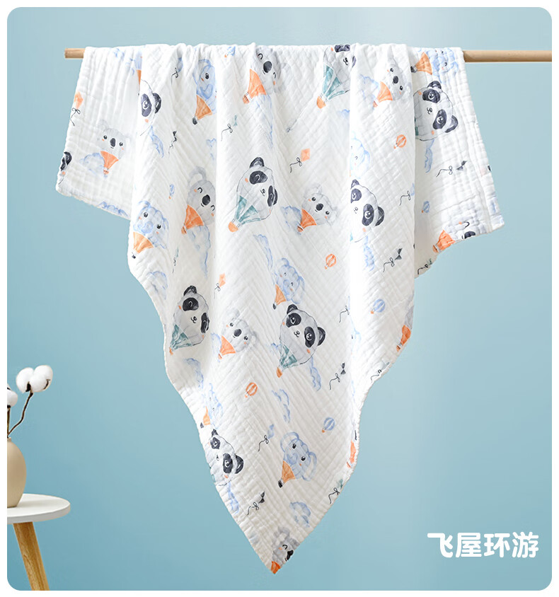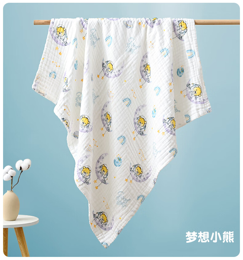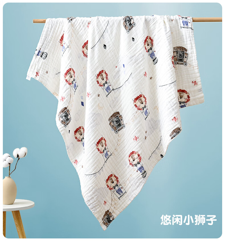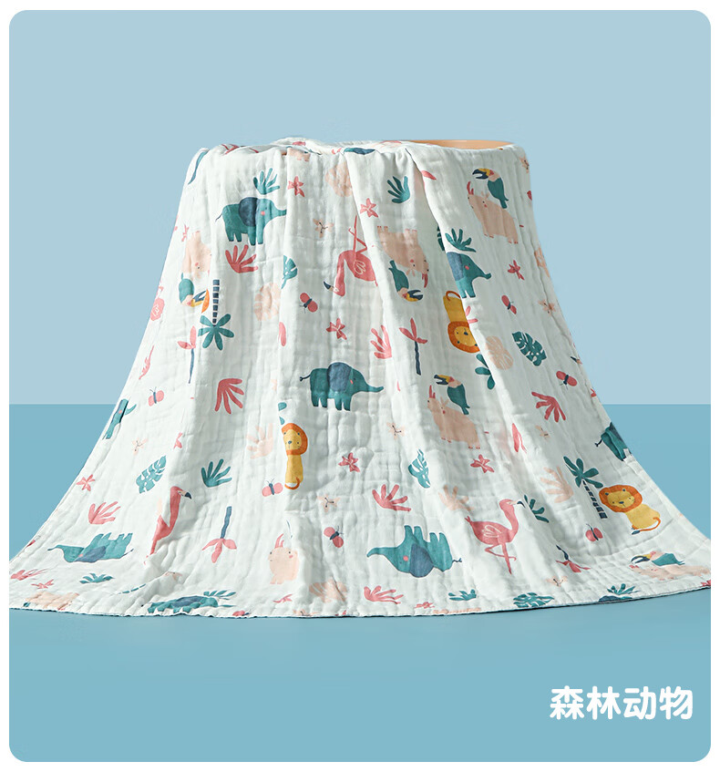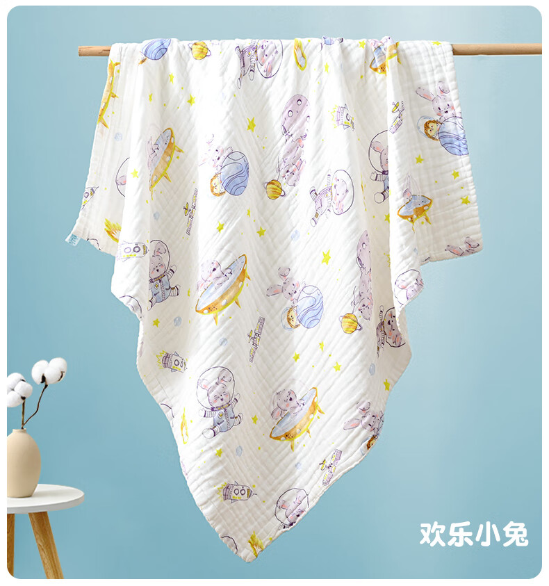 贝谷贝谷儿童浴巾纯棉婴儿浴巾超柔吸水纱布巾宝宝洗澡包巾新生婴儿用品 爱丽丝花园6层纱布浴巾110*110cm