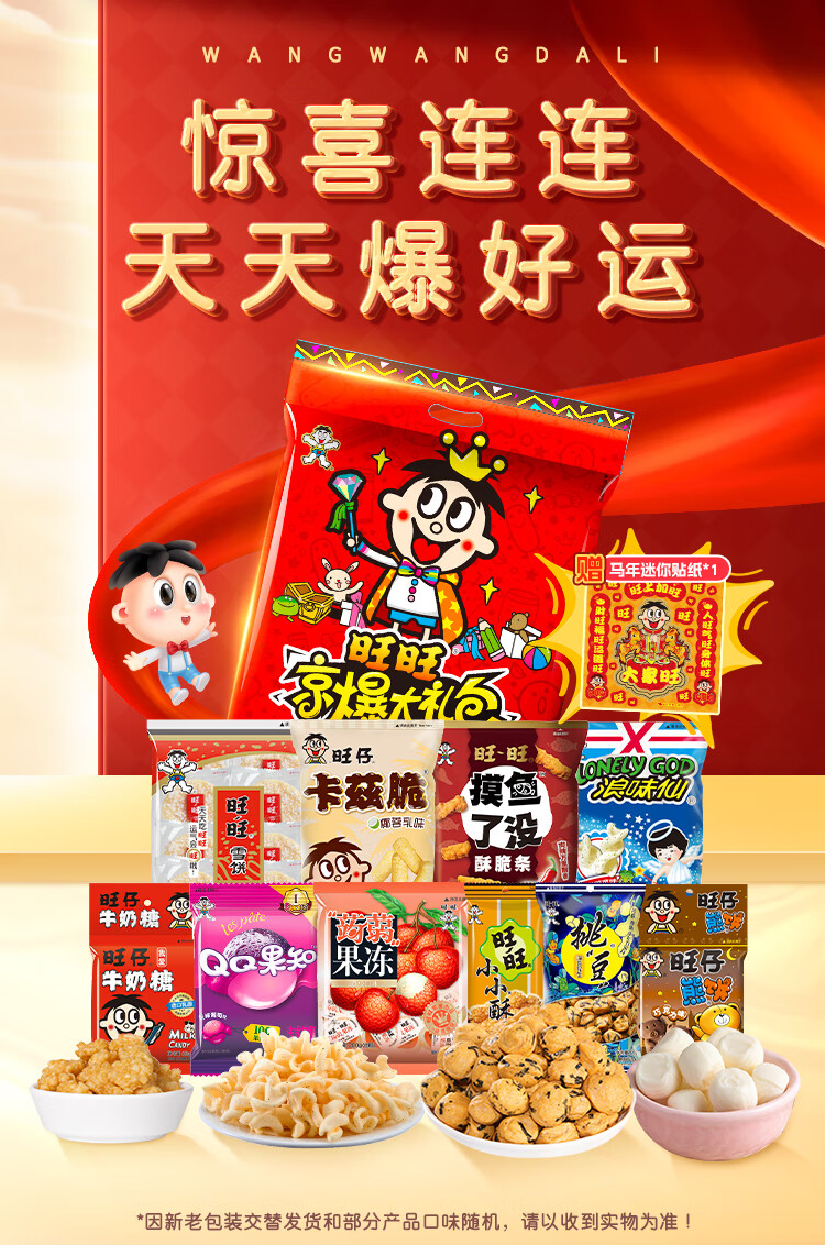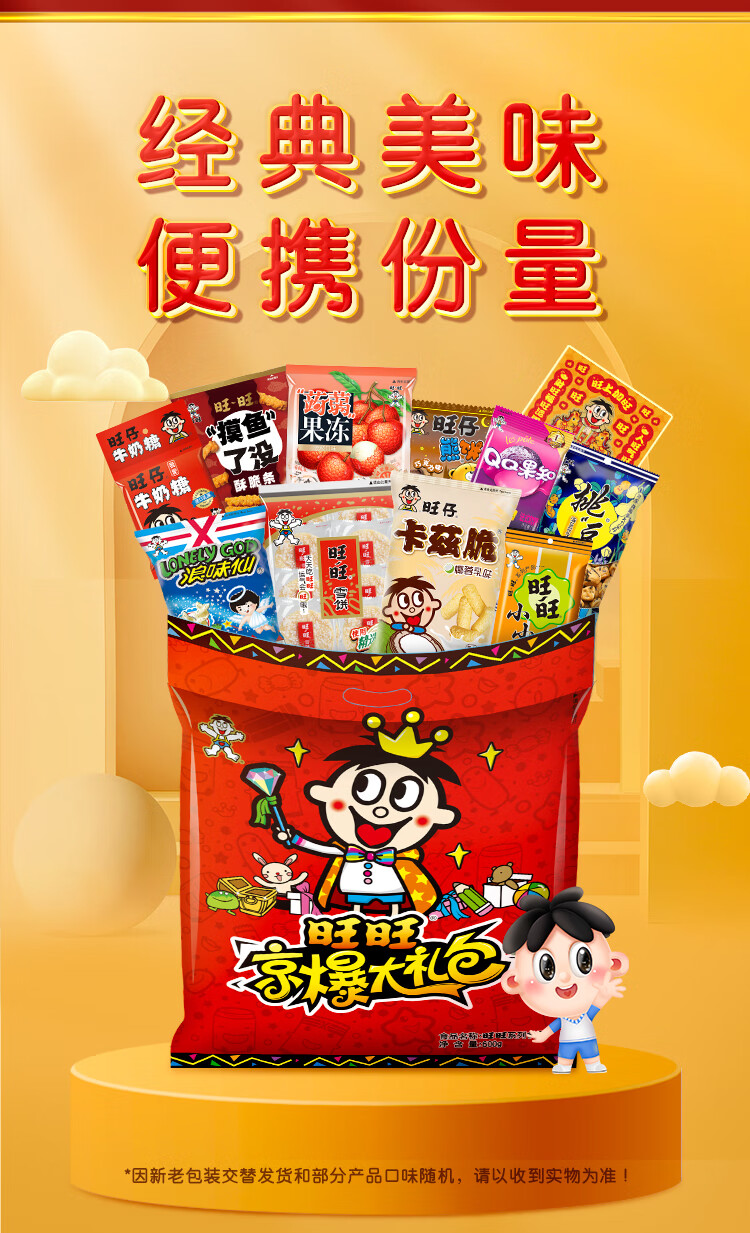 旺旺 零食大礼包 600g 混合袋装 休闲小零食必备 团购送礼 新春贺礼