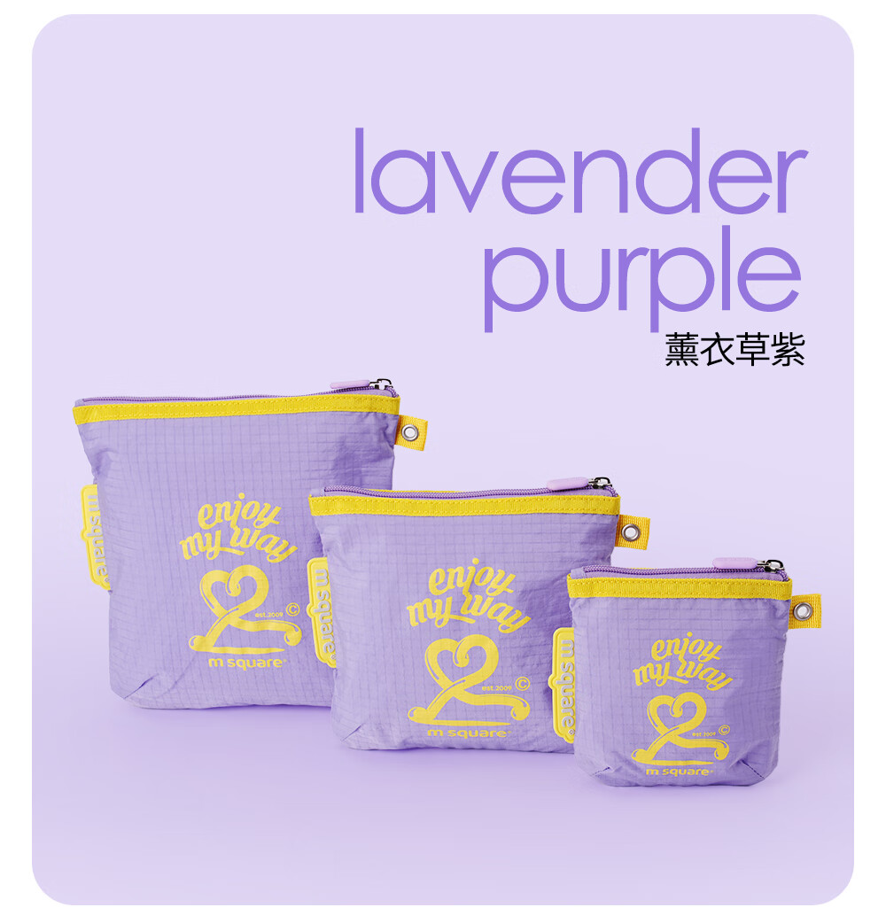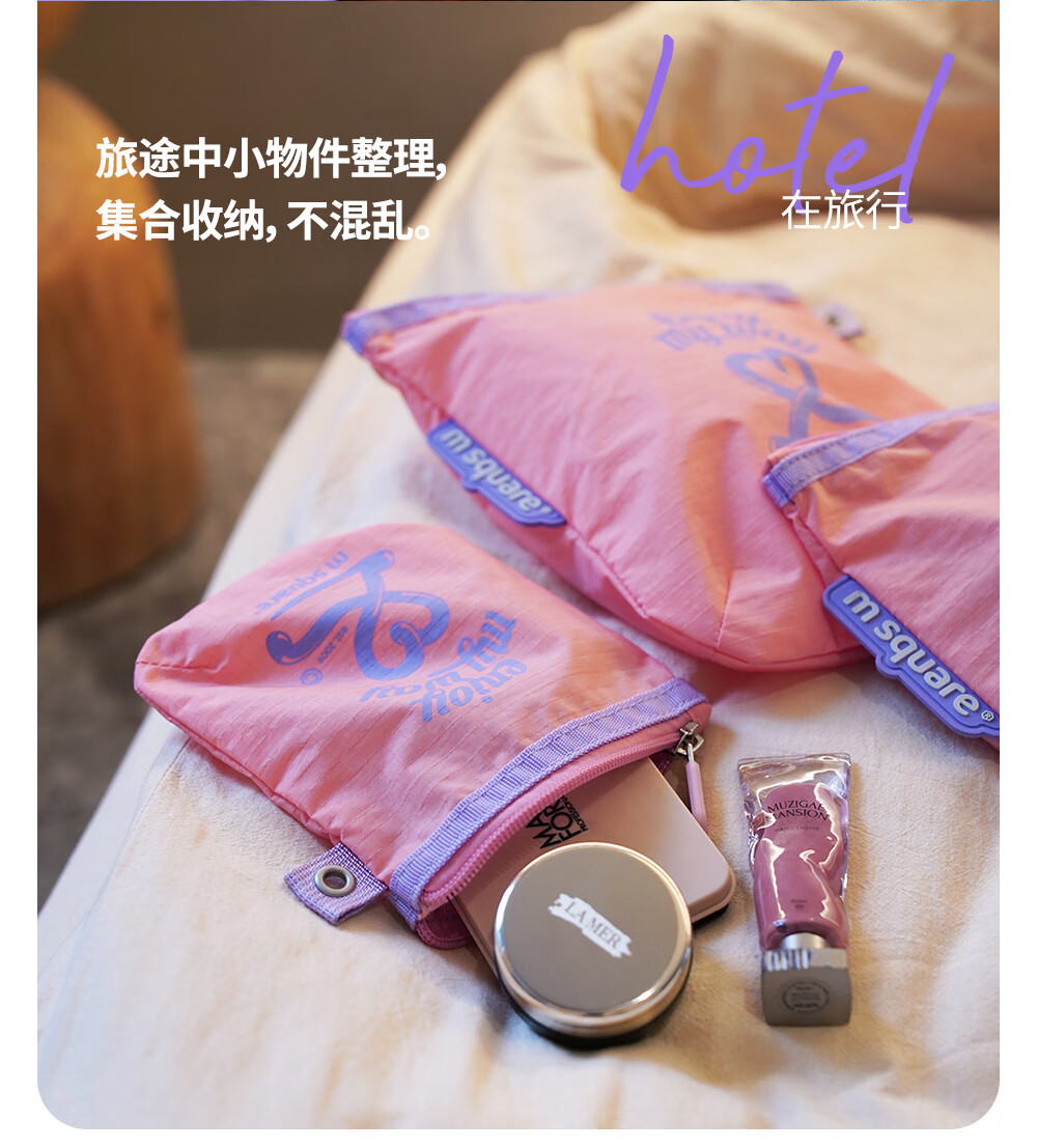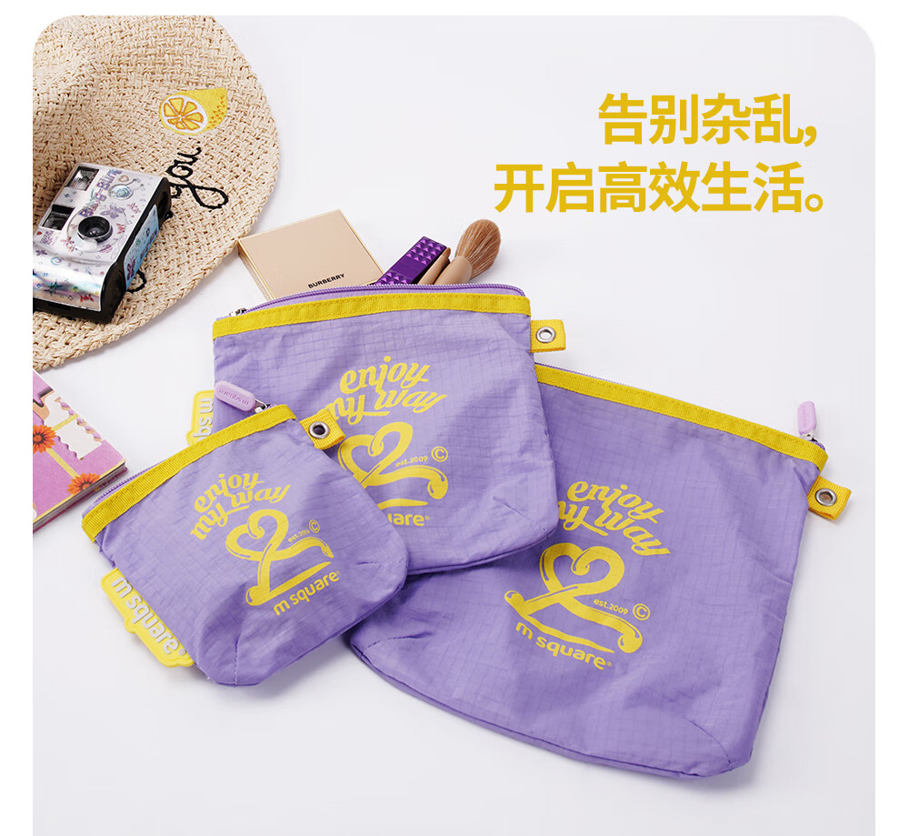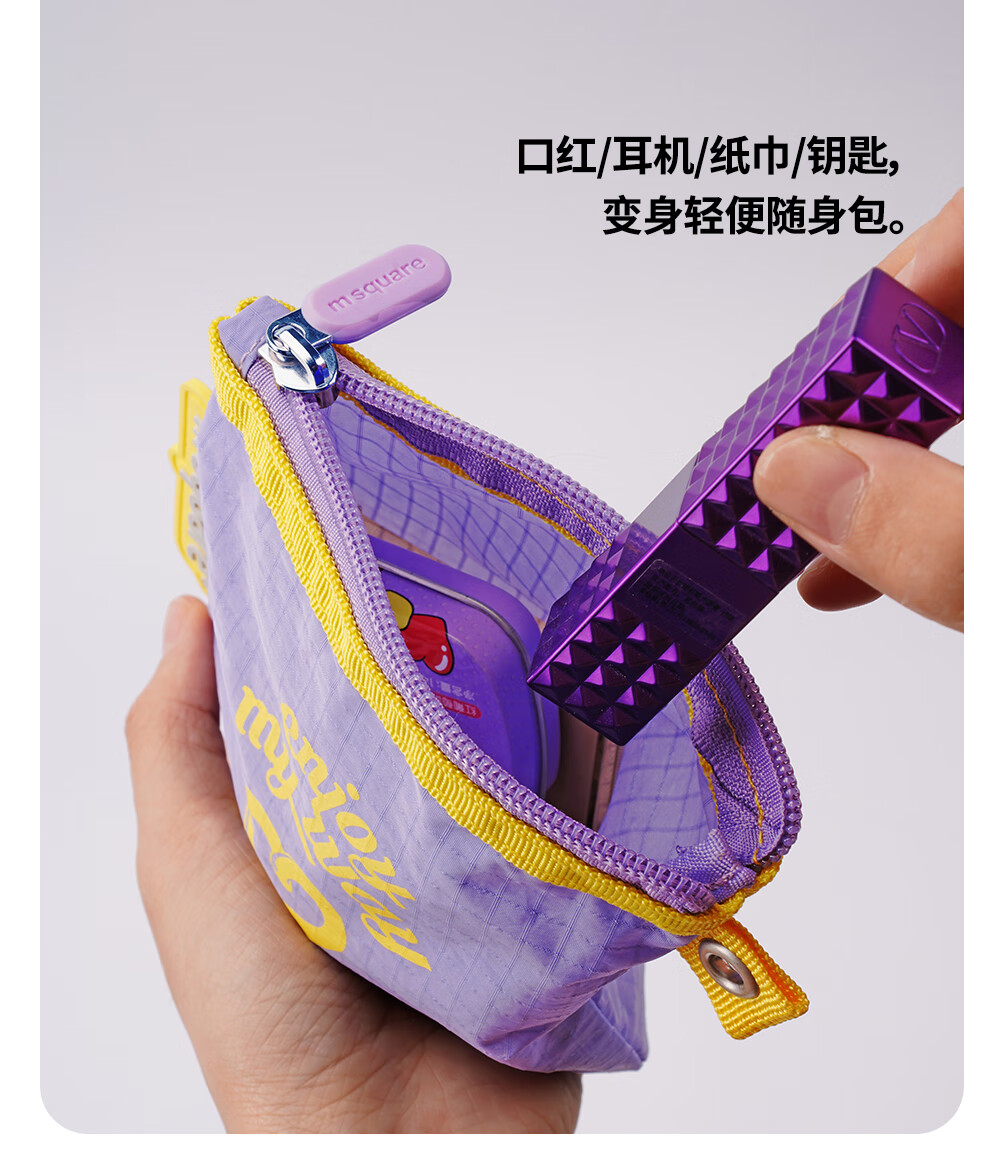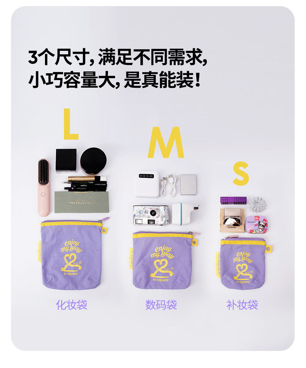 M Square便携化妆包外出薄款多功能收纳袋口红化妆品收纳包轻量化出差旅行 熏衣紫S【不含挂绳】