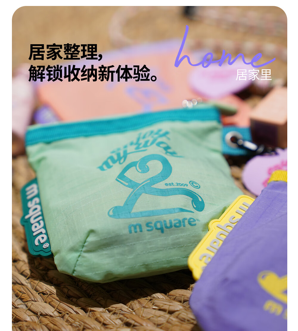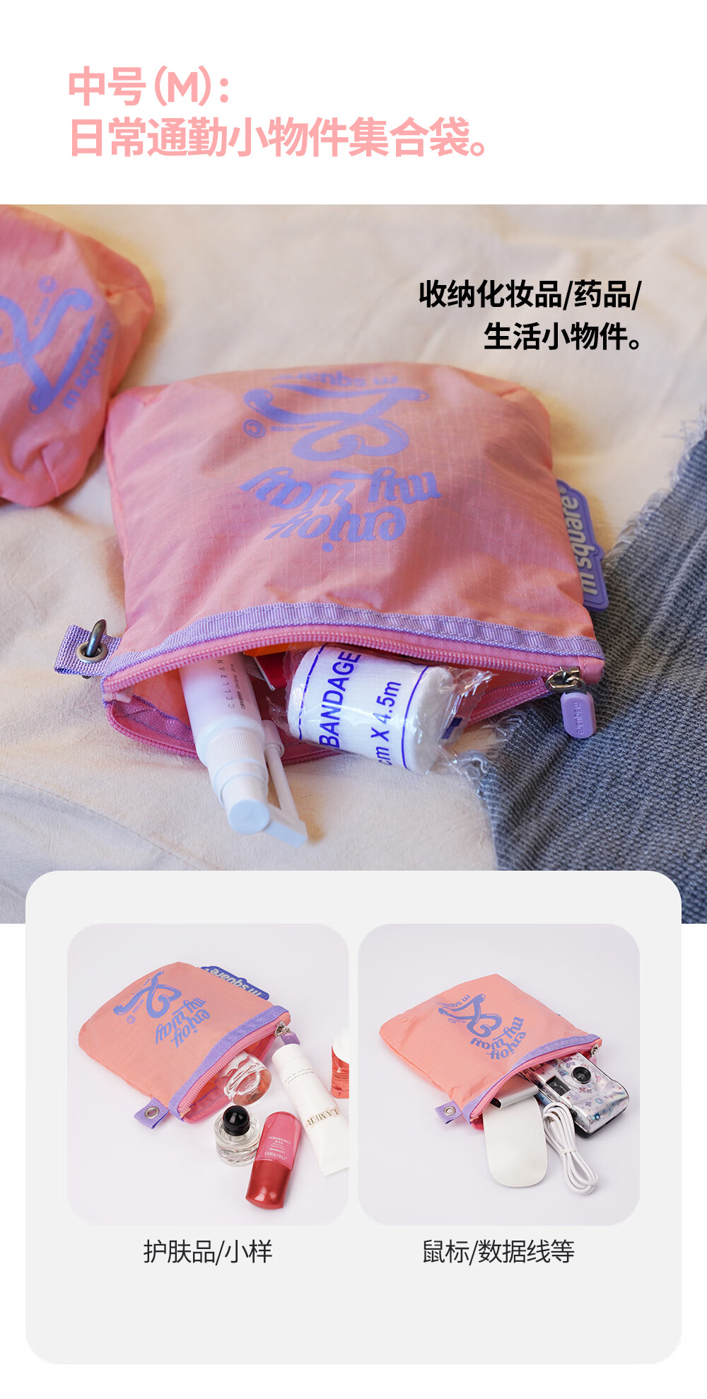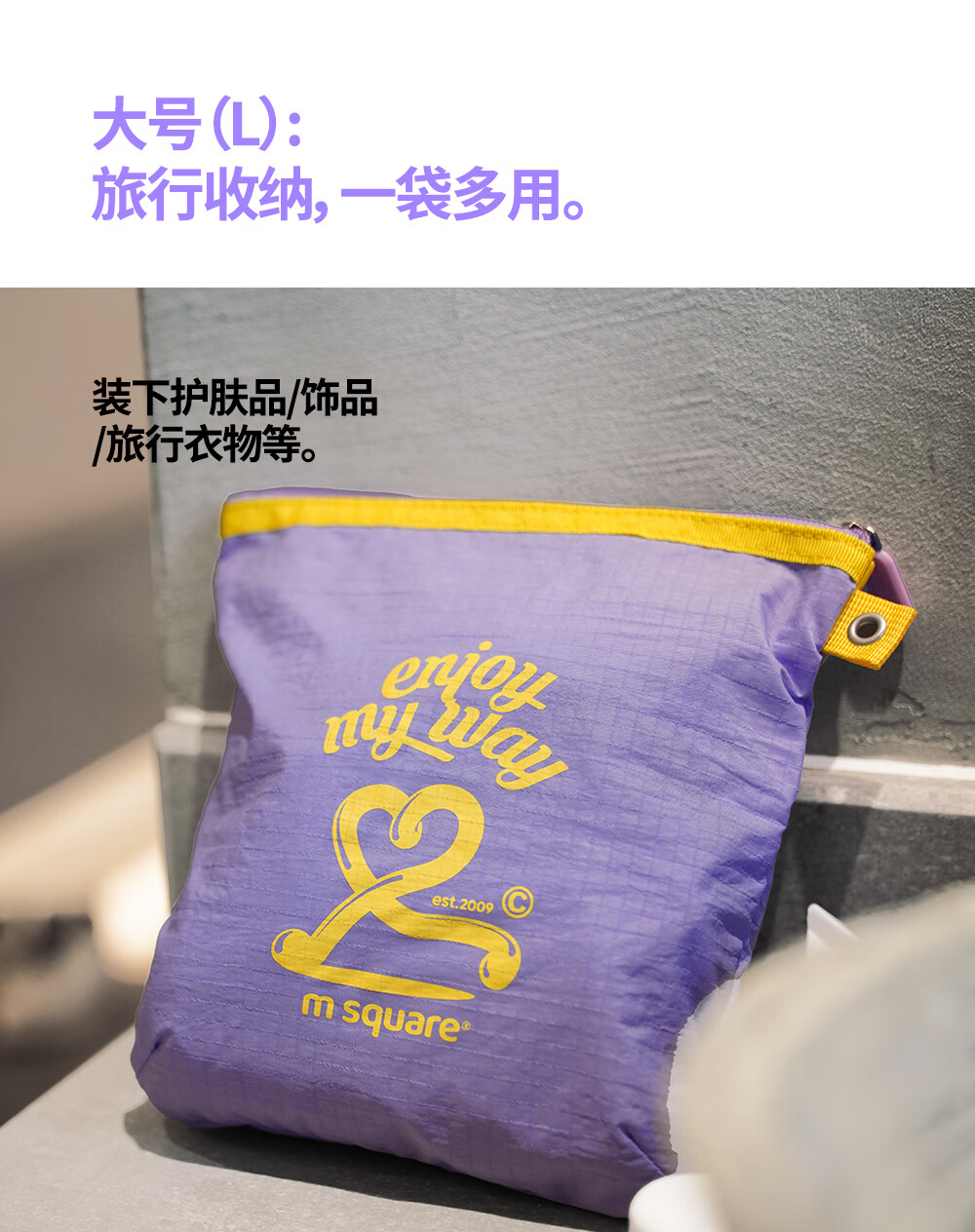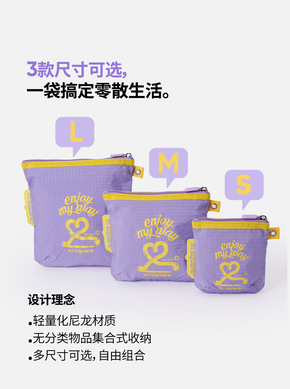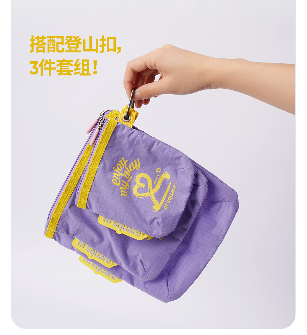 M Square便携化妆包外出薄款多功能收纳袋口红化妆品收纳包轻量化出差旅行 熏衣紫S【不含挂绳】