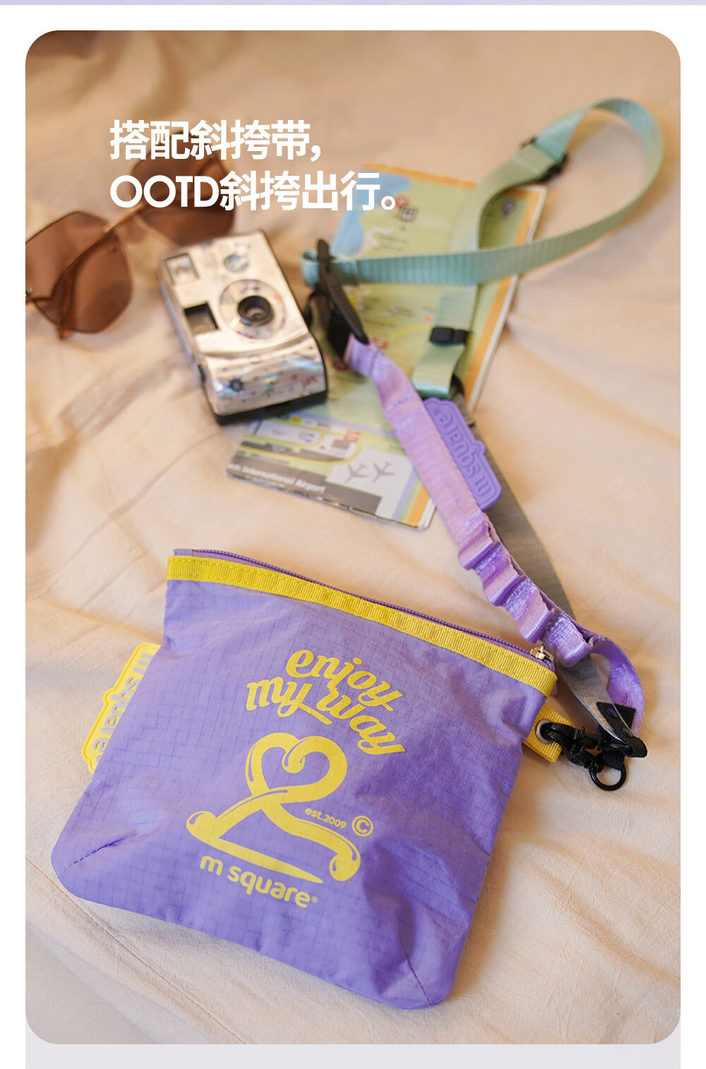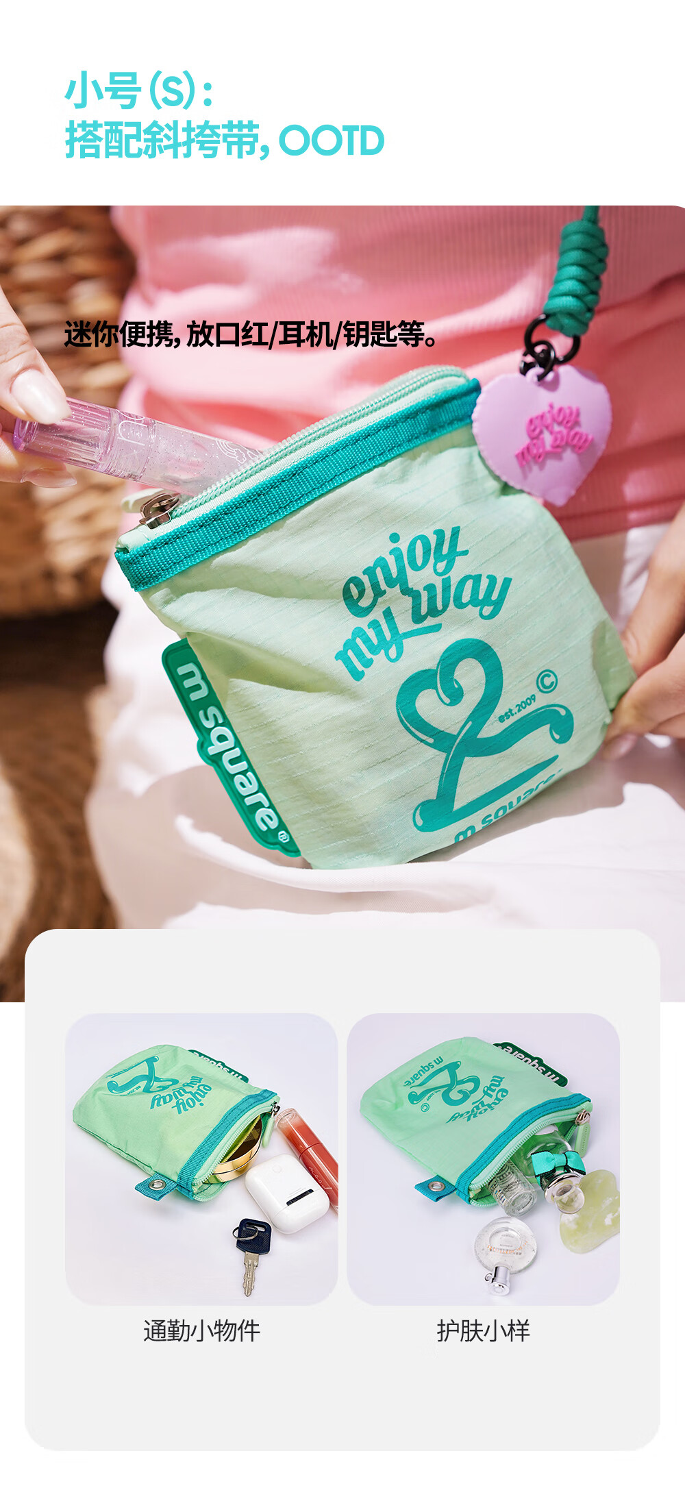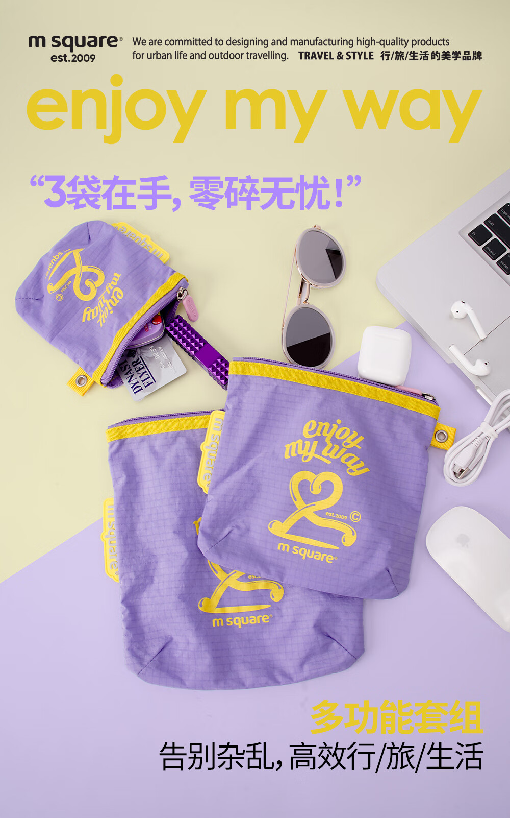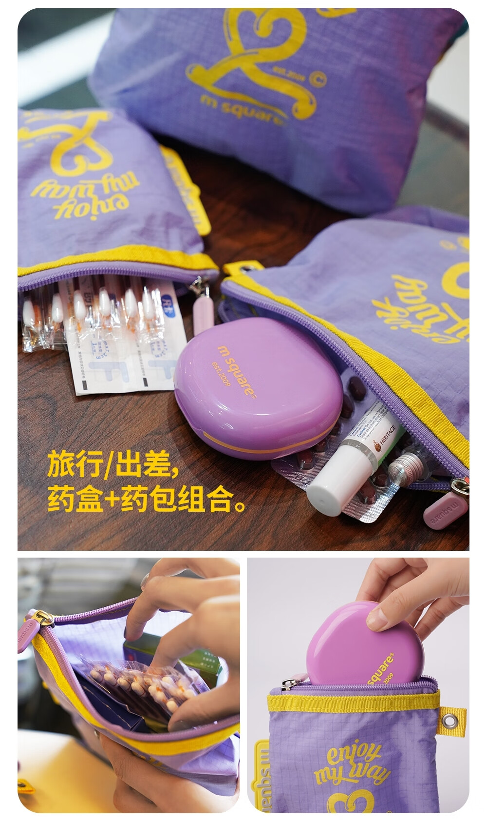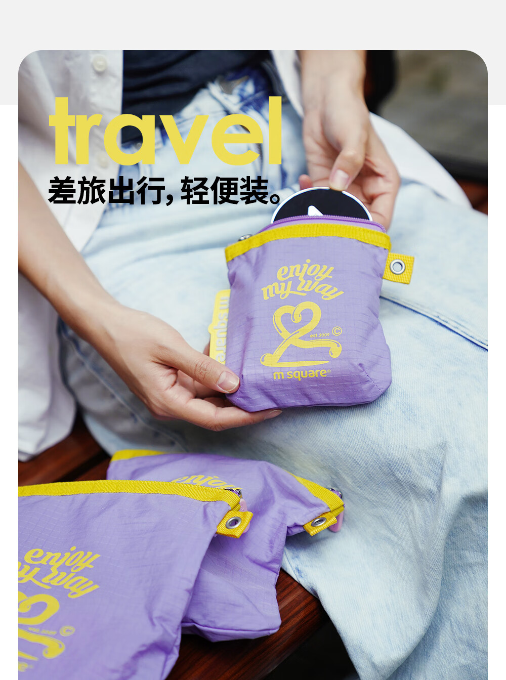 M Square便携化妆包外出薄款多功能收纳袋口红化妆品收纳包轻量化出差旅行 熏衣紫S【不含挂绳】